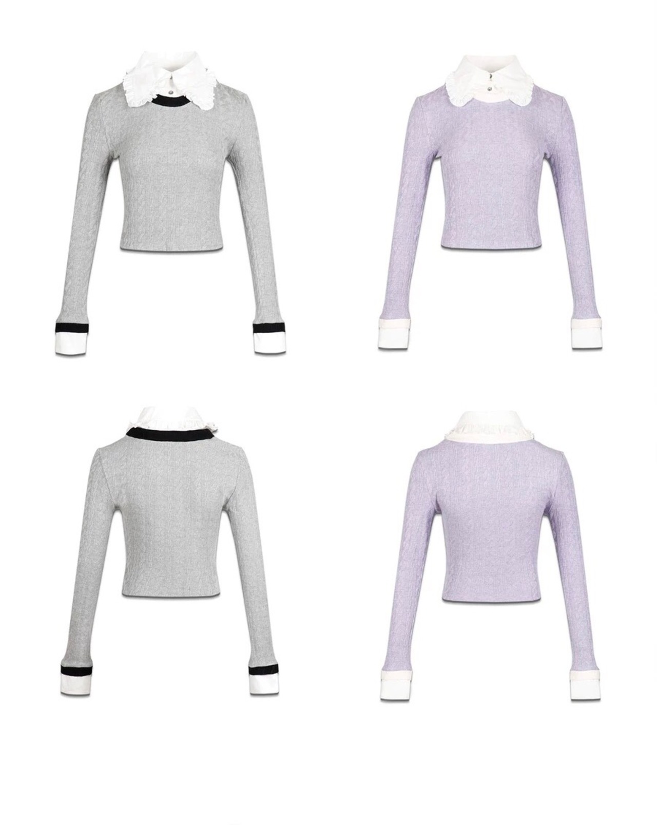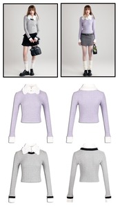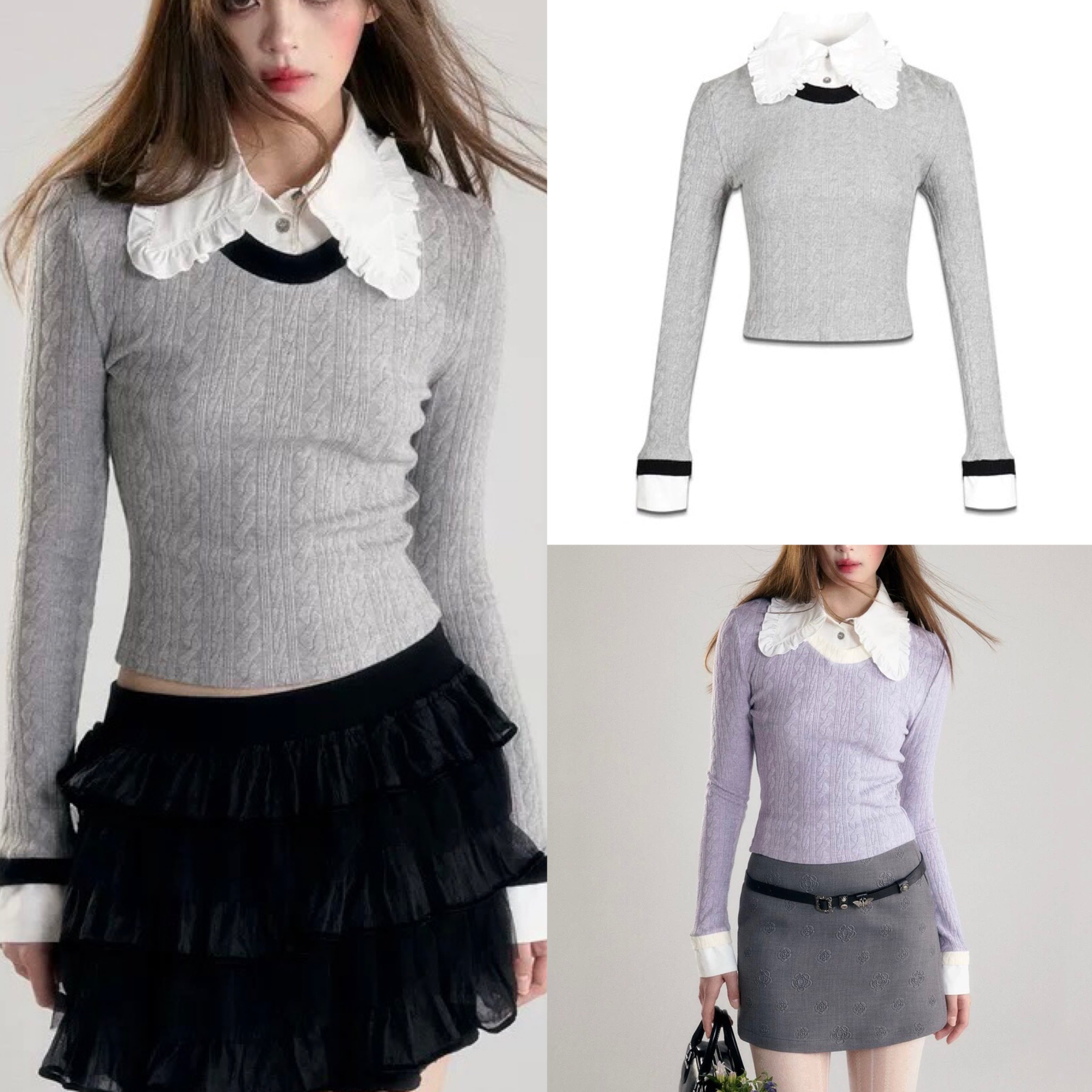 紫 黒 カーディガン セーター ブラウス トップス ガーリー カーディガン ニット 紫 グレー 丸襟 制服 原宿