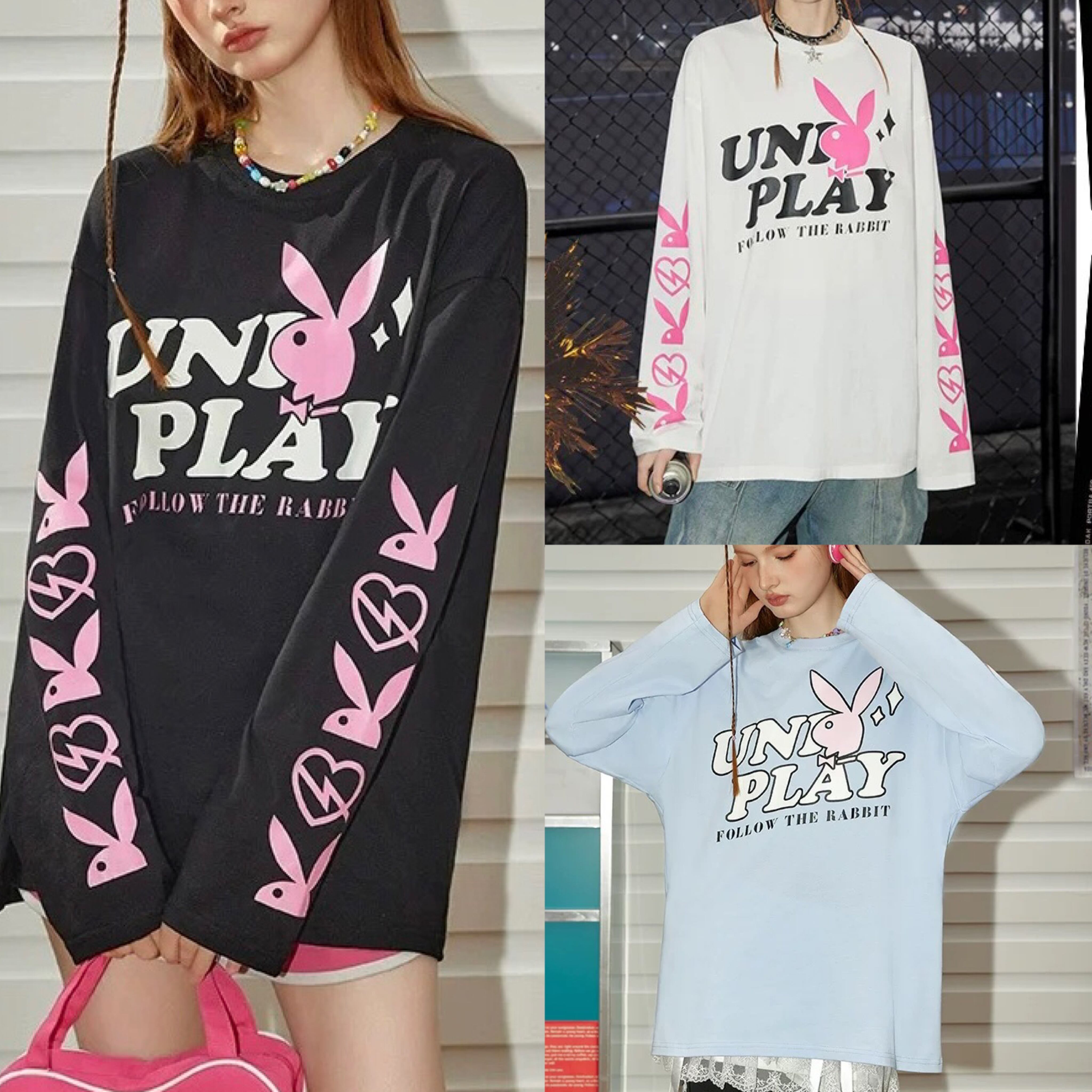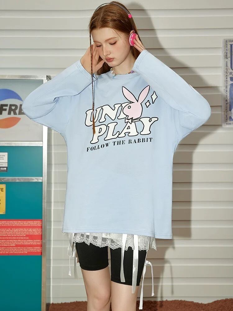 トップス スウェット カジュアル うさぎ 水色 グレー 白 ピンク カジュアル スウェット