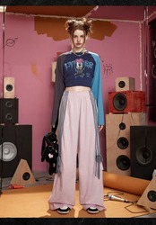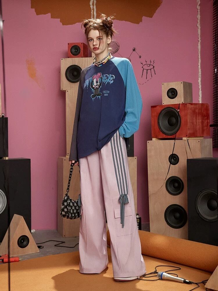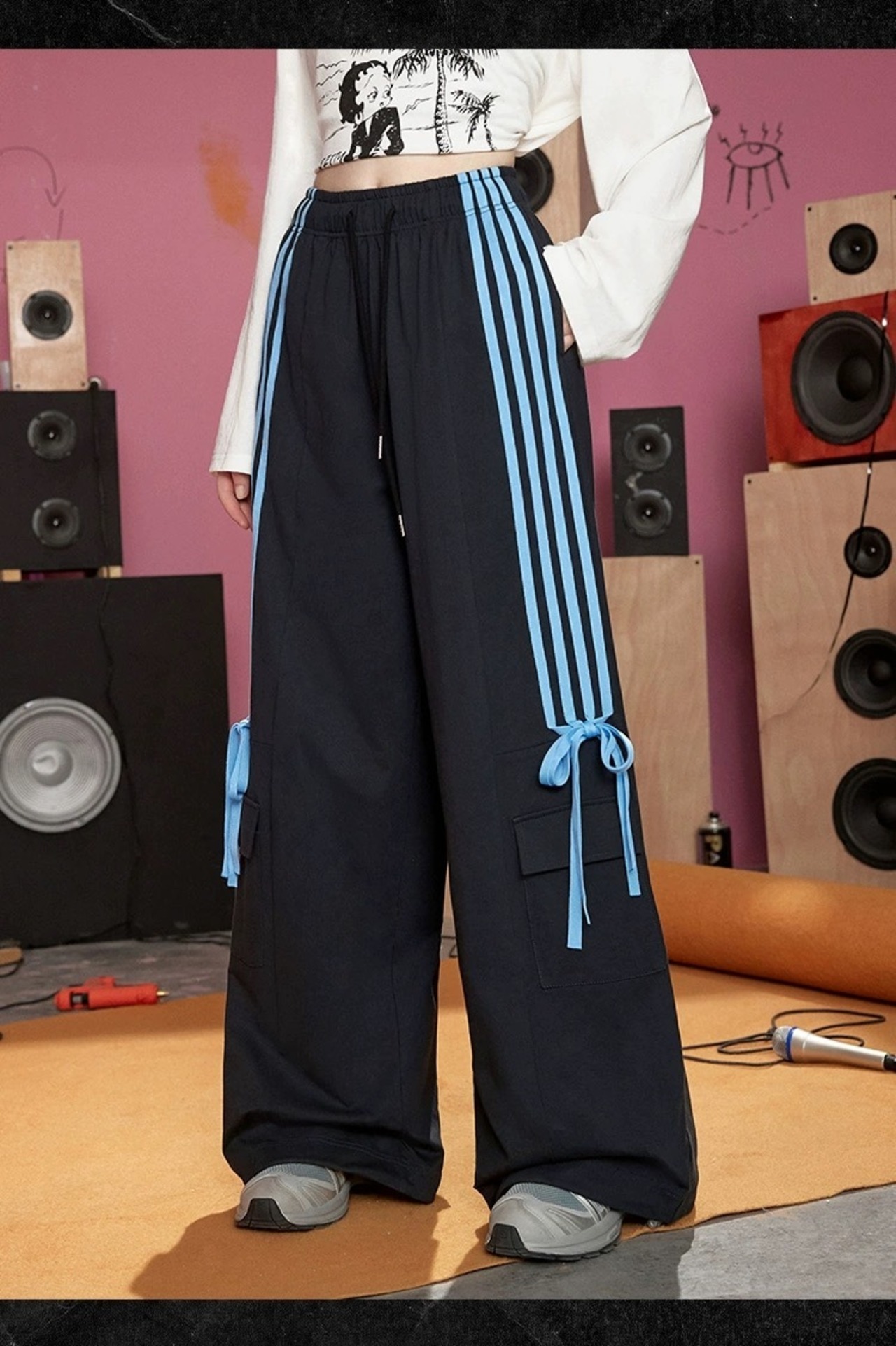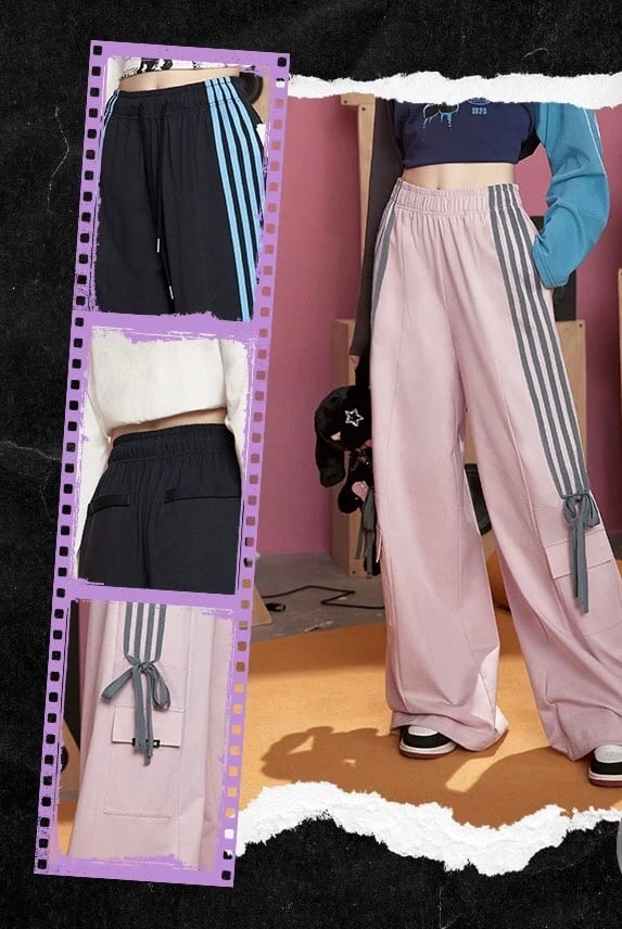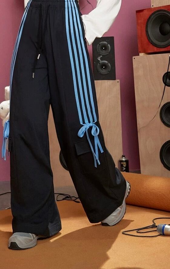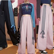 スウェット ピンク リボン 水色 パンツ ボトムス ジャージ カジュアル