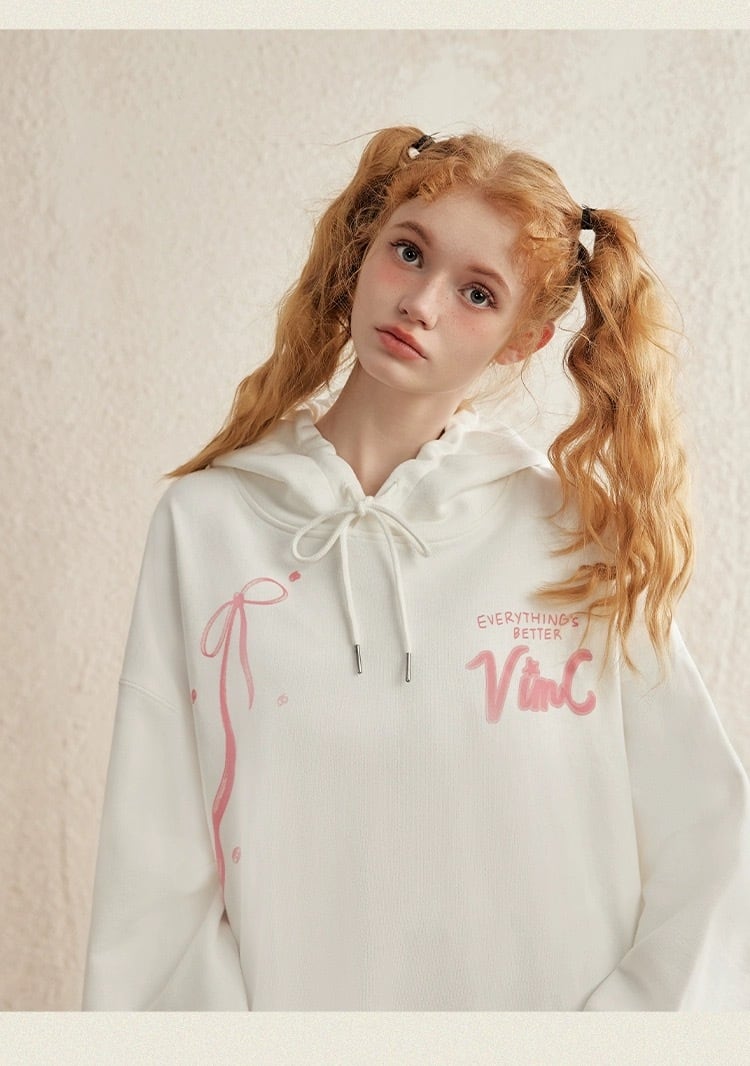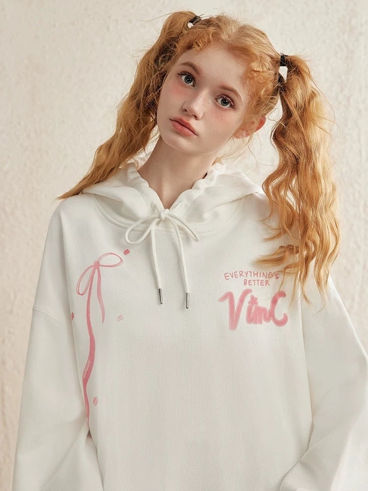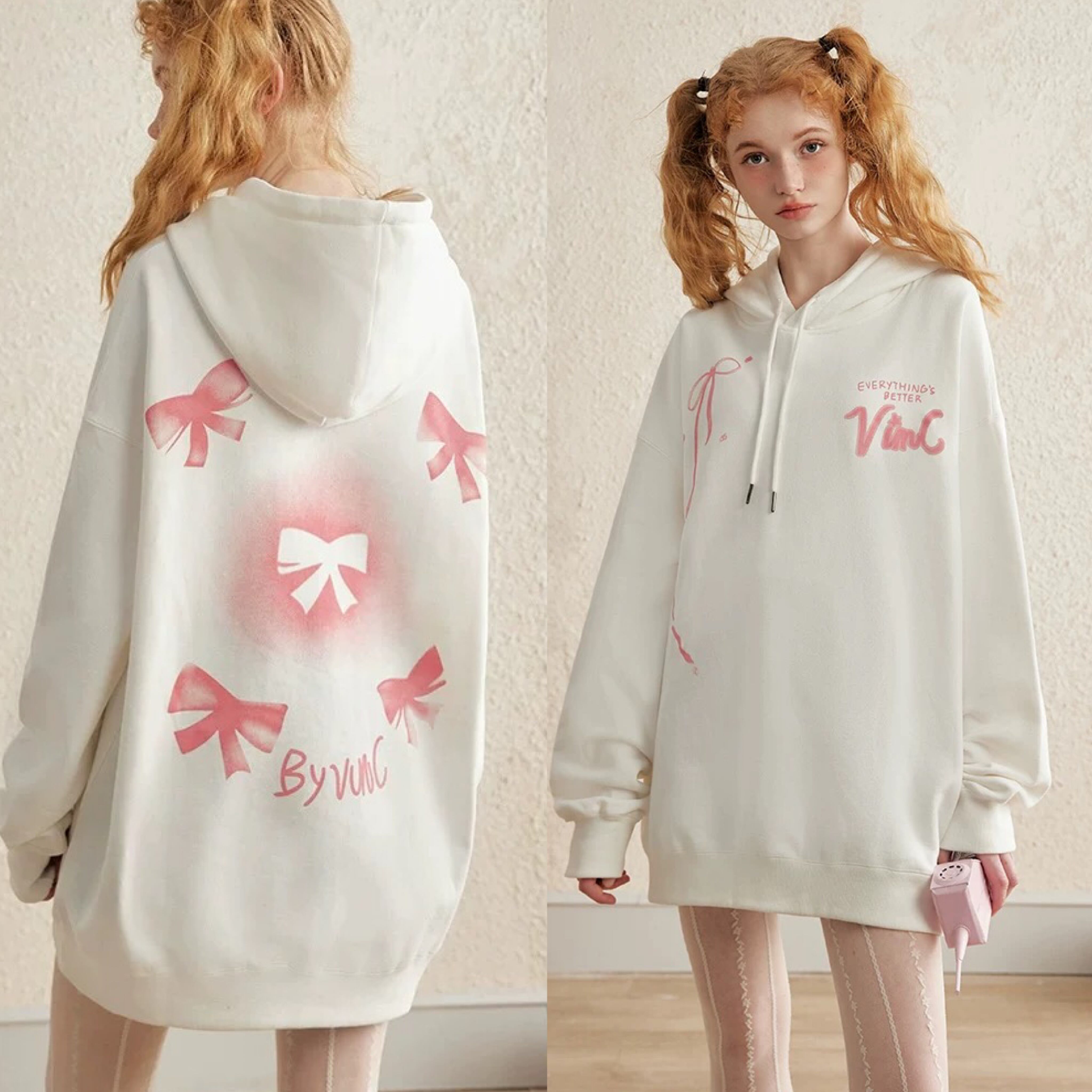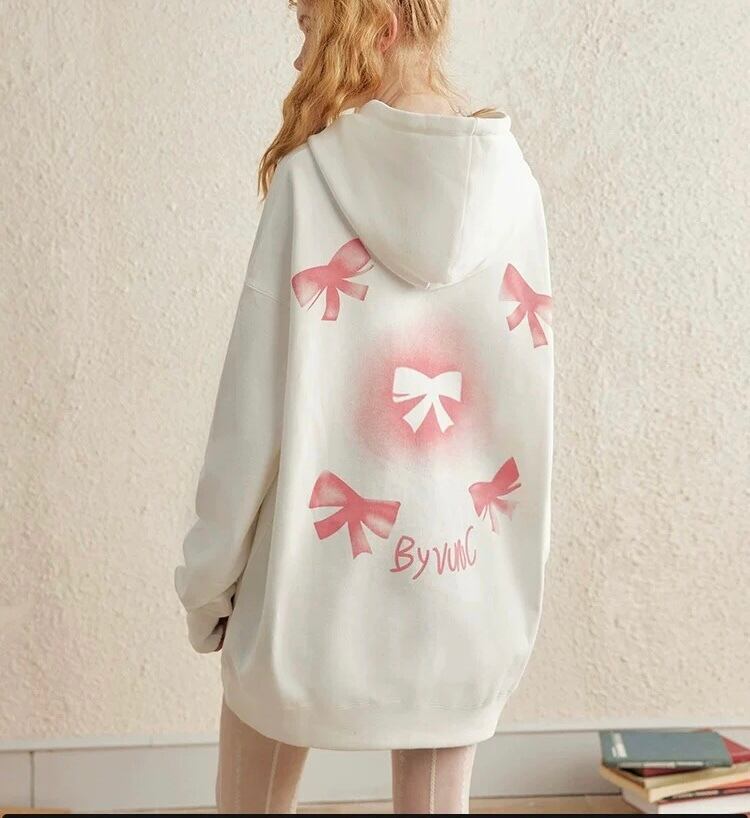 白 ピンク リボン パーカー ガーリー スウェット トレーナー カジュアル 白 ワンピース