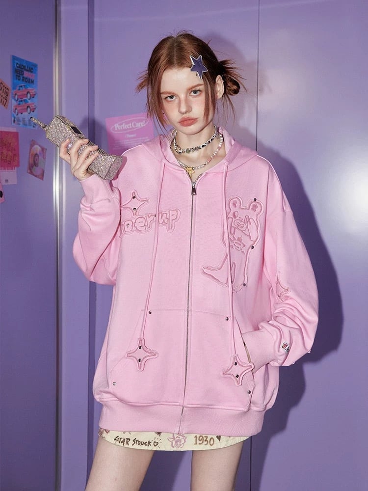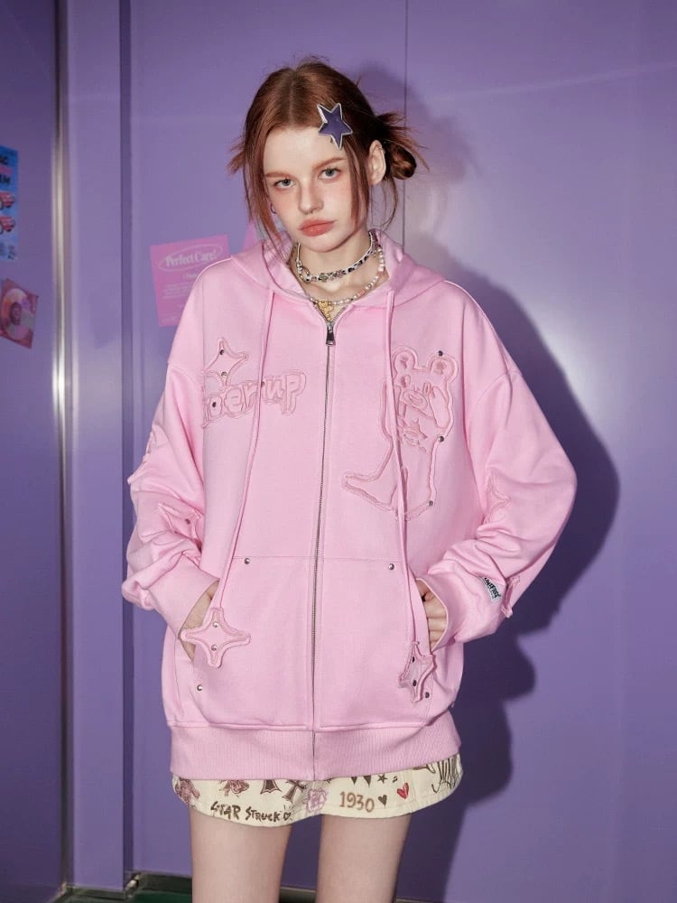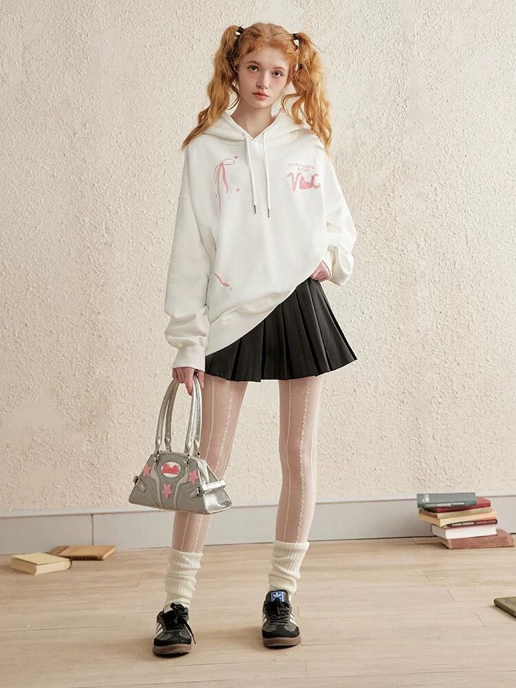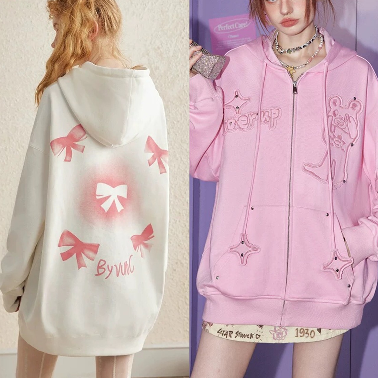 白 ピンク リボン パーカー ガーリー スウェット トレーナー カジュアル 白 ワンピース