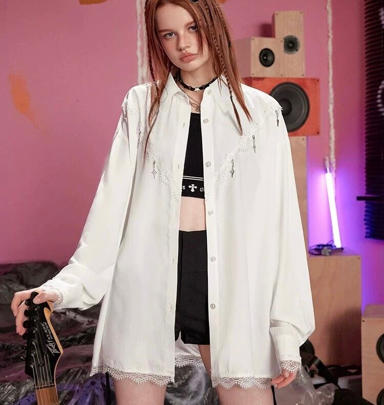 白 リボン クロス ブラウス シャツ ホワイト ワンピース アウター トップス
