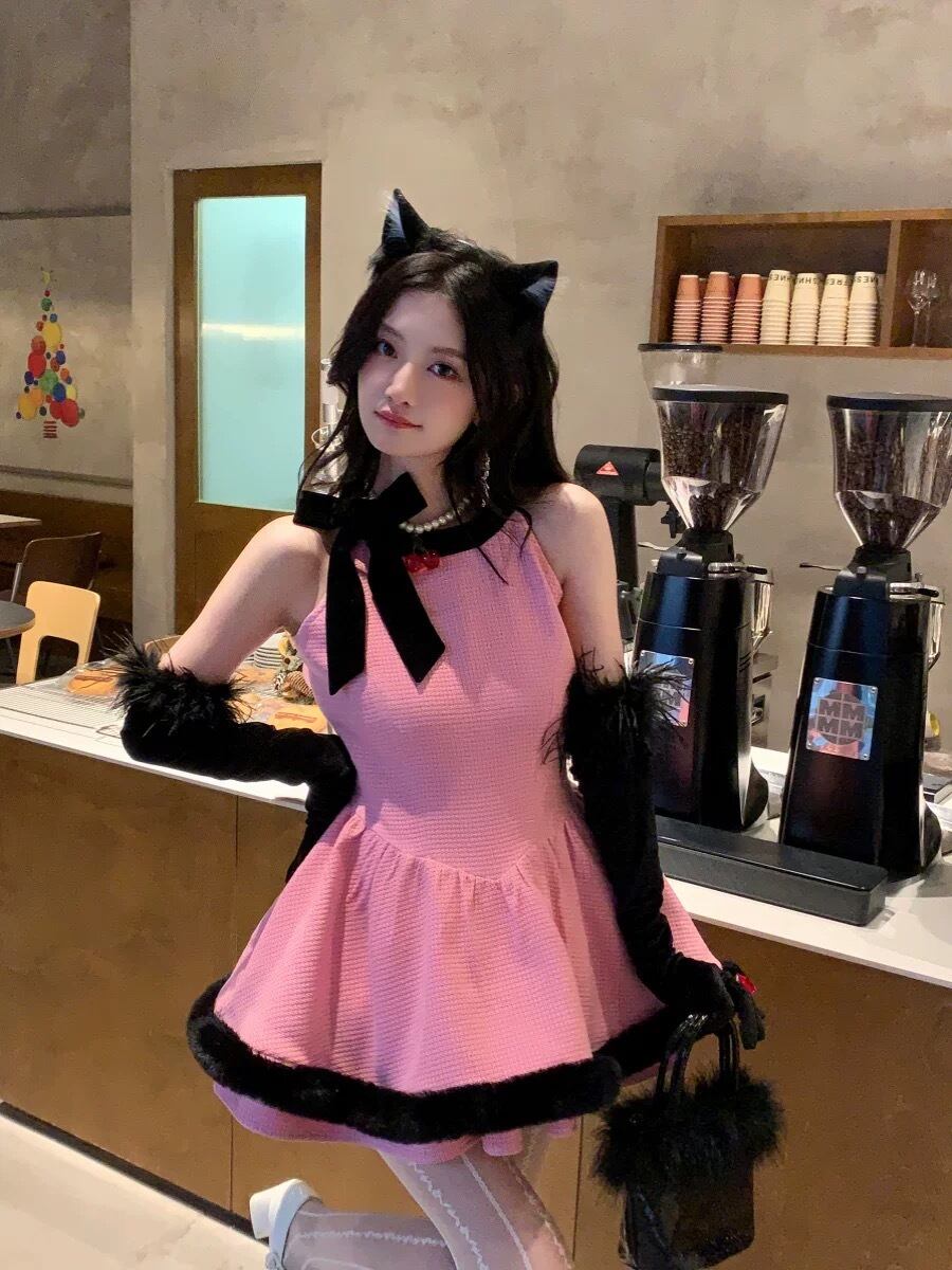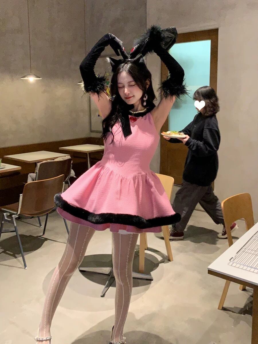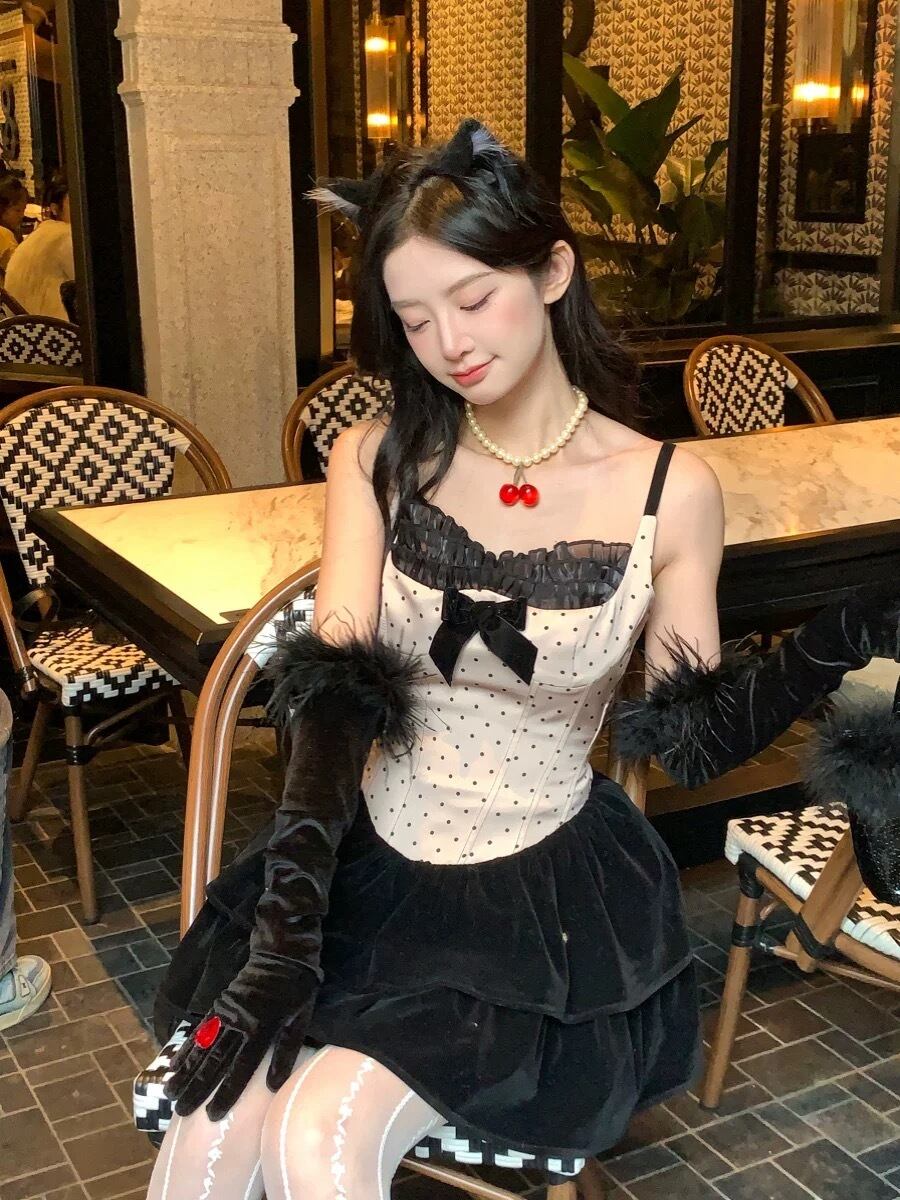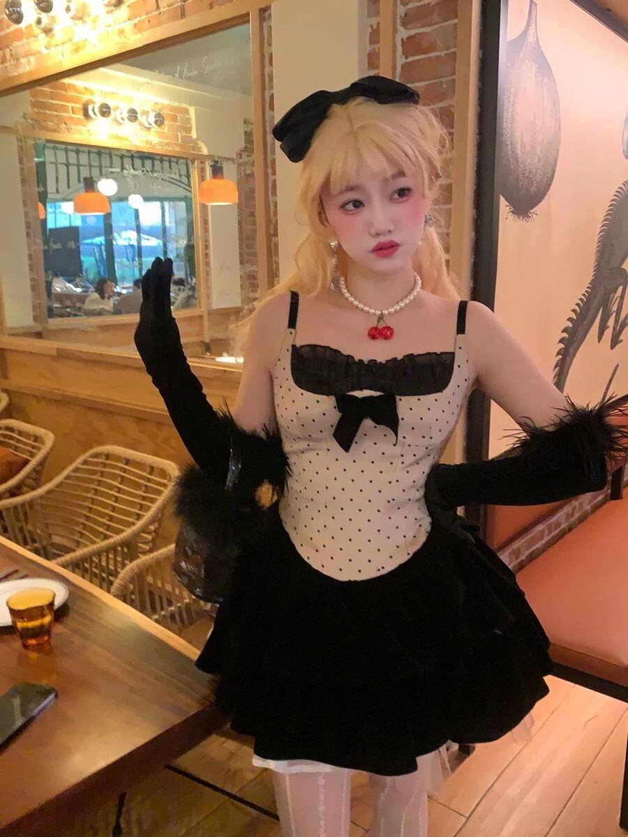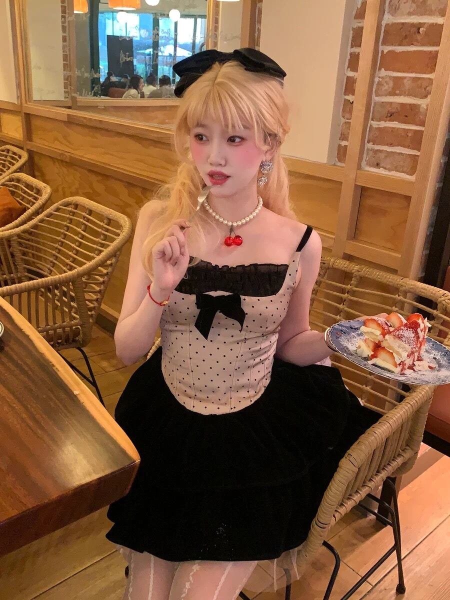 ベージュ 水玉 ドット ピンク 可愛い ピンク リボン 黒 フリル ハート ガーリー 可愛い 原宿 ロリータ 姫 コスプレ ワンピース フリル キャミソール リボン ドレス 衣装 可愛い プリンセス お嬢様 リボン