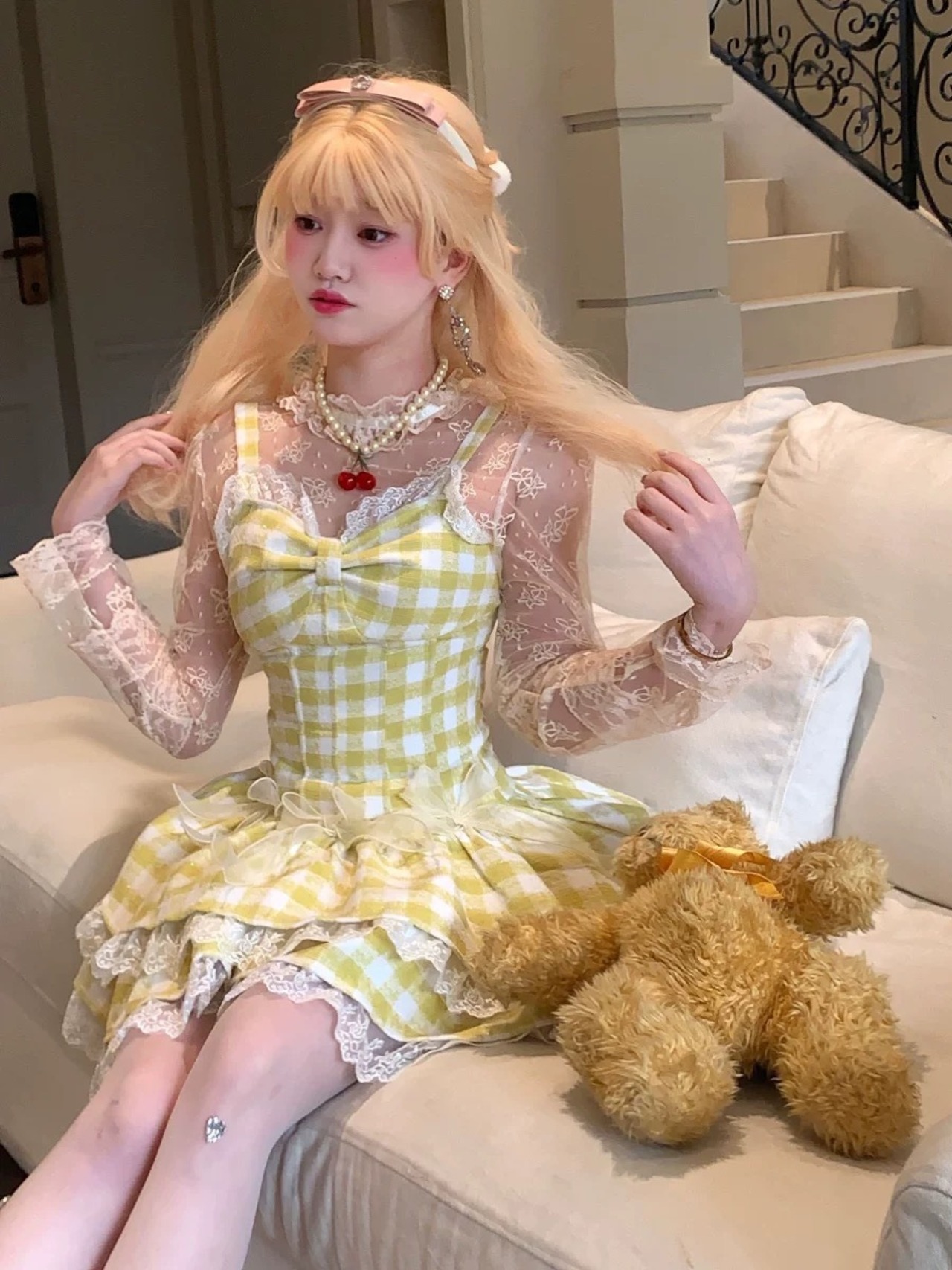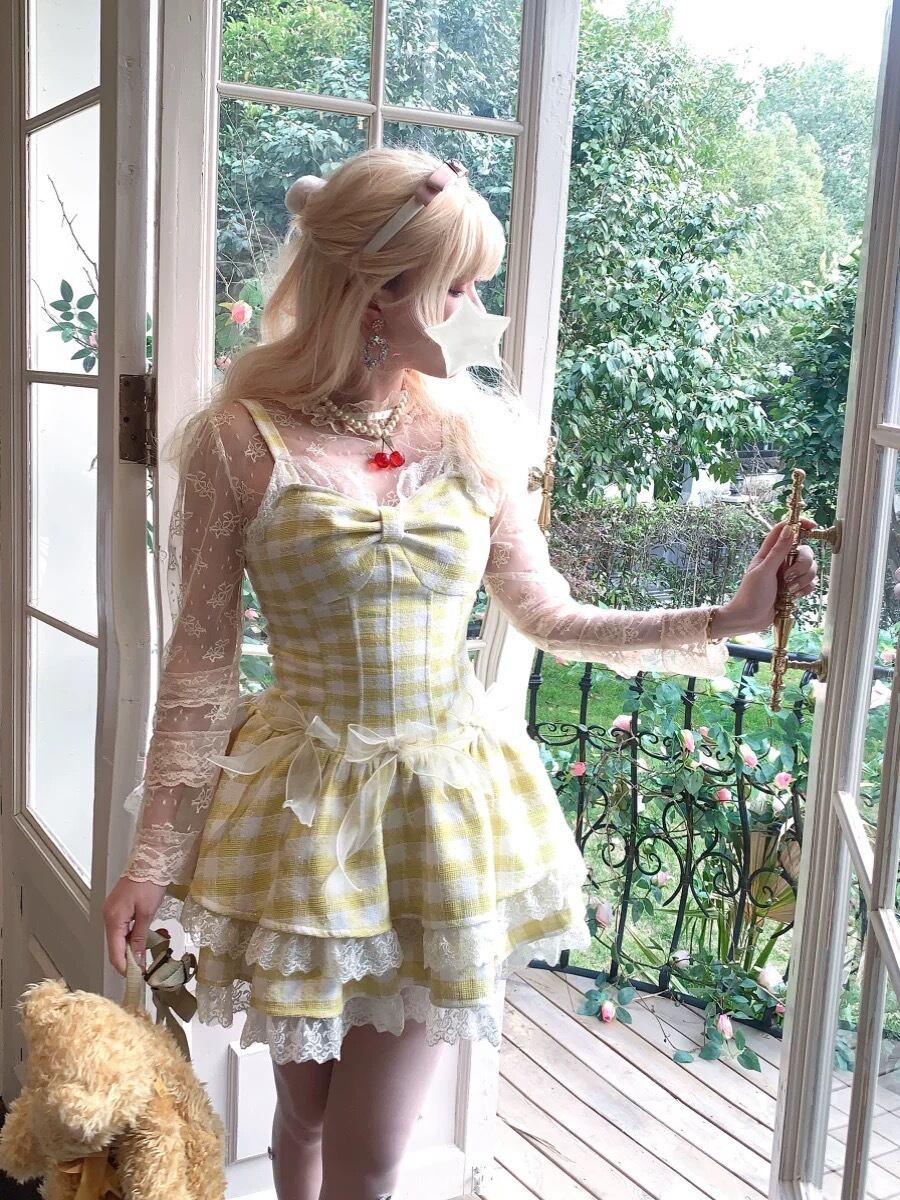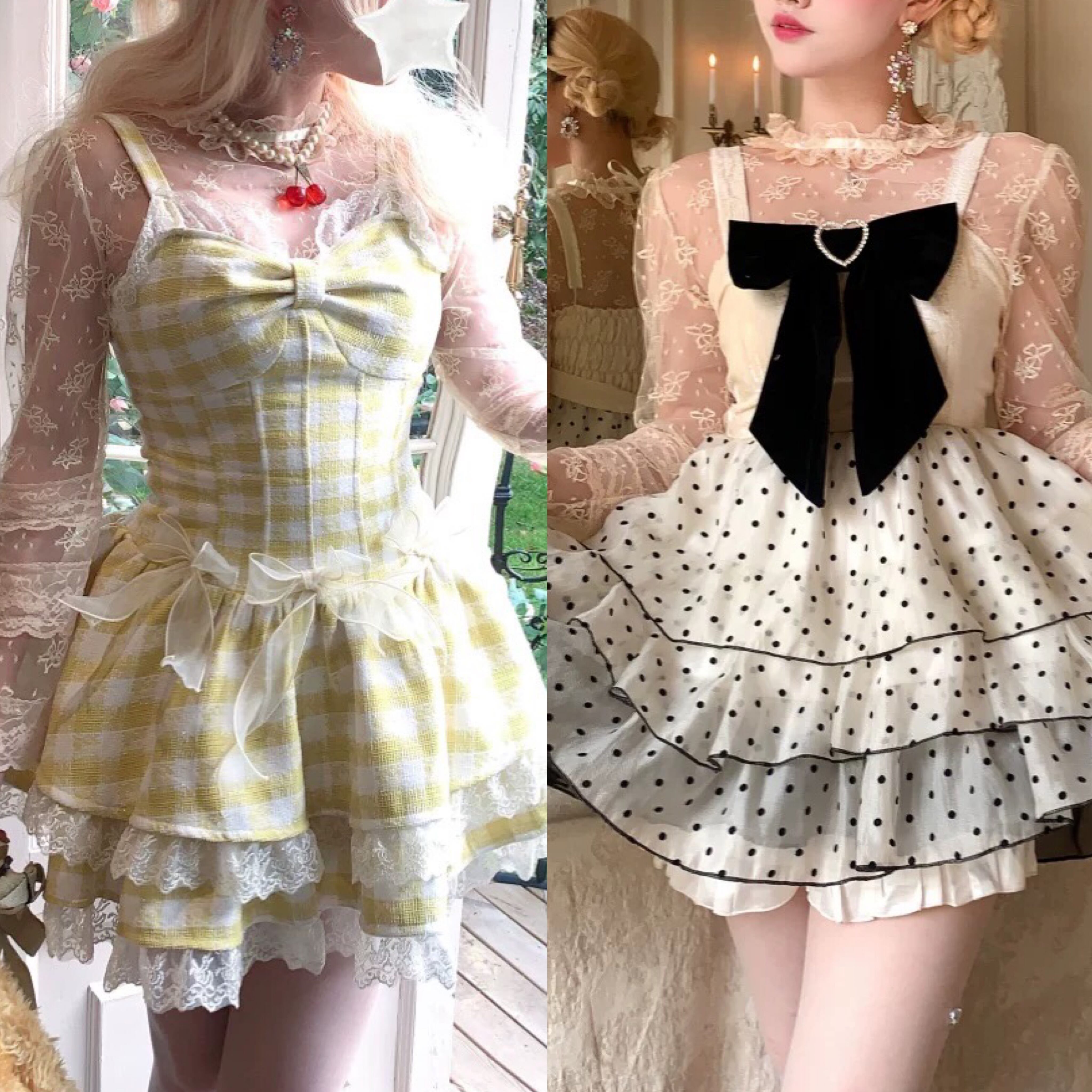 チェック 緑 ベージュ 黒 リボンピンク リボン 黒 フリル ハート ガーリー 可愛い 原宿 ロリータ 姫 コスプレ ワンピース フリル キャミソール リボン ドレス 衣装 可愛い プリンセス お嬢様 水玉 ドット