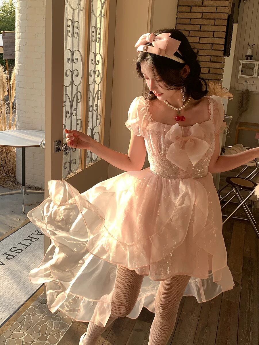 ラメ ピンク ピンク リボン 黒 フリル ハート ガーリー 可愛い 原宿 ロリータ 姫 コスプレ ワンピース フリル キャミソール リボン ドレス 衣装 可愛い プリンセス お嬢様 キラキラ