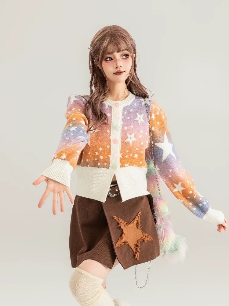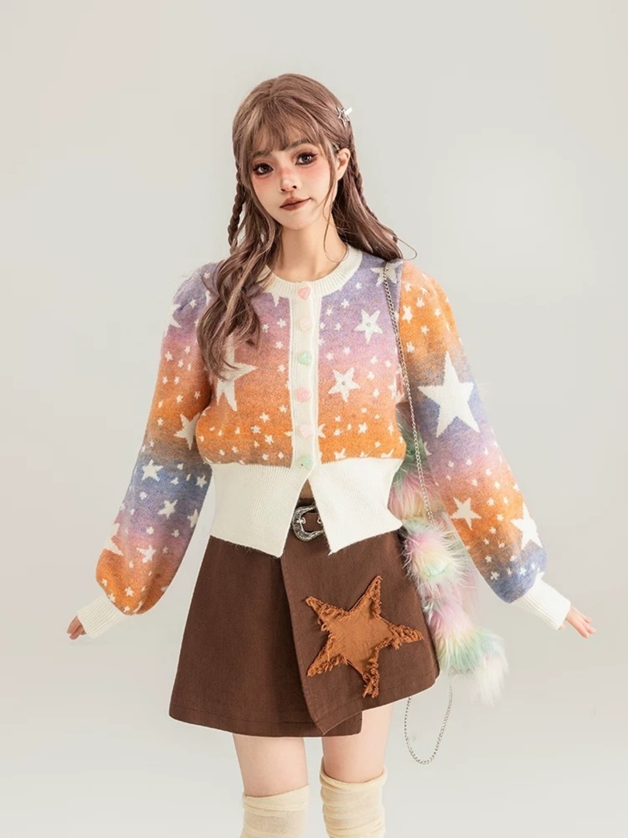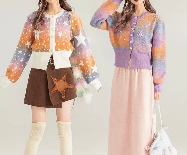 星 オレンジ 紫 グラデーション セーター ニット カーディガン