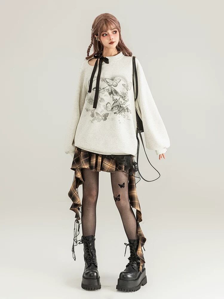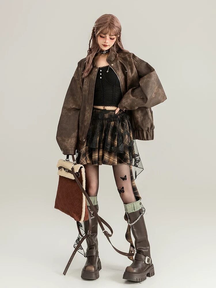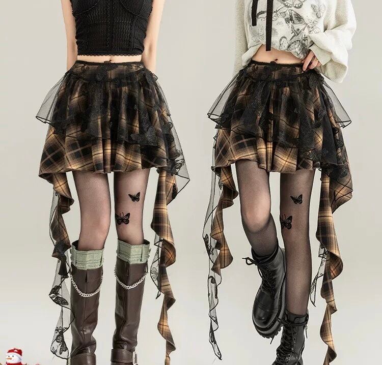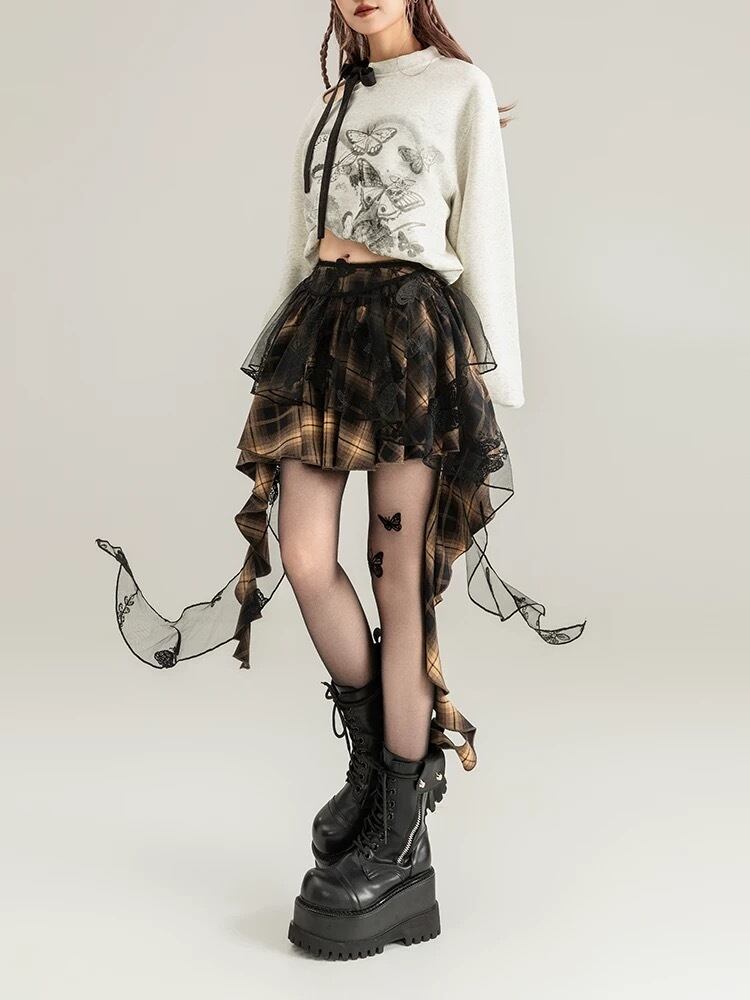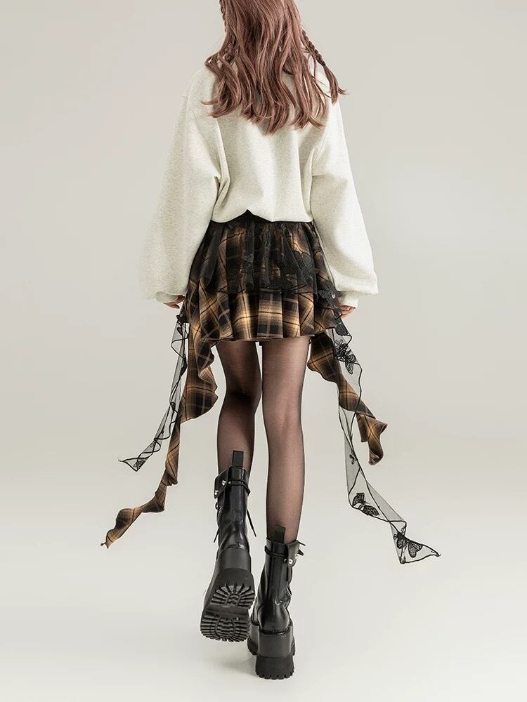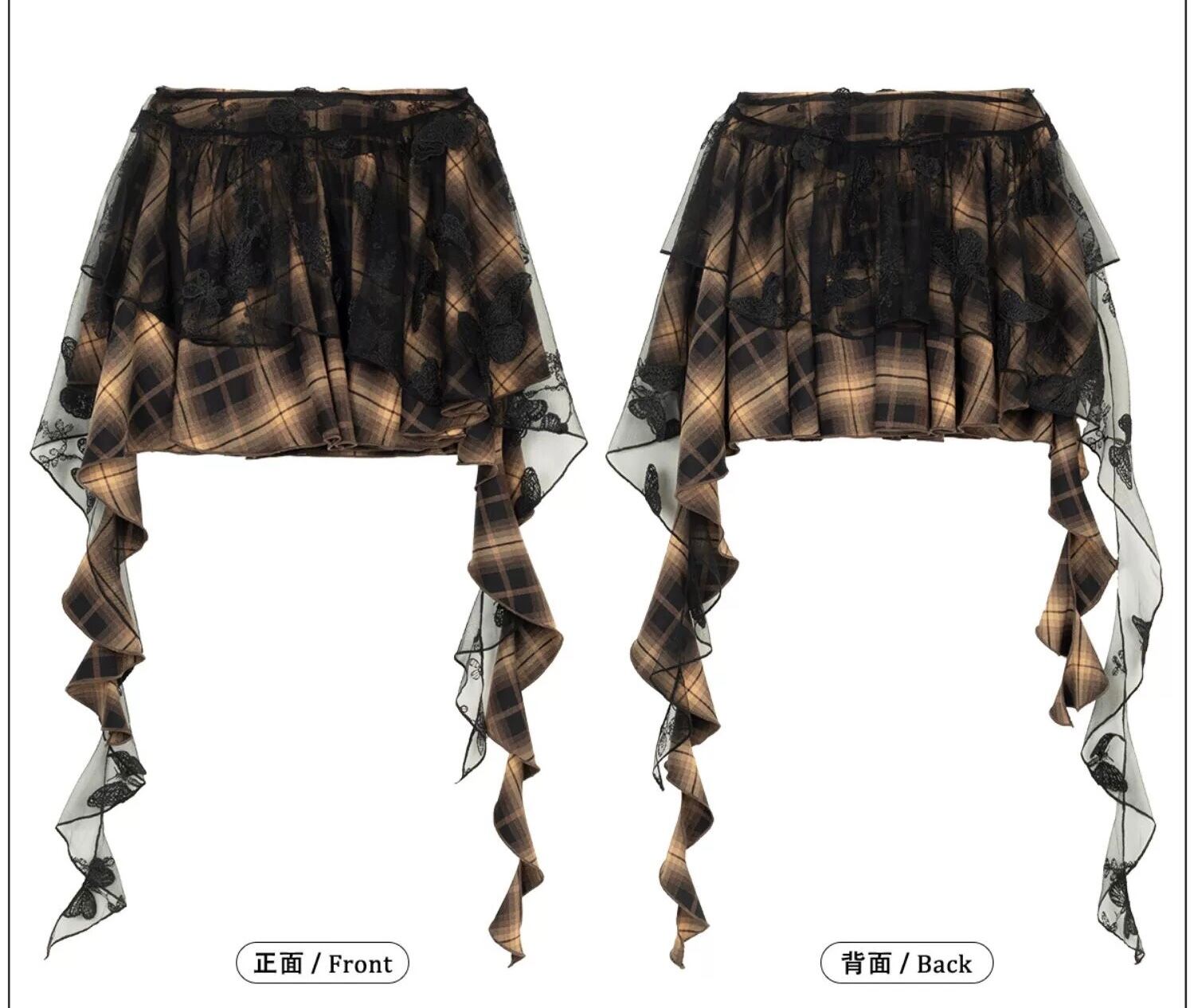 スカート ミニスカート 茶色 チェック リボン ガーリー