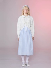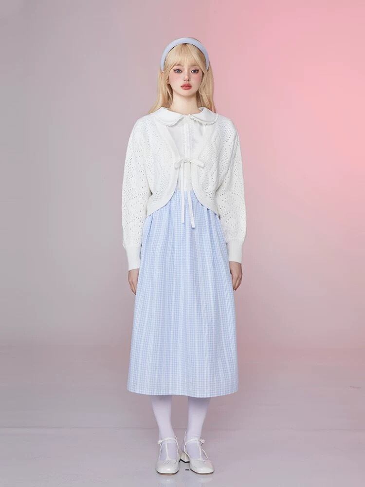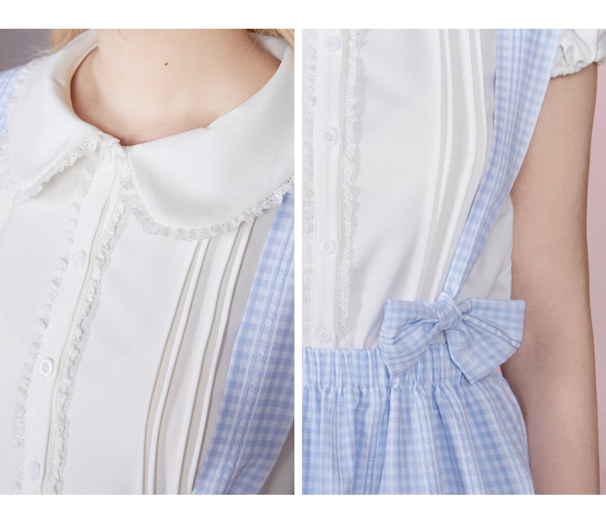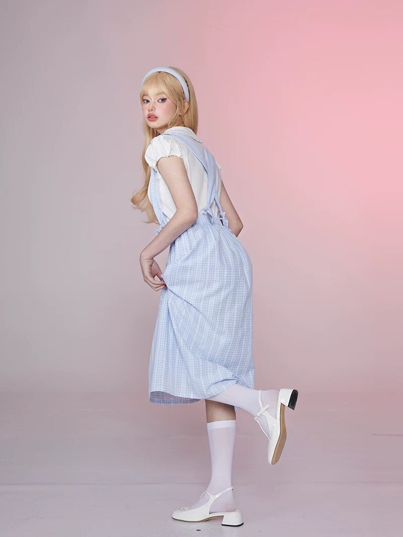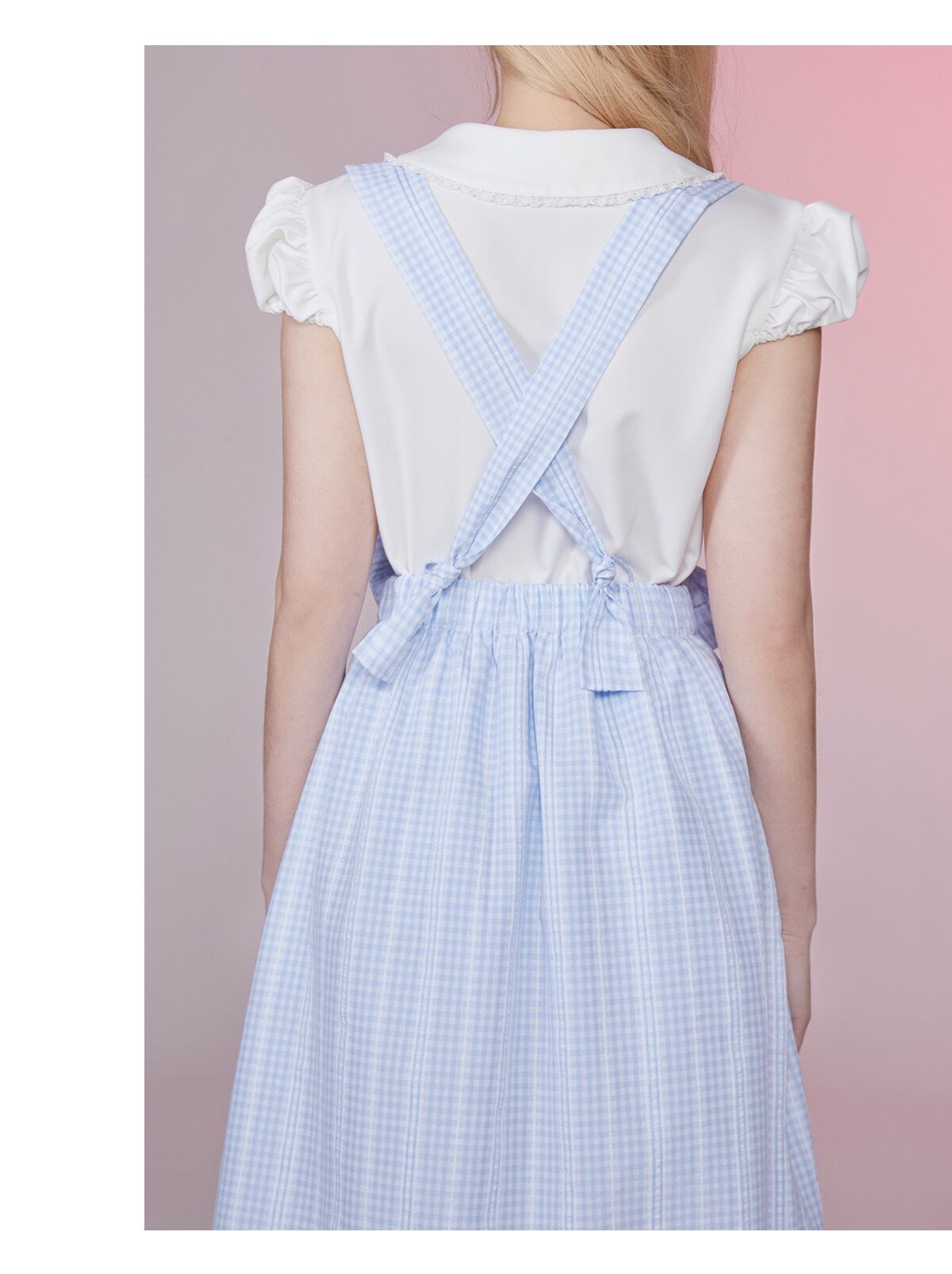 水色 チェック ワンピース リボン ジャンパースカート ボトムス
