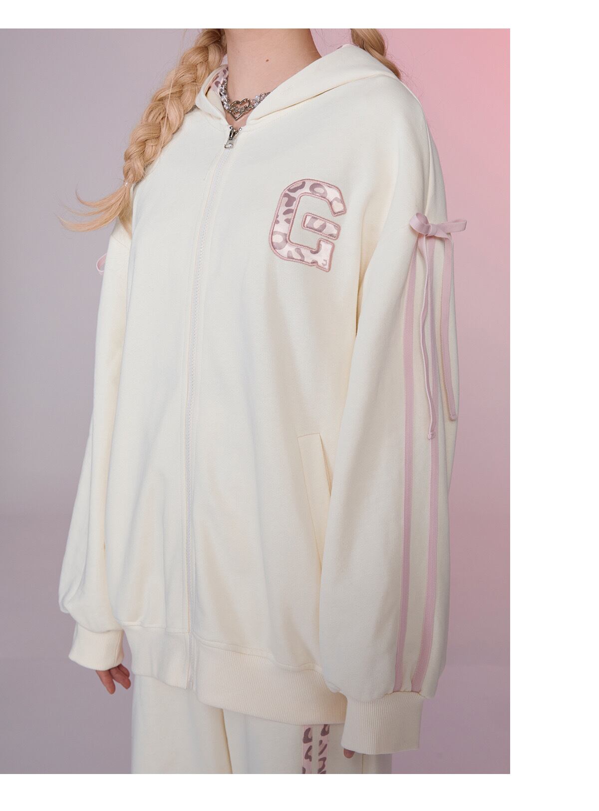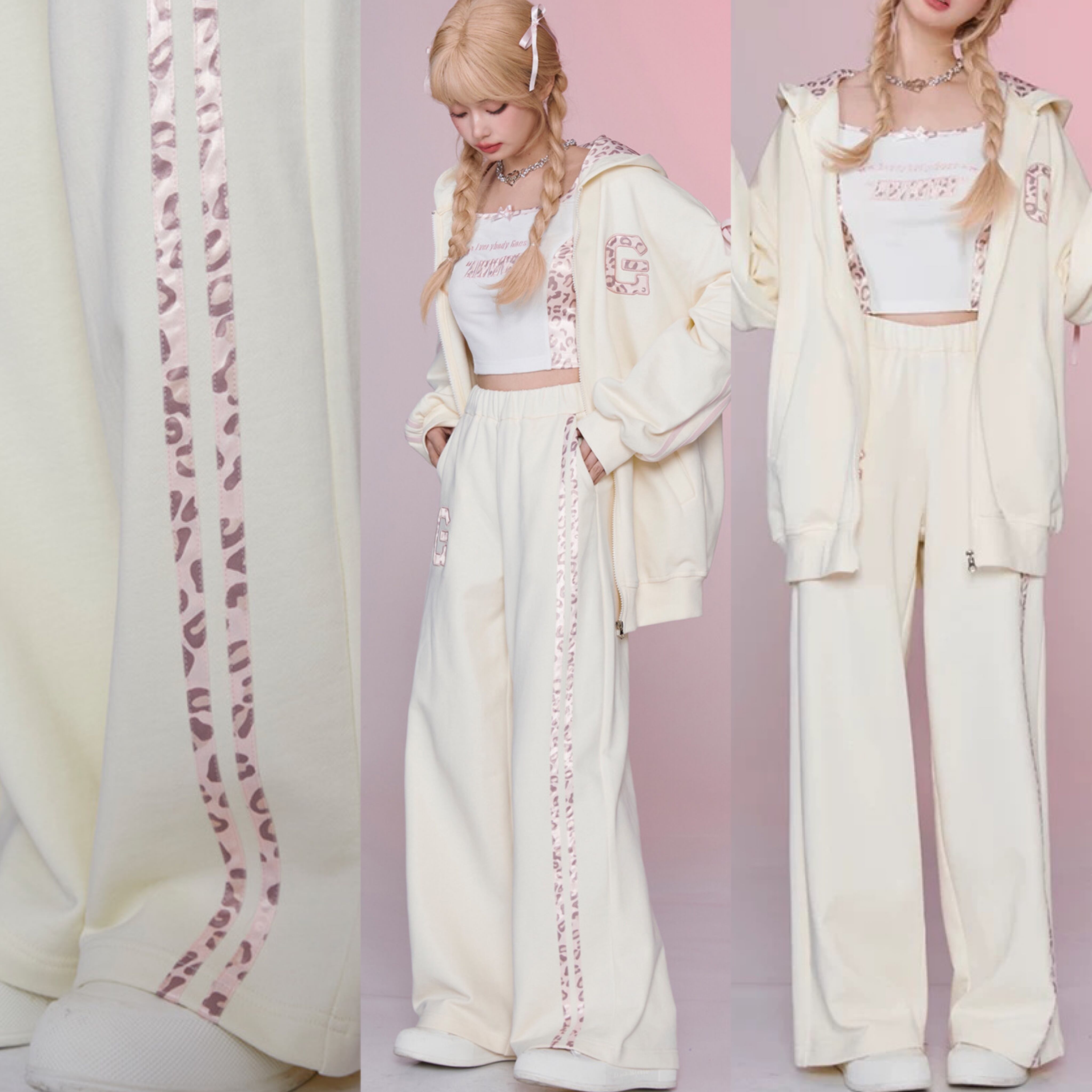 【パンツ】黄色 ベージュ リボン ピンク スウェット カジュアル