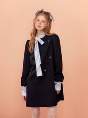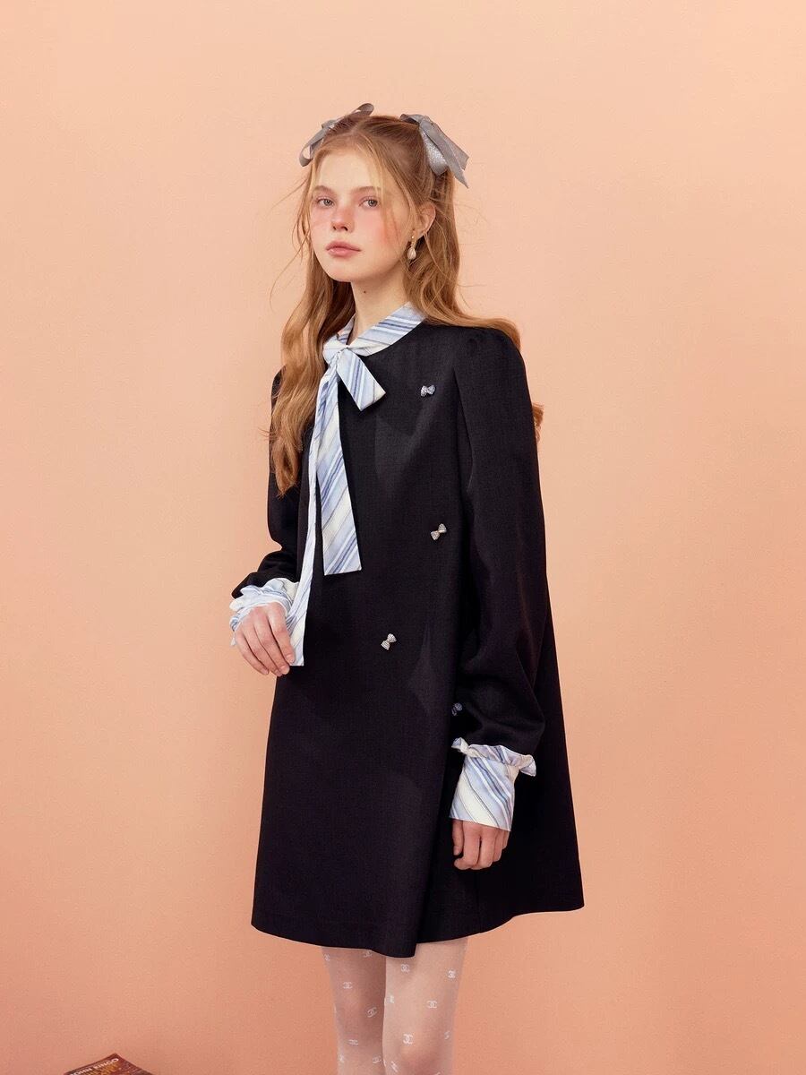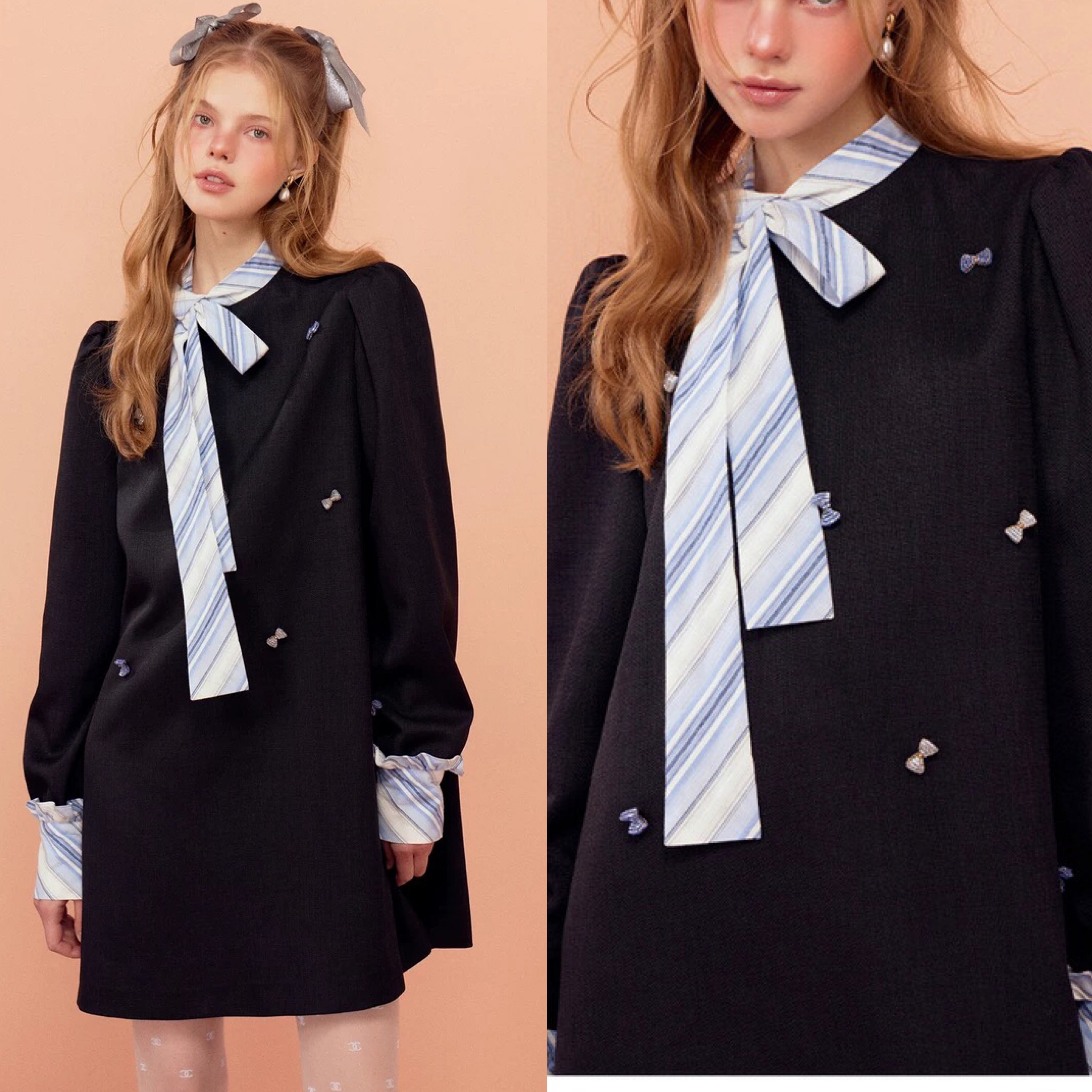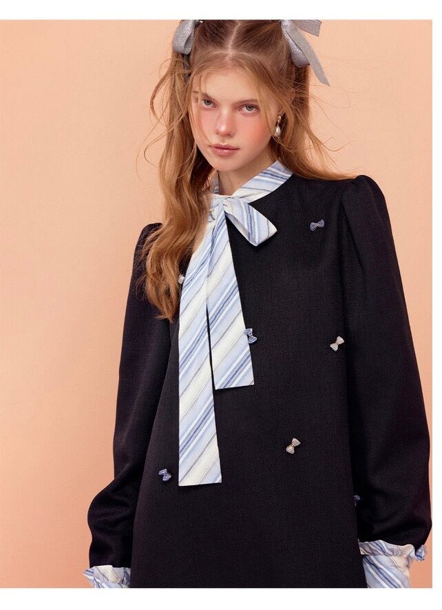 ワンピース お嬢様 水色 ブラウス エレガント リボン