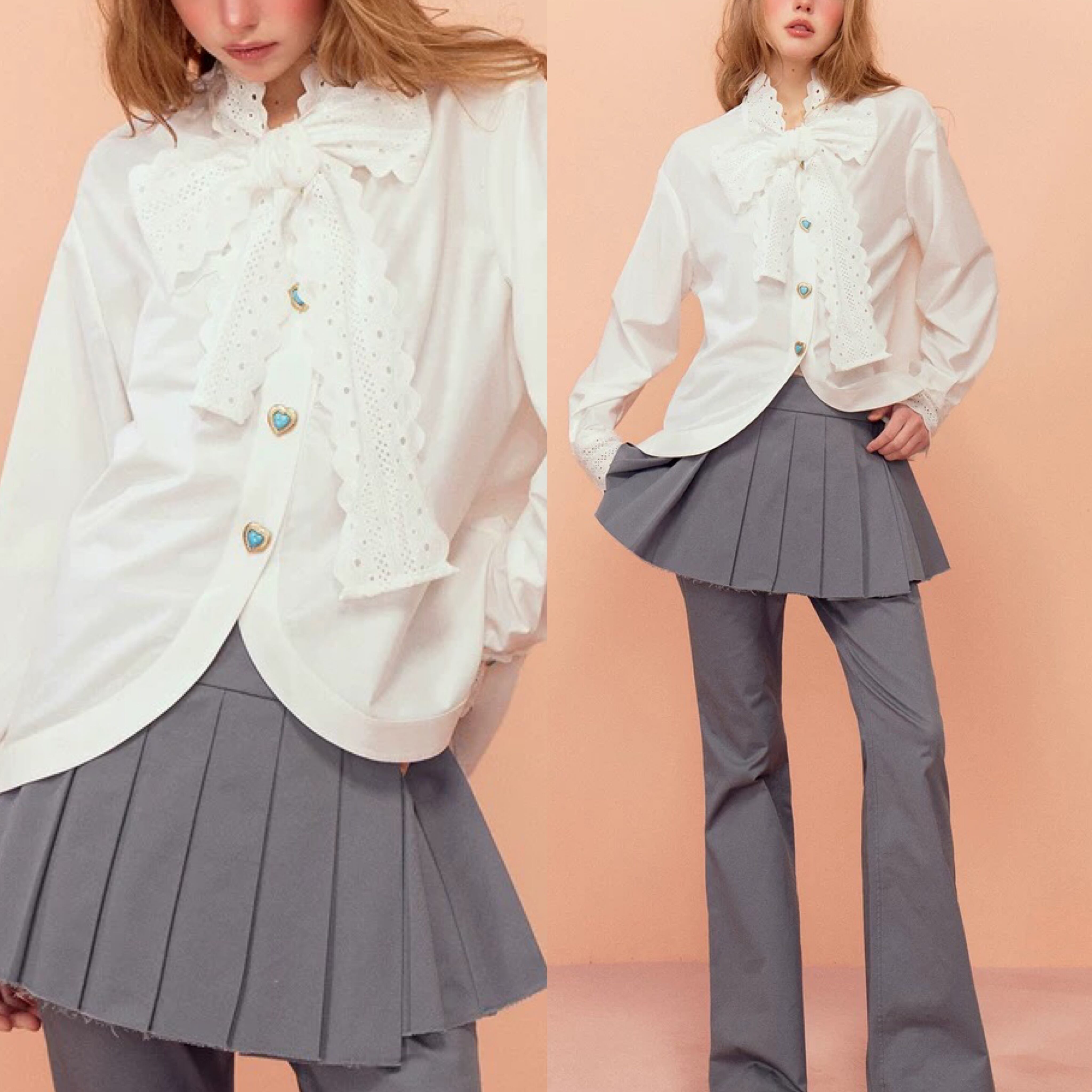 ブラウス ジャケット ハート 緑 ガーリー リボン カジュアル トップスニーカー