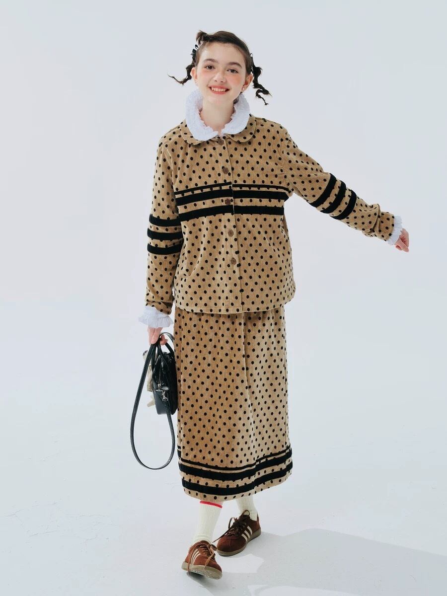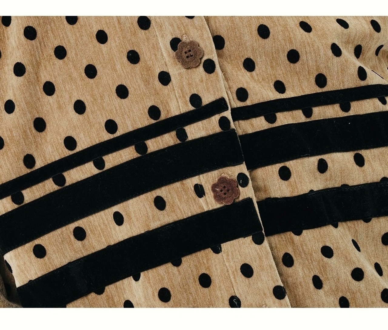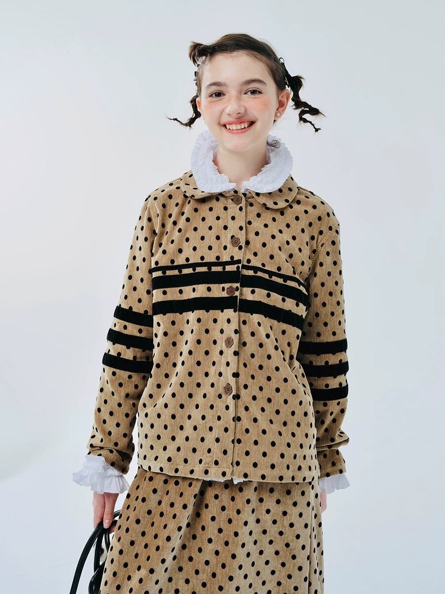 【トップス】水玉 ドット カーディガン 黄色 丸襟 黒 ブラウス シャツ ジャケット アウター