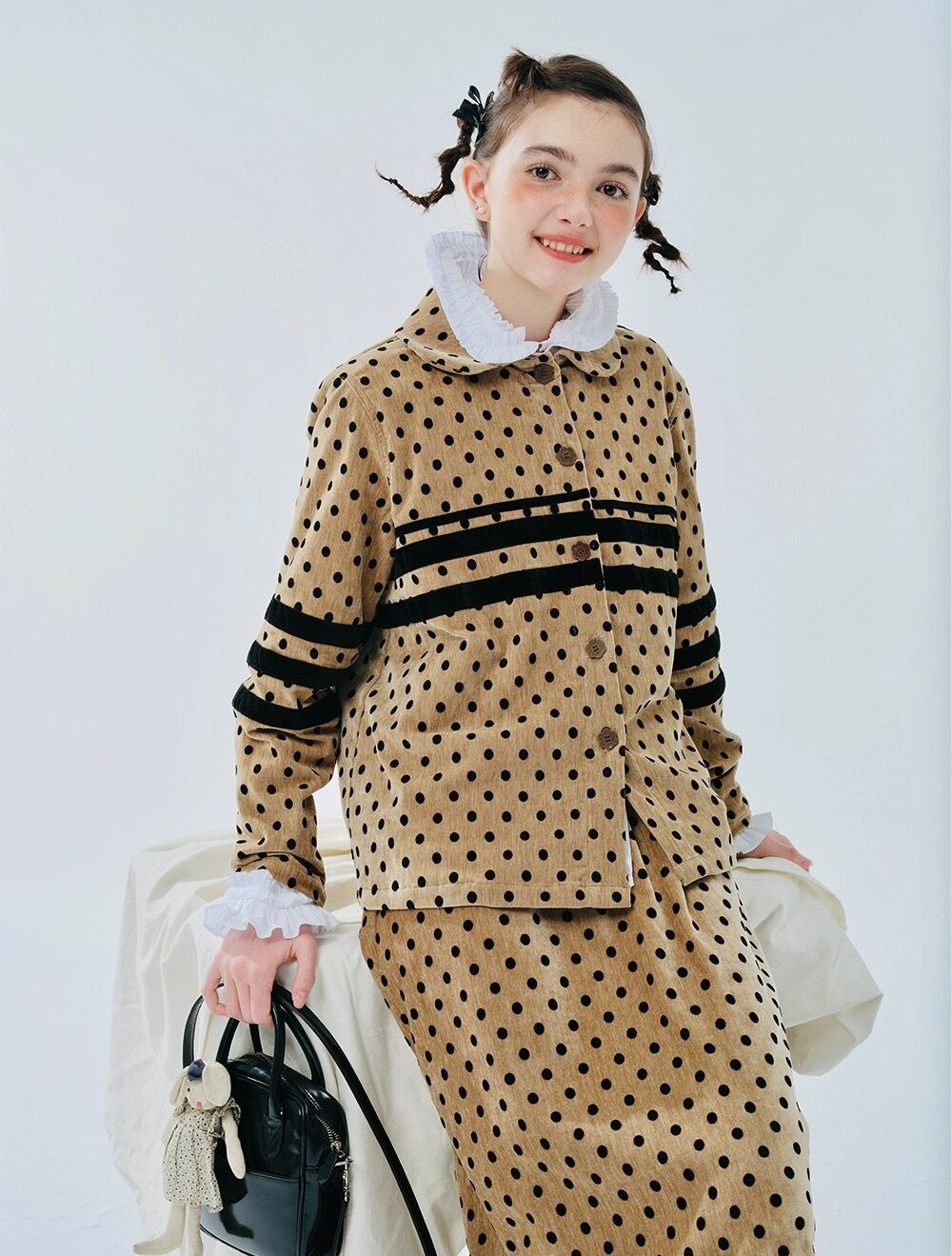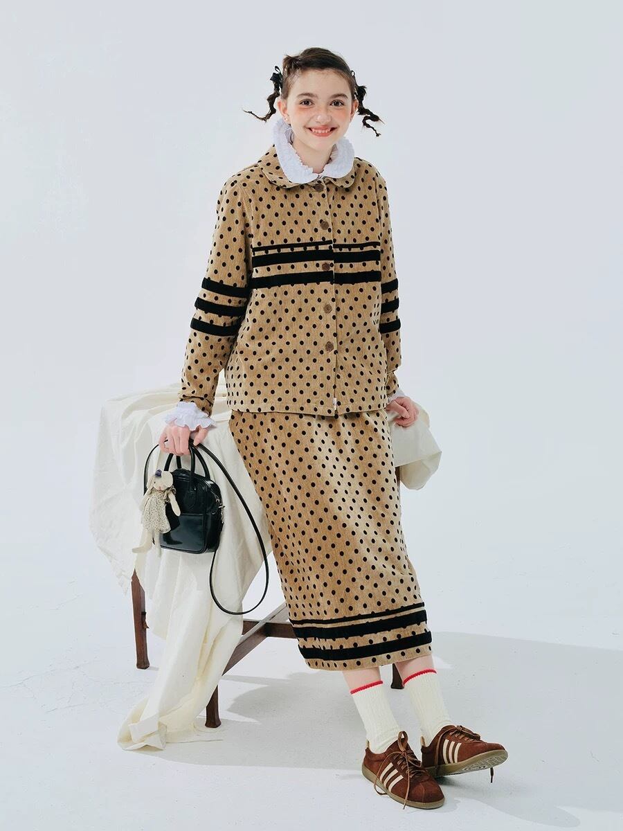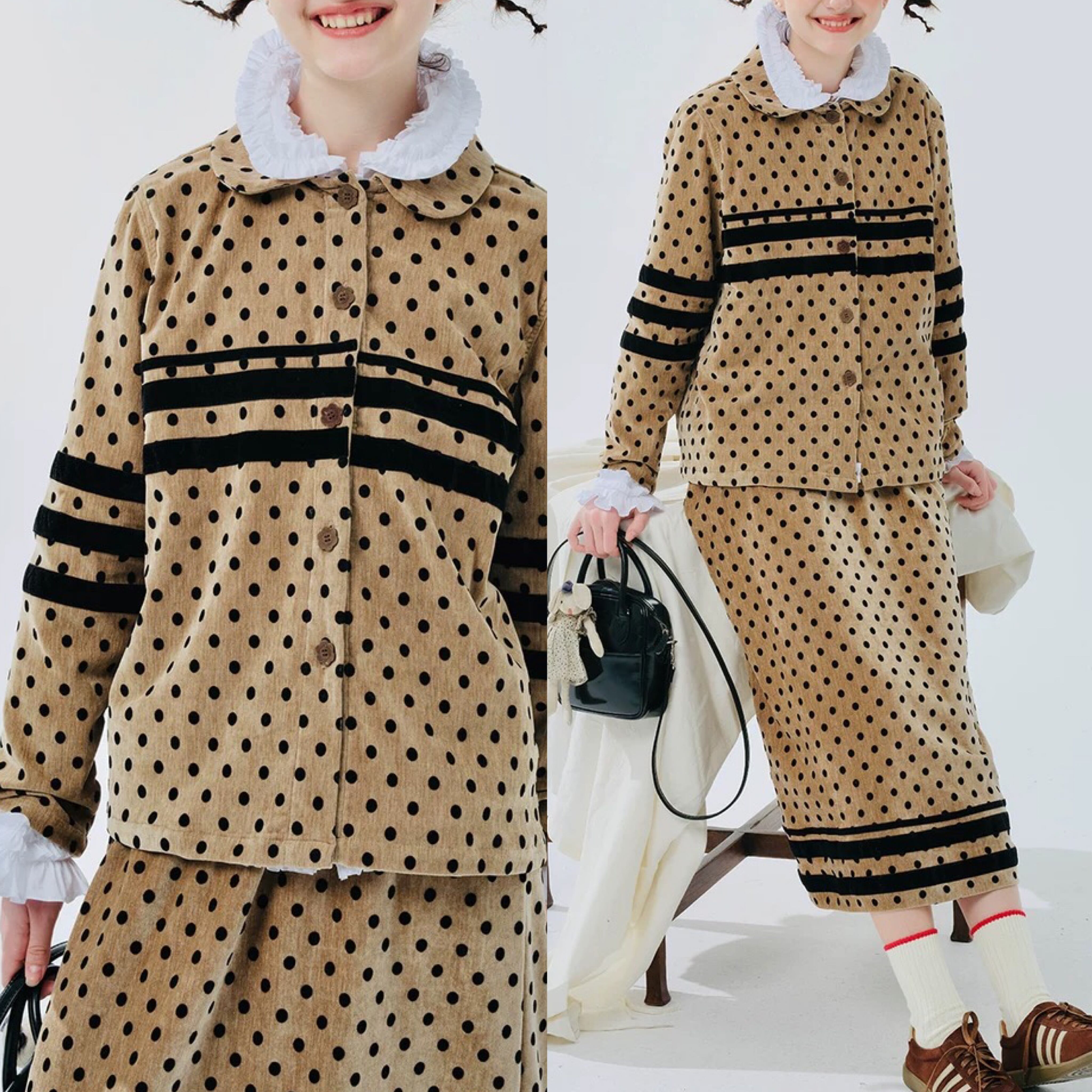 【トップス】水玉 ドット カーディガン 黄色 丸襟 黒 ブラウス シャツ ジャケット アウター