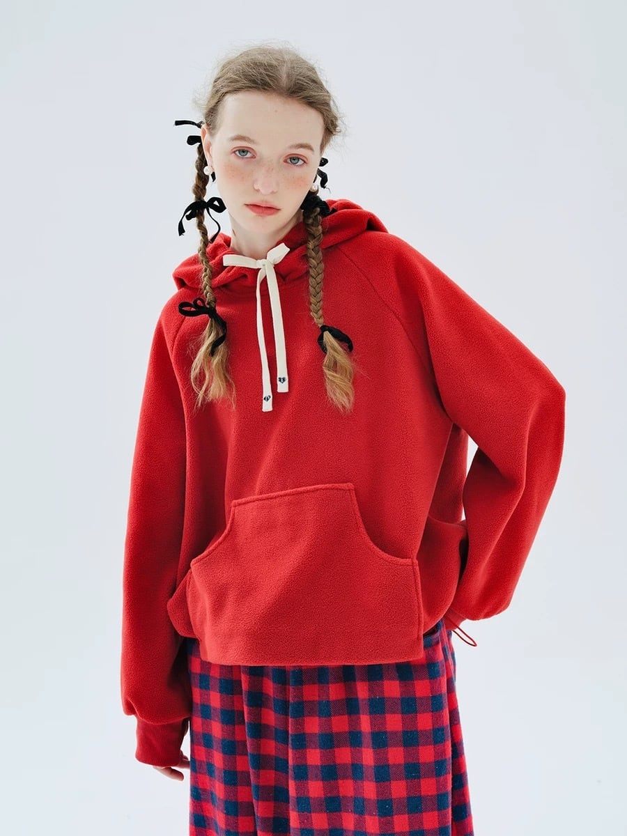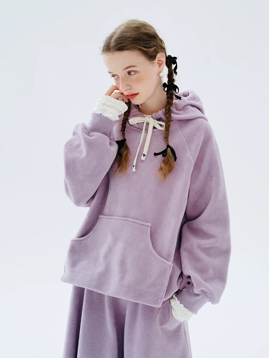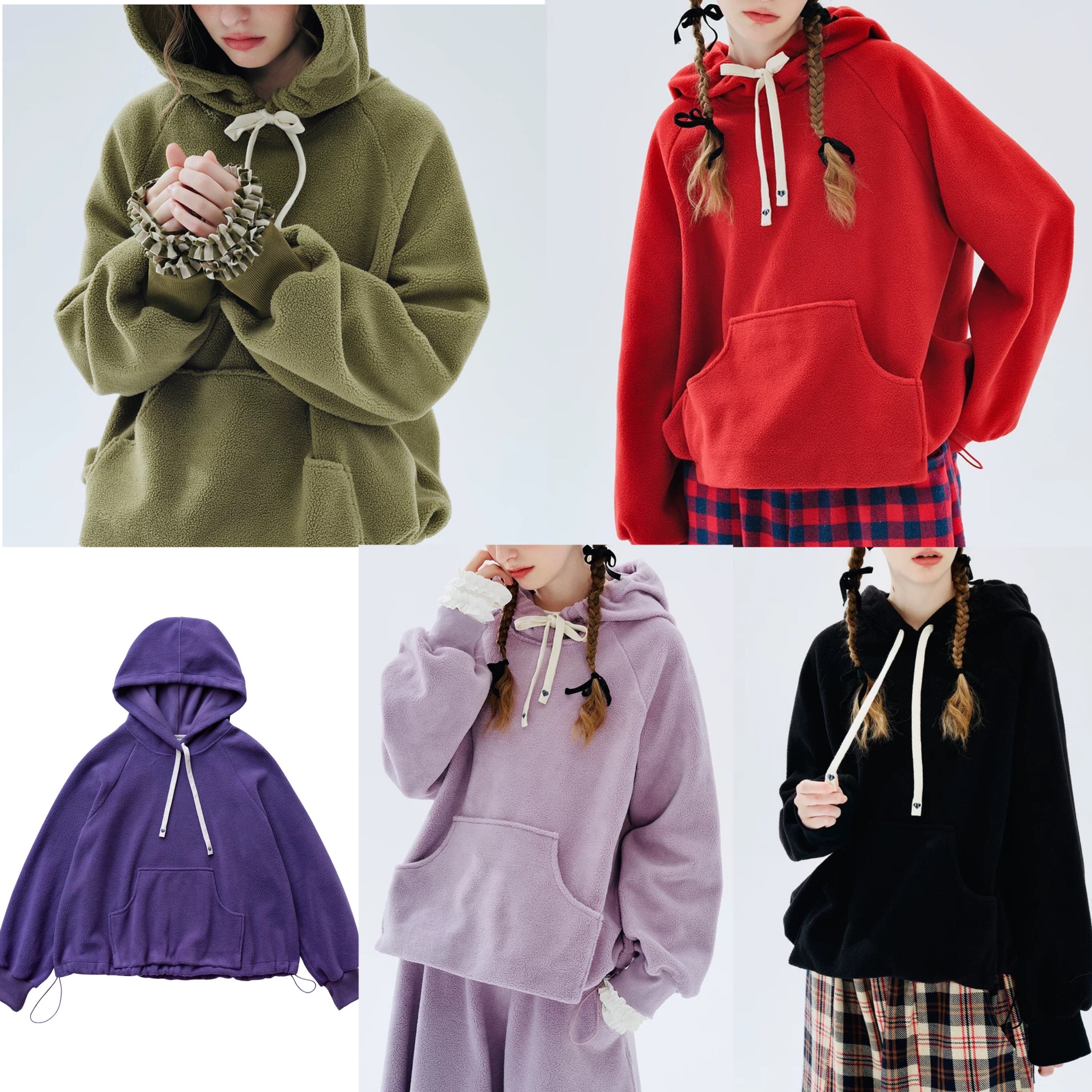 フリース 紫 赤 パーカー スウェット セーター ニット トレーナー カジュアル 黒 赤 フード