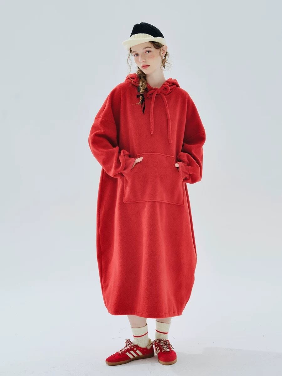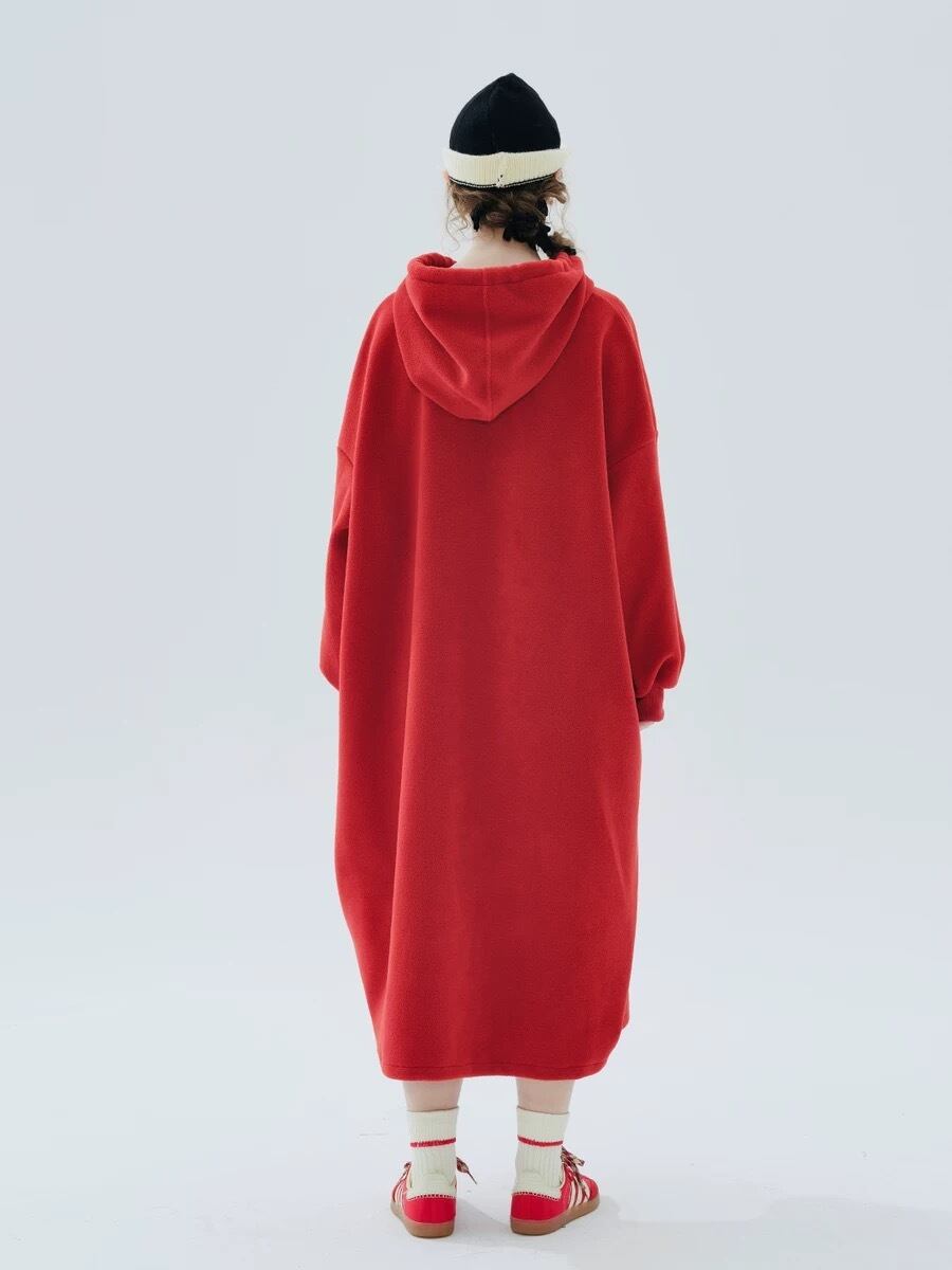 赤 スウェット フリース ガーリー パーカー トレーナー カジュアル ワンピース スウェット