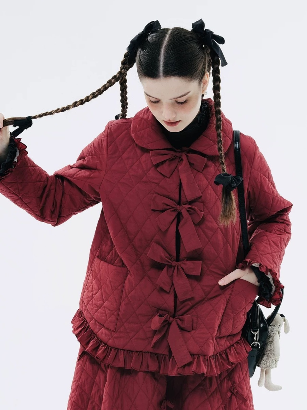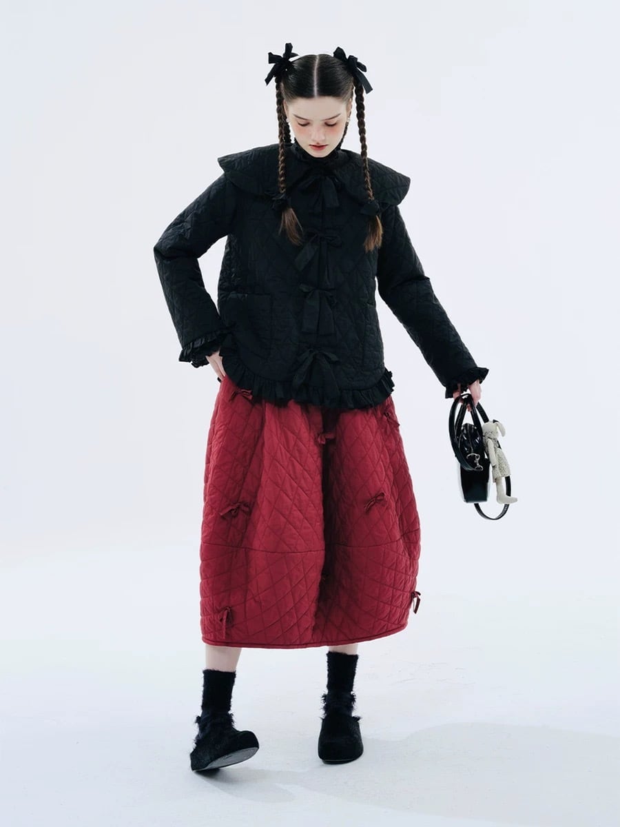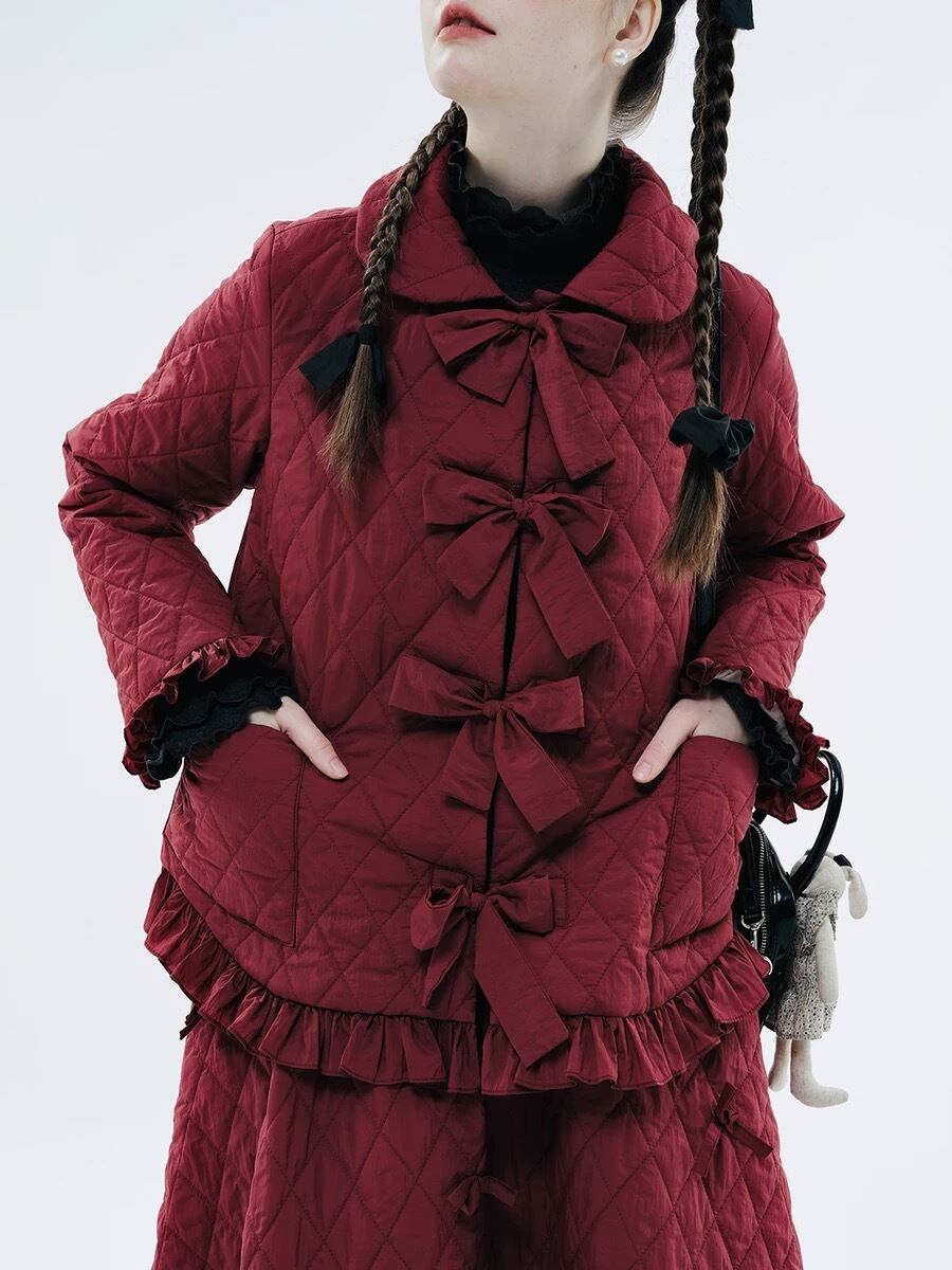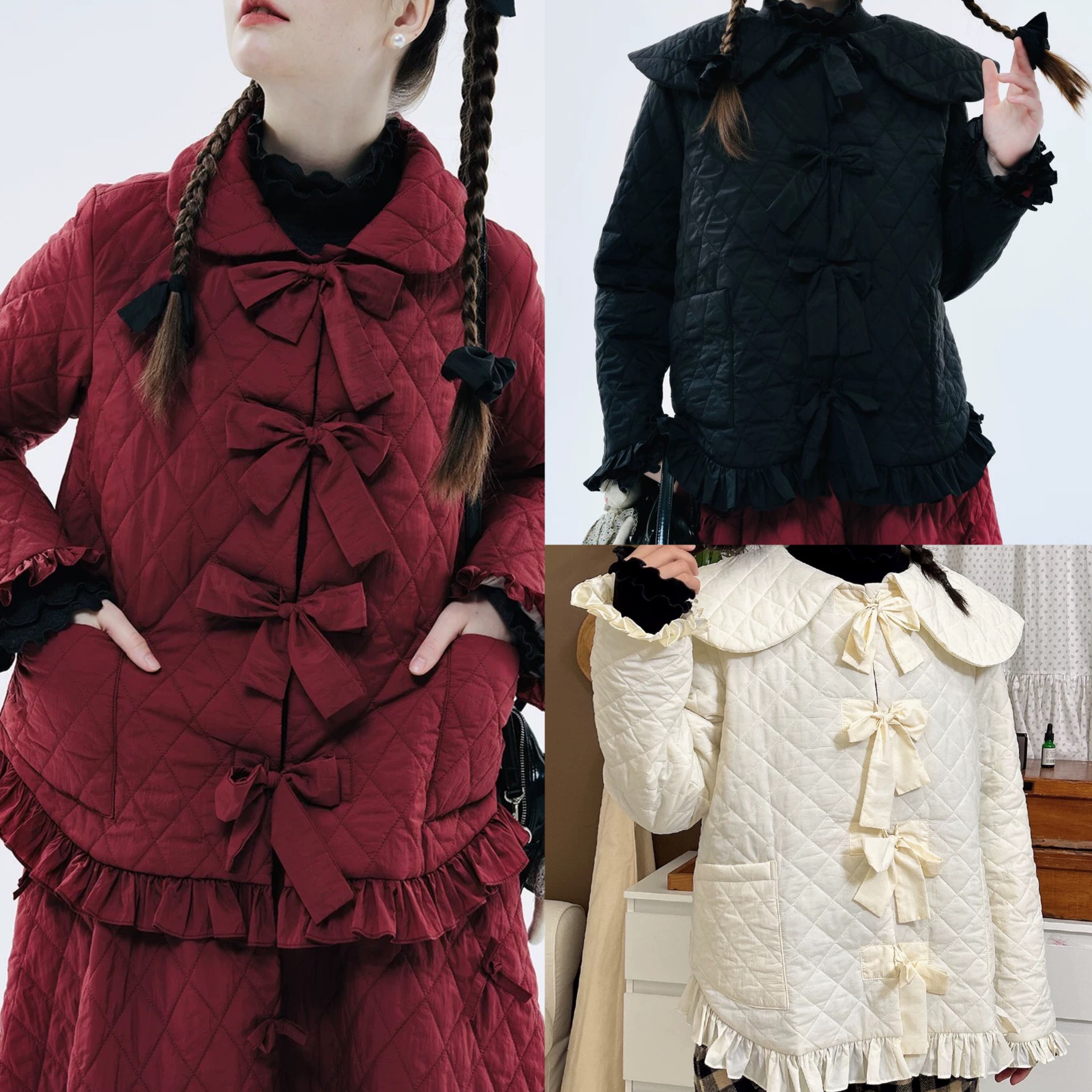丸襟 赤 黒 白 ジャケット アウター カーディガン コート ブルゾン 可愛い リボン
