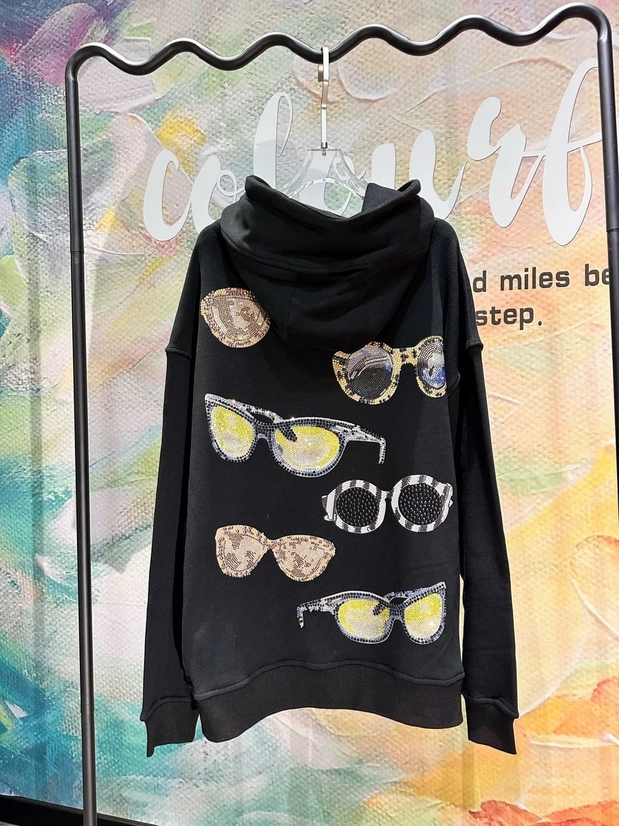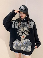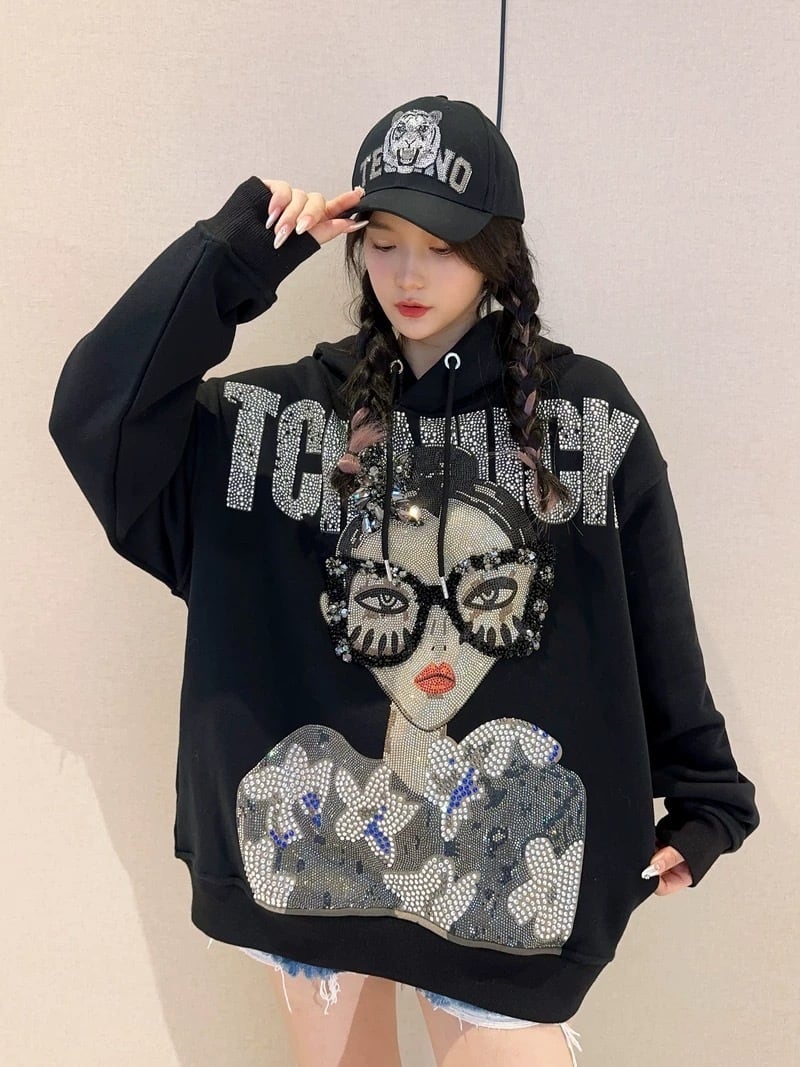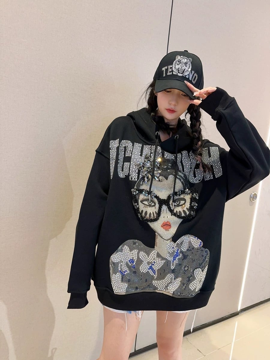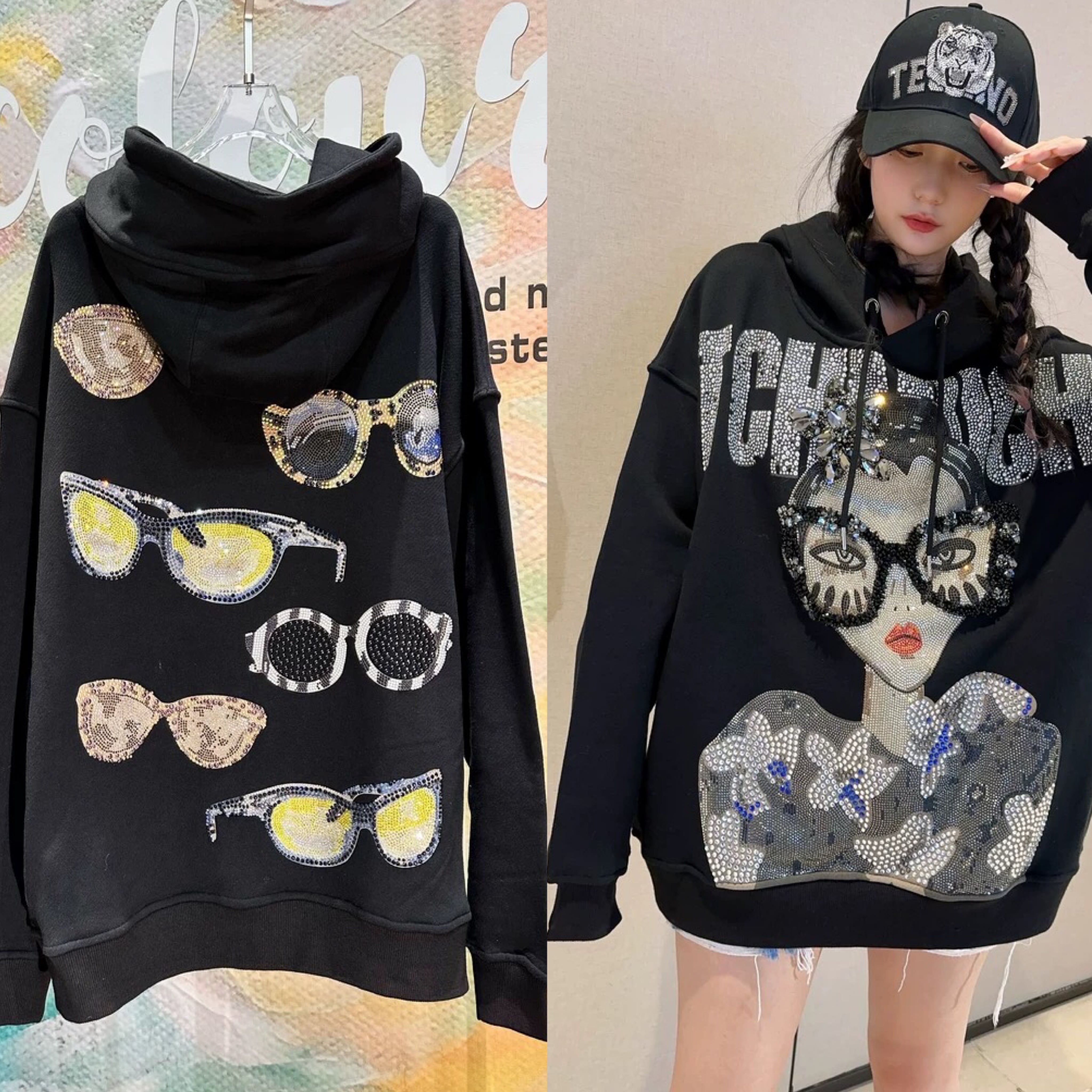キラキラ メガネ サングラス ラインストーン スウェット オーバーサイズ ワンピース XL ラインストーン ストリート キラキラ トレーナパーカー 黒 カジュアル スウェット とら アニマル デコレーション メガネ