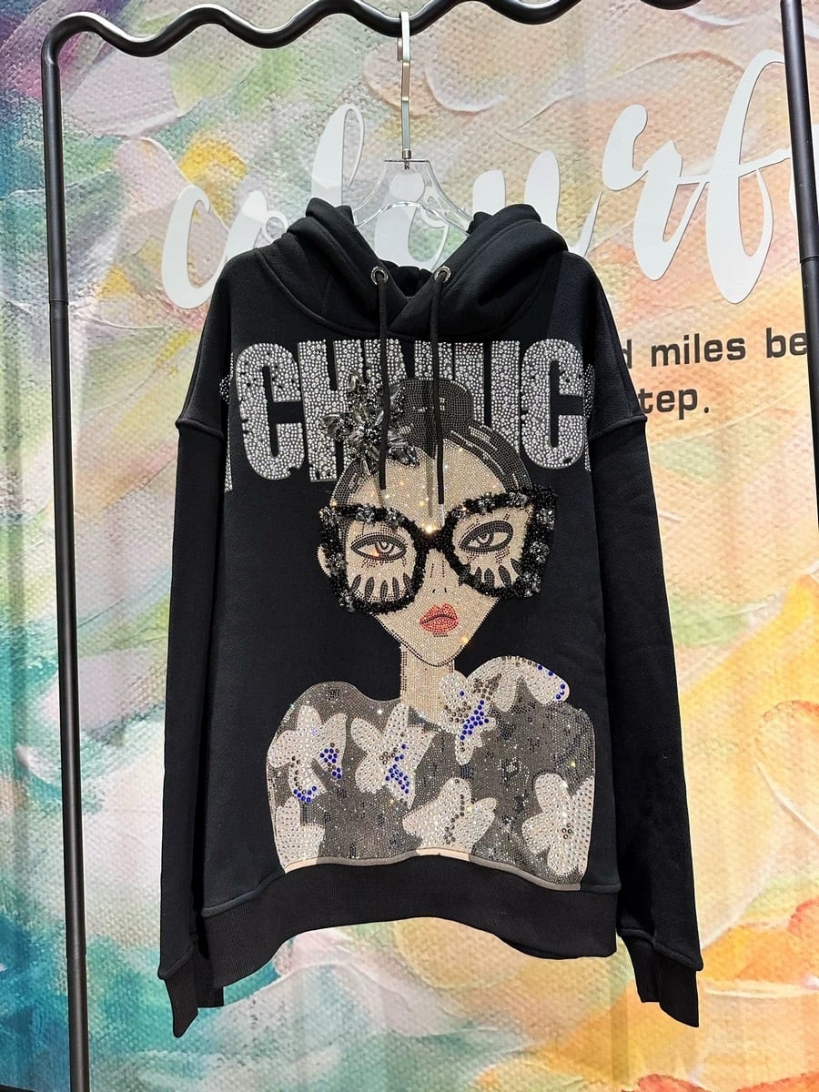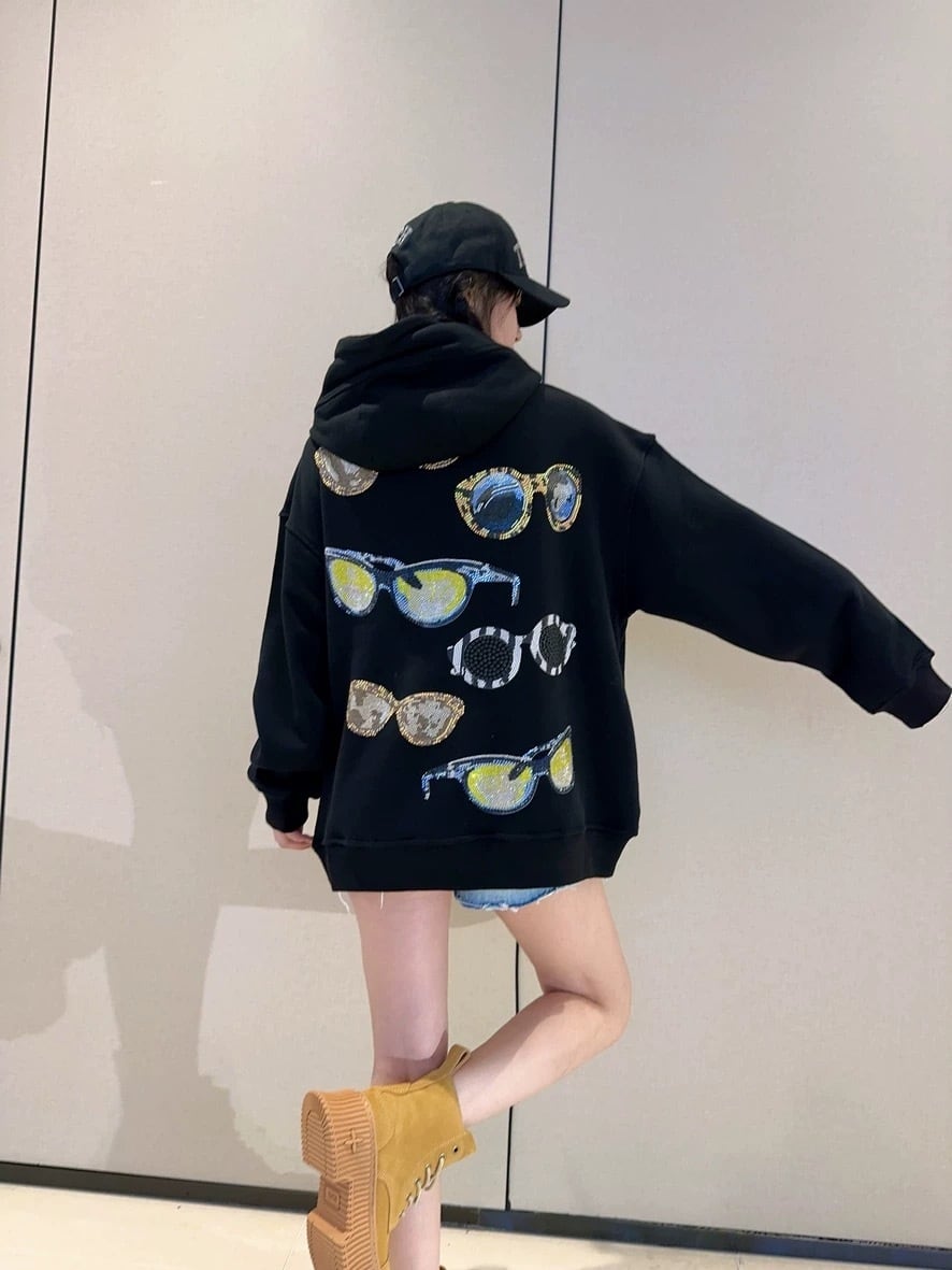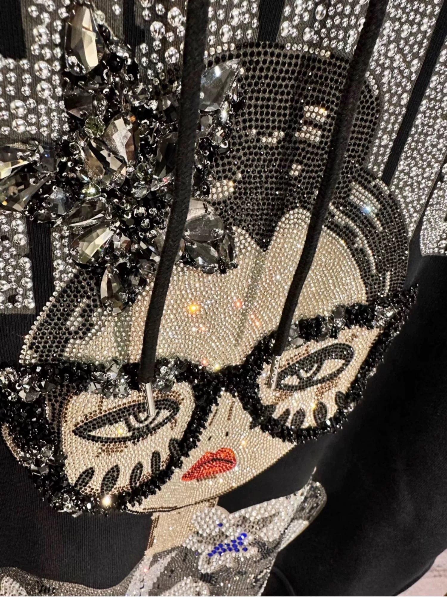 キラキラ メガネ サングラス ラインストーン スウェット オーバーサイズ ワンピース XL ラインストーン ストリート キラキラ トレーナパーカー 黒 カジュアル スウェット とら アニマル デコレーション メガネ