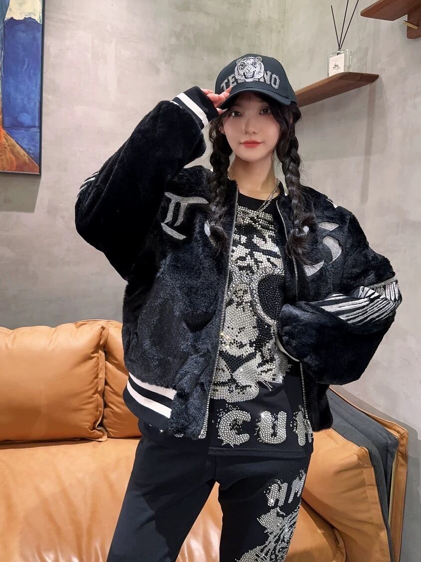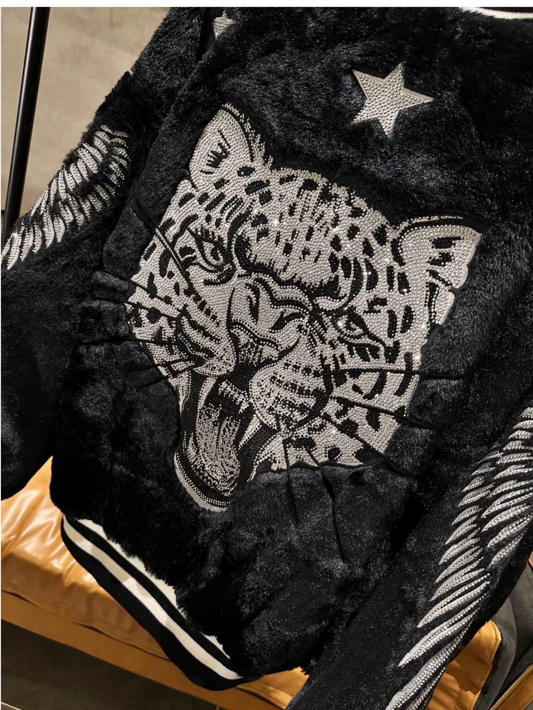 ジャケット アウター ブルゾン スウェット オーバーサイズ ワンピース XL ラインストーン ストリート キラキラ トレーナパーカー 黒 カジュアル スウェット とら アニマル コート 星 カーディガン ジャケット