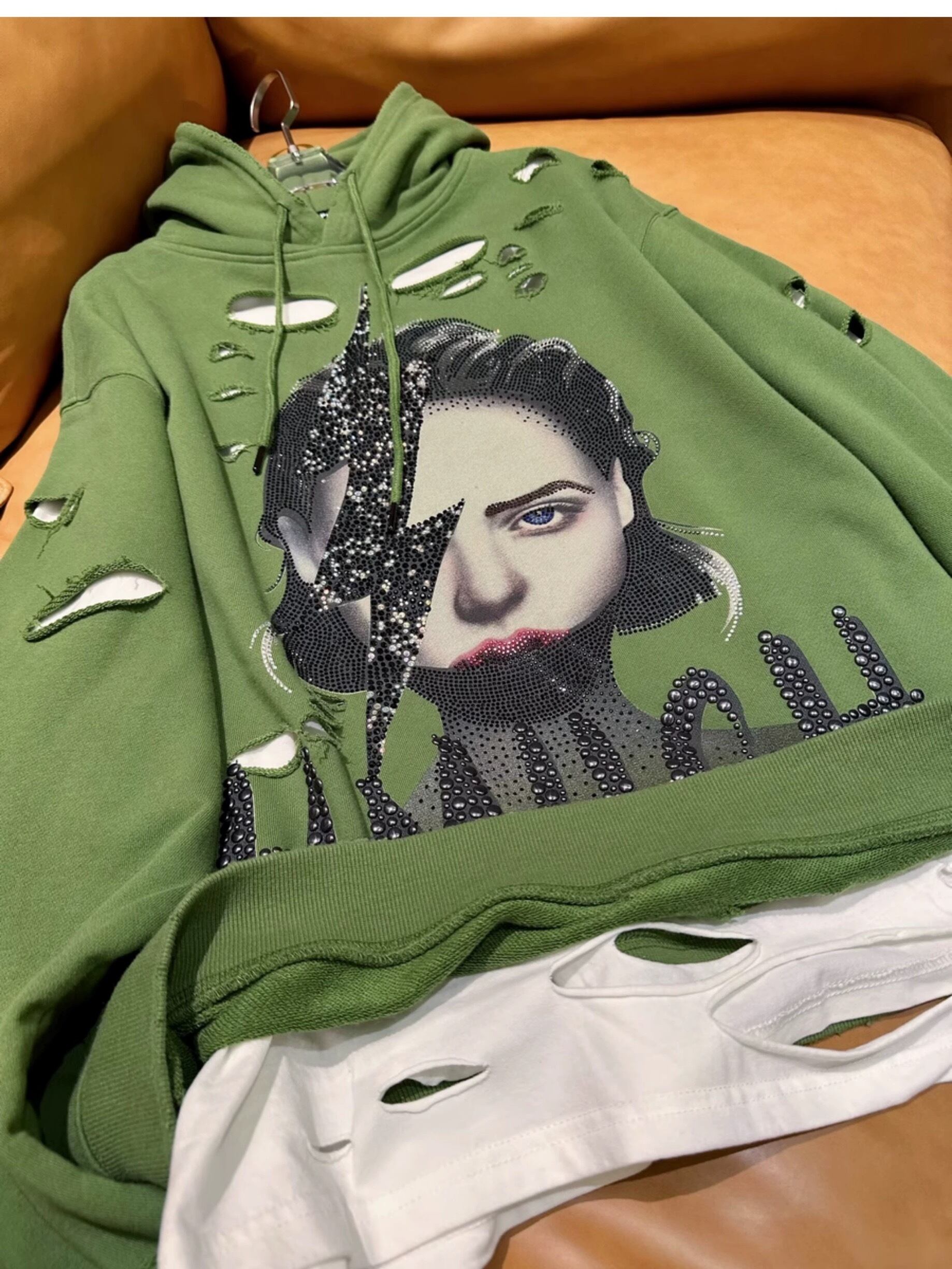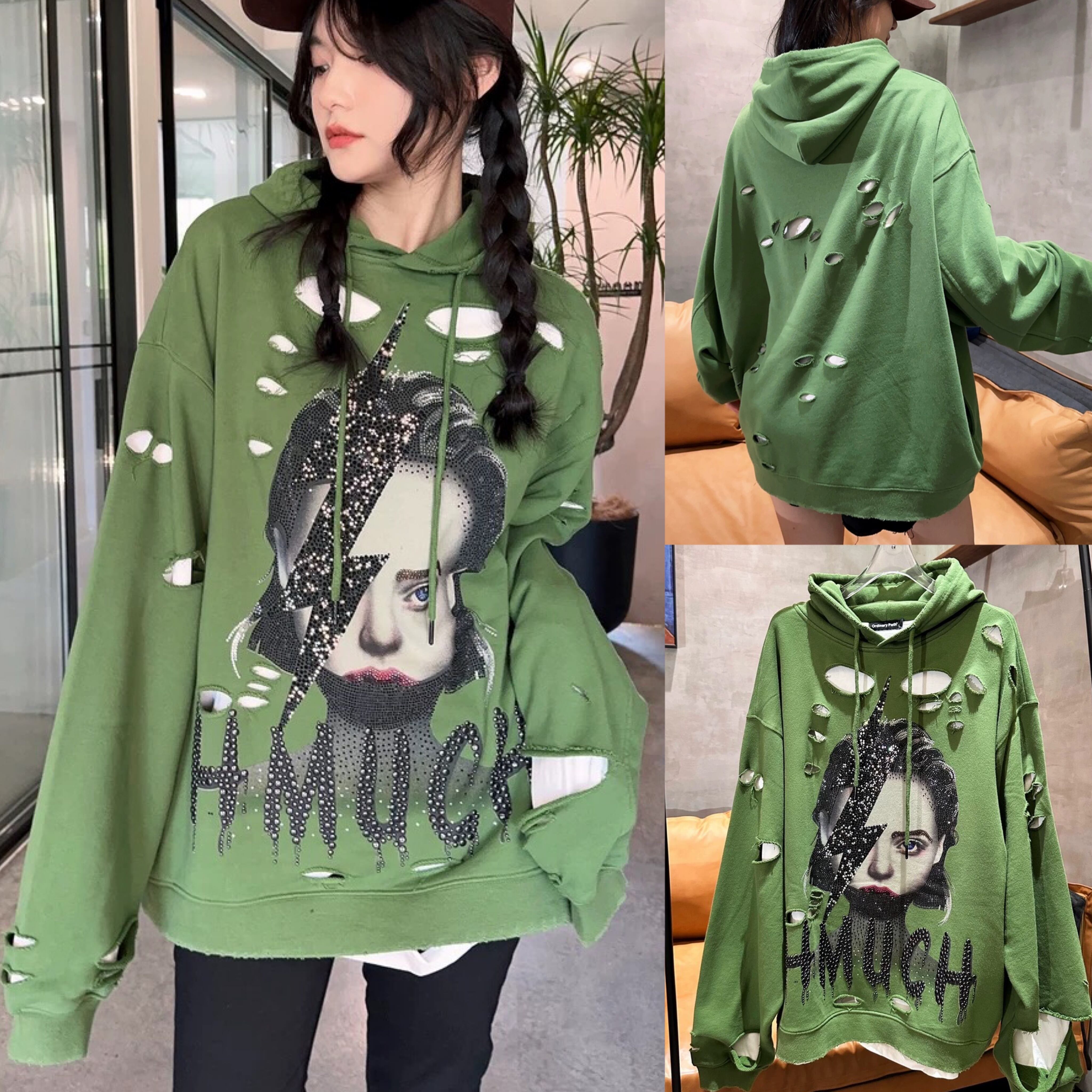 緑 カジュアル パーカー スウェット オーバーサイズ ワンピース XL ラインストーン ストリート キラキラ トレーナパーカー 黒 カジュアル スウェット とら アニマル ダメージ 重ね着 白