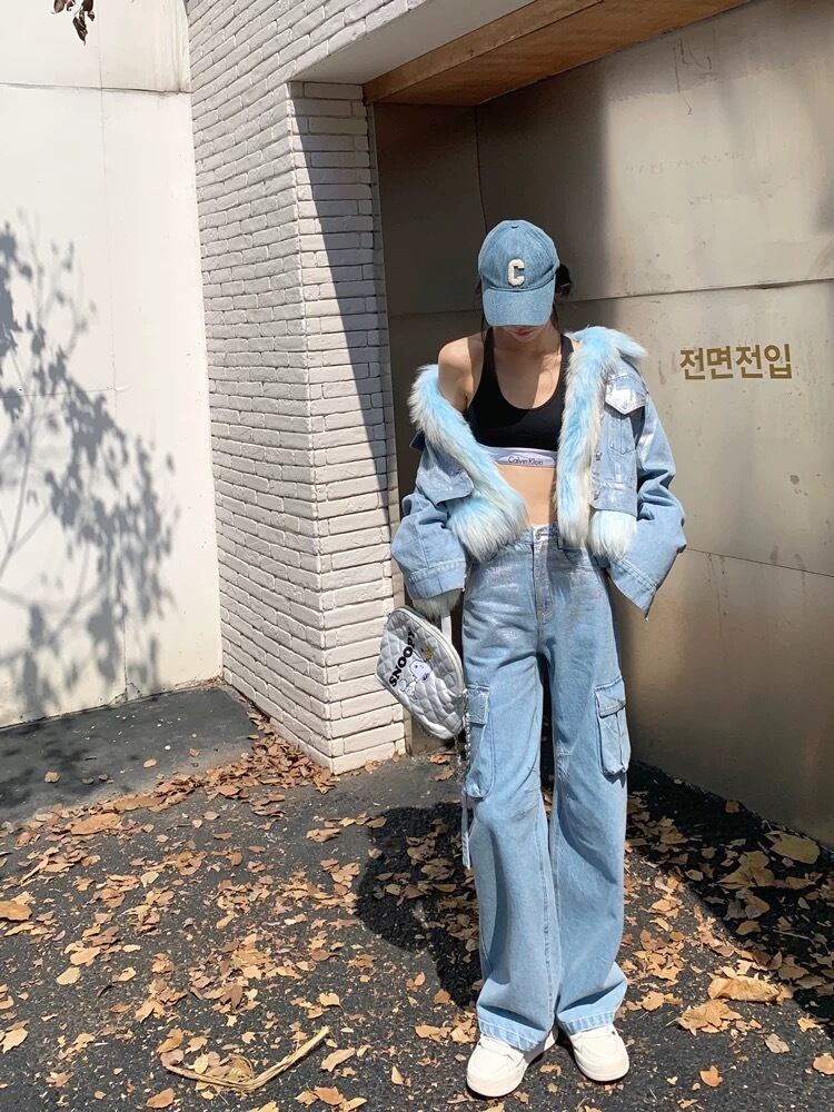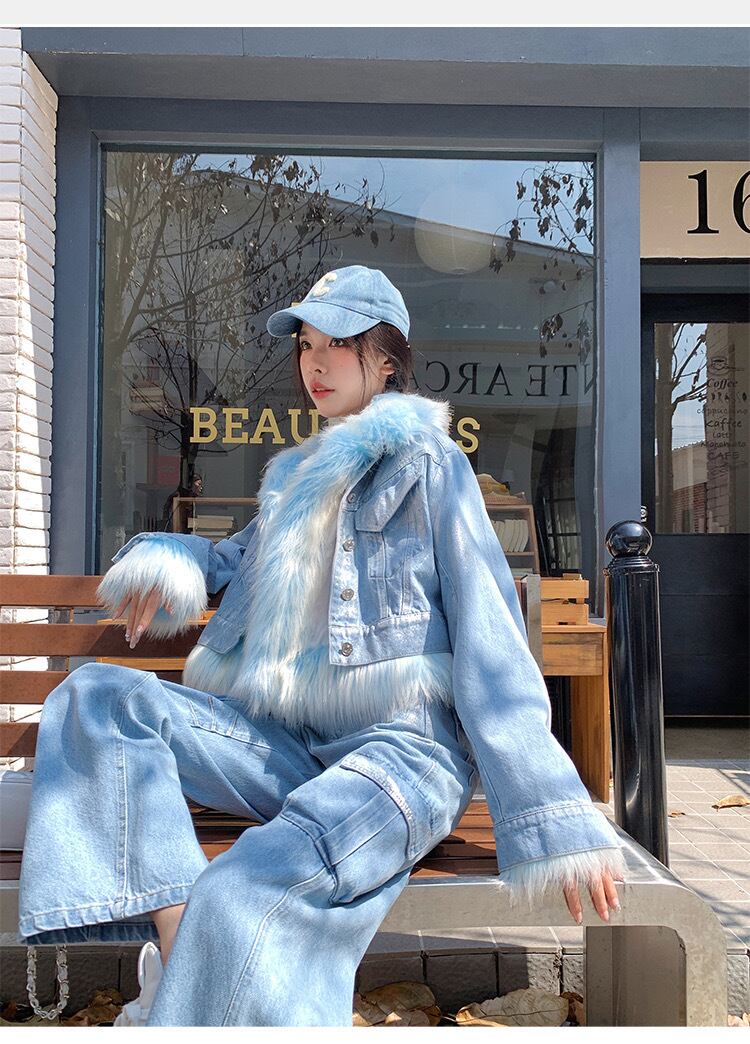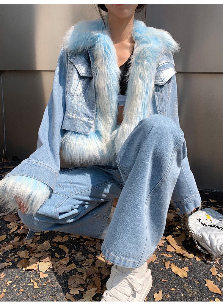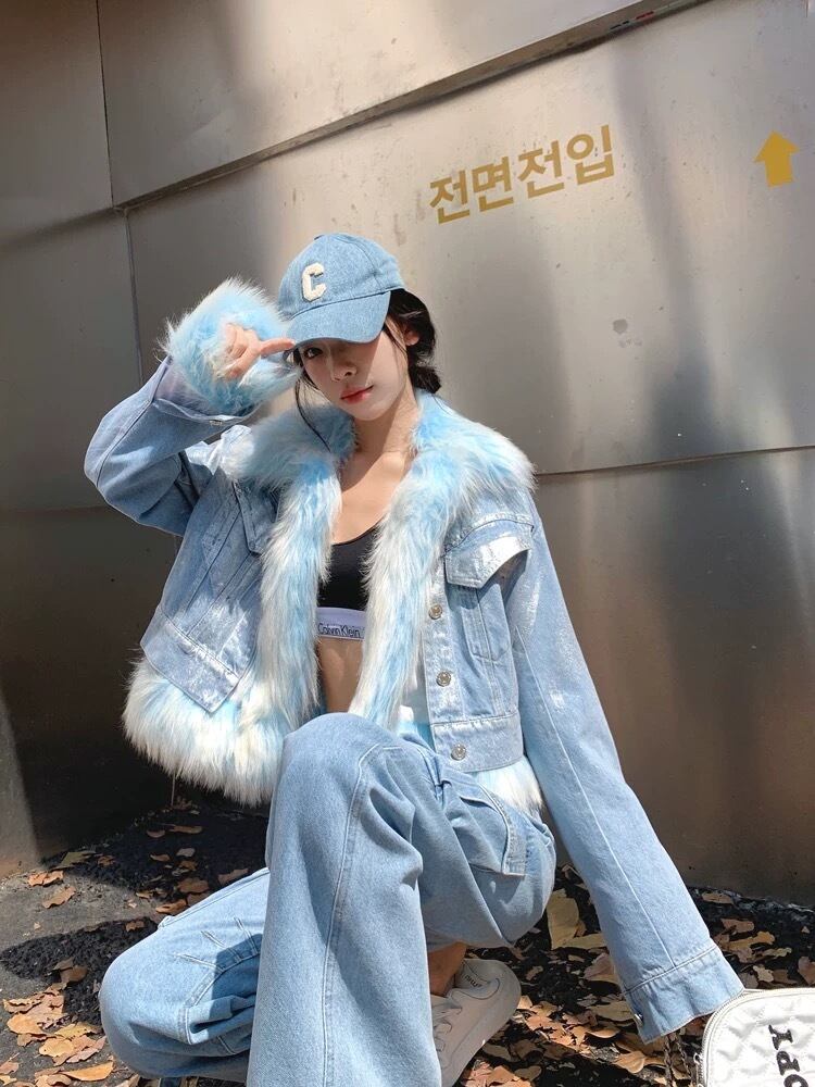 ジャケット 水色 コート アウター ブルゾン ジージャン ファー