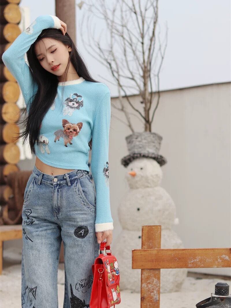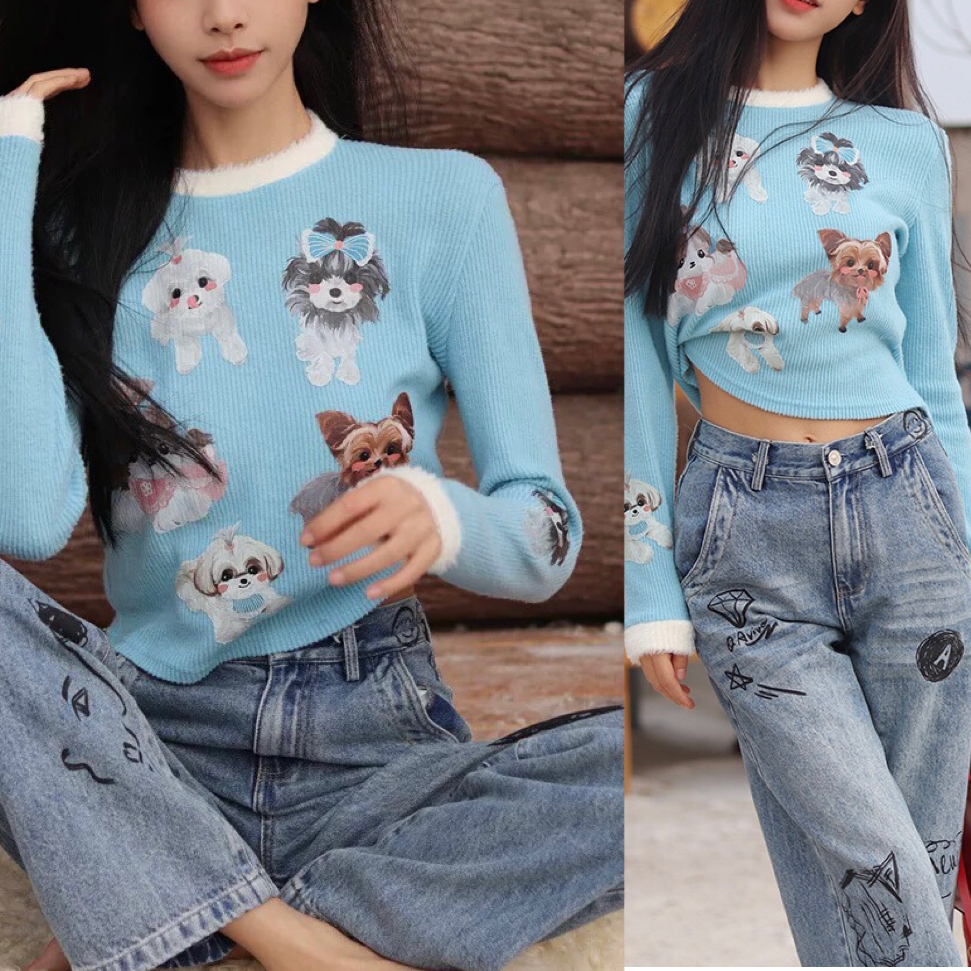 水色 トップス ブラウス Tシャツ カジュアル 犬 ペット チワワ ヨークシャテリア