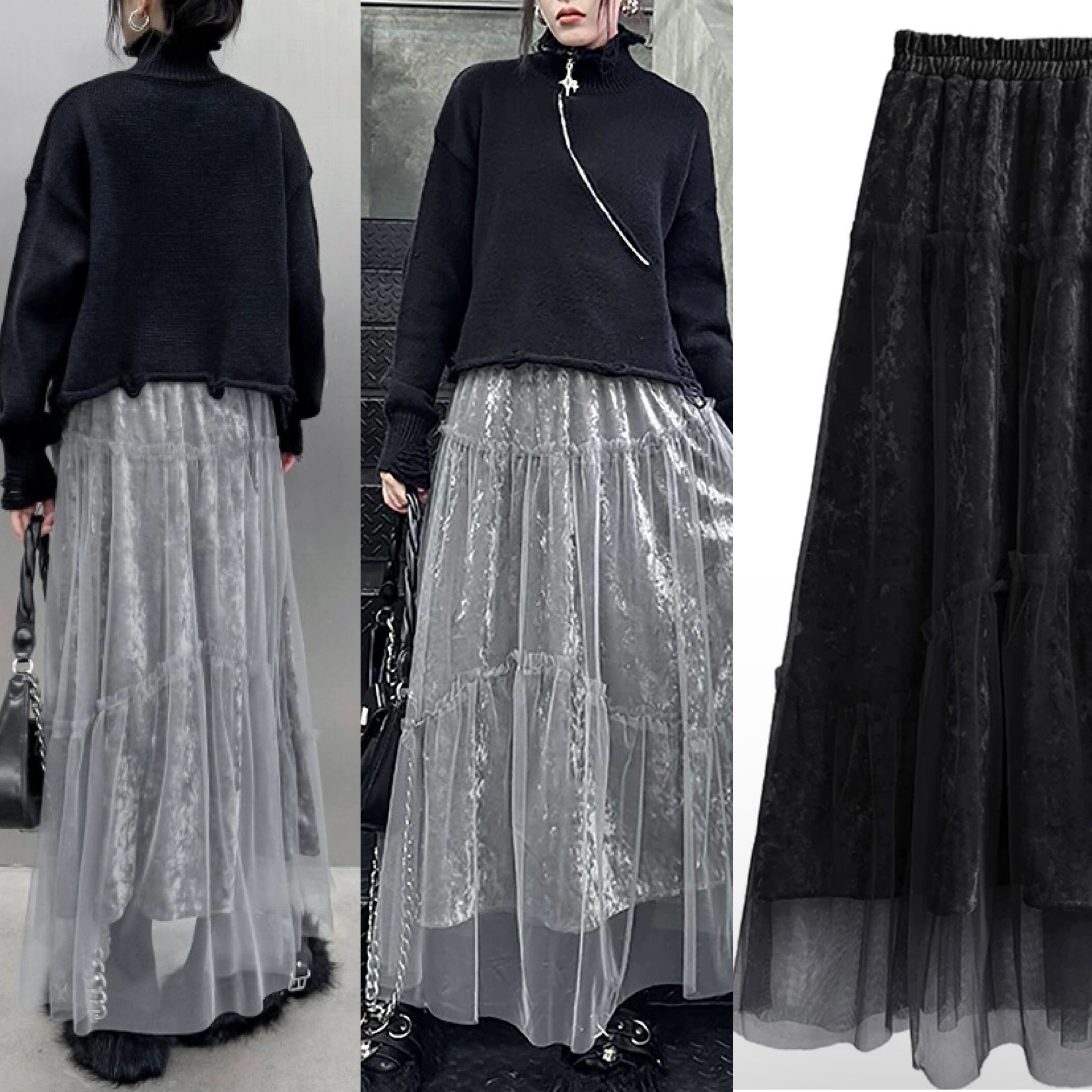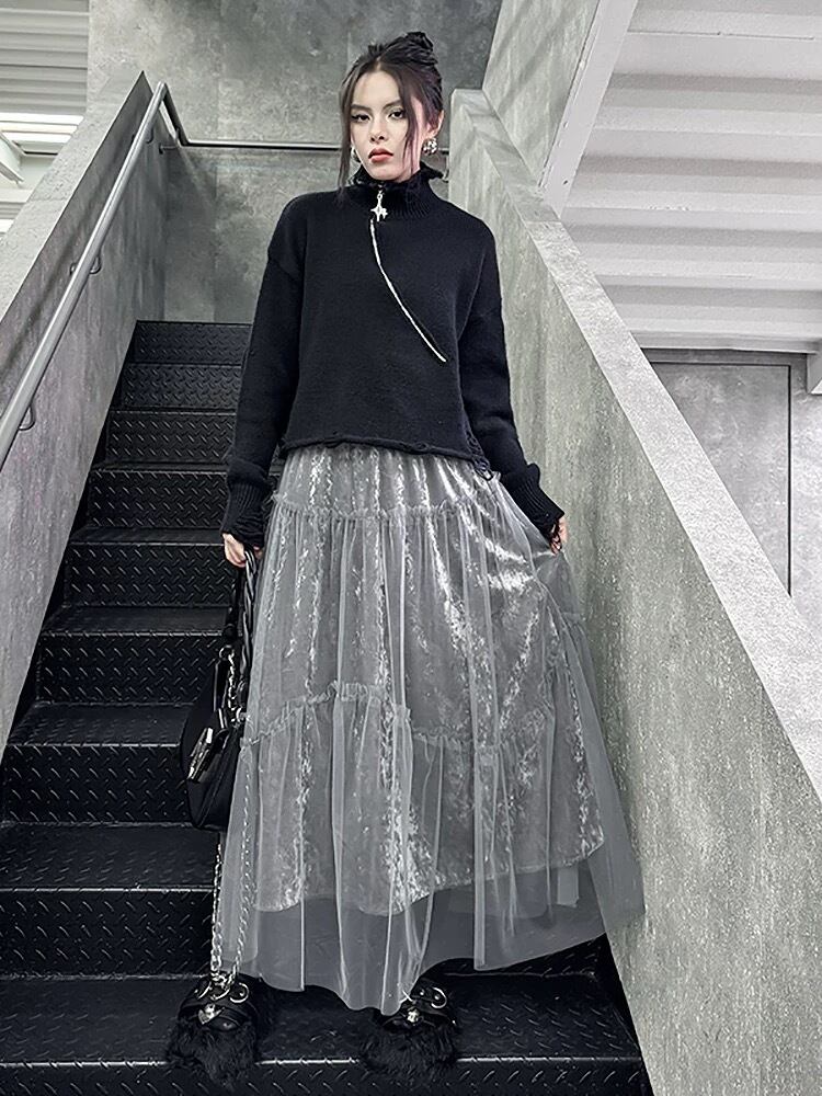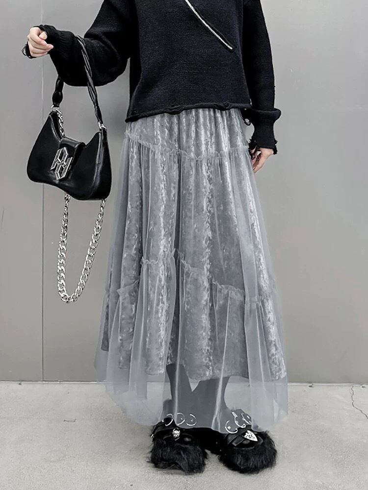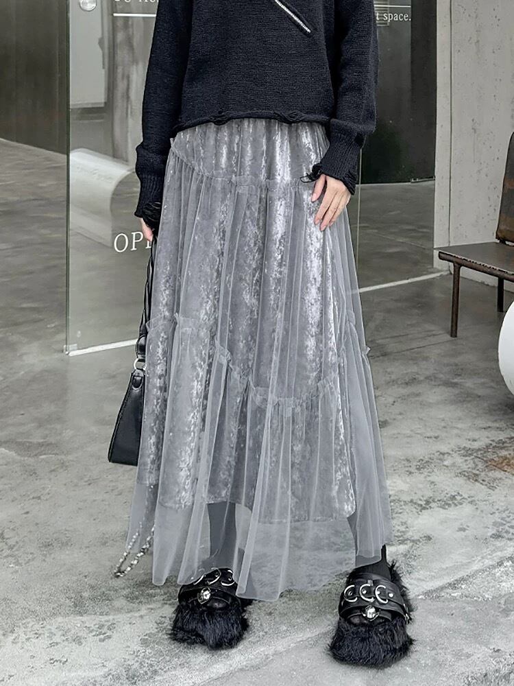 黒 グレー ボトムス スカート ゆったり カジュアル
