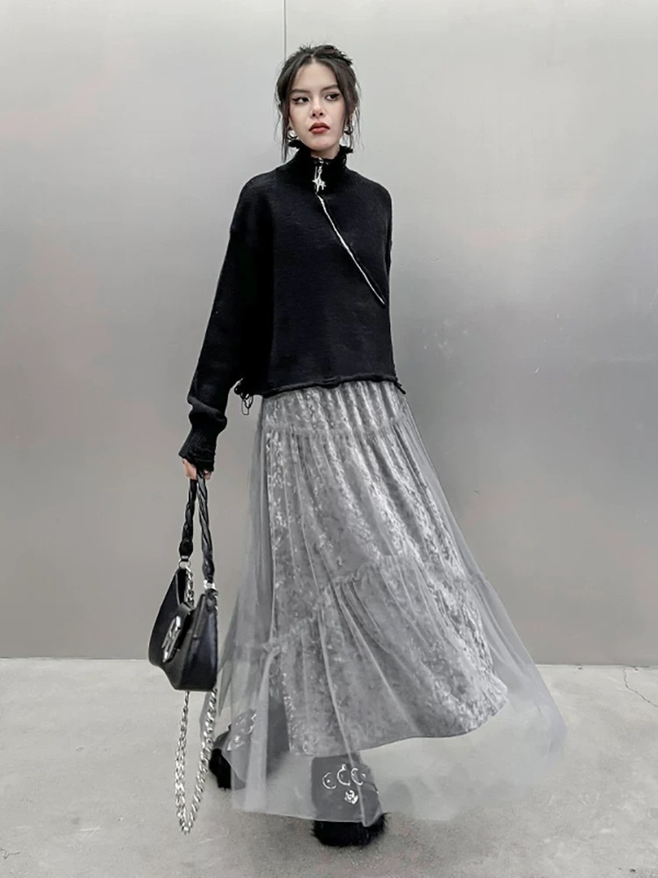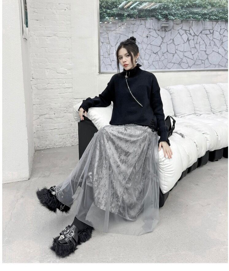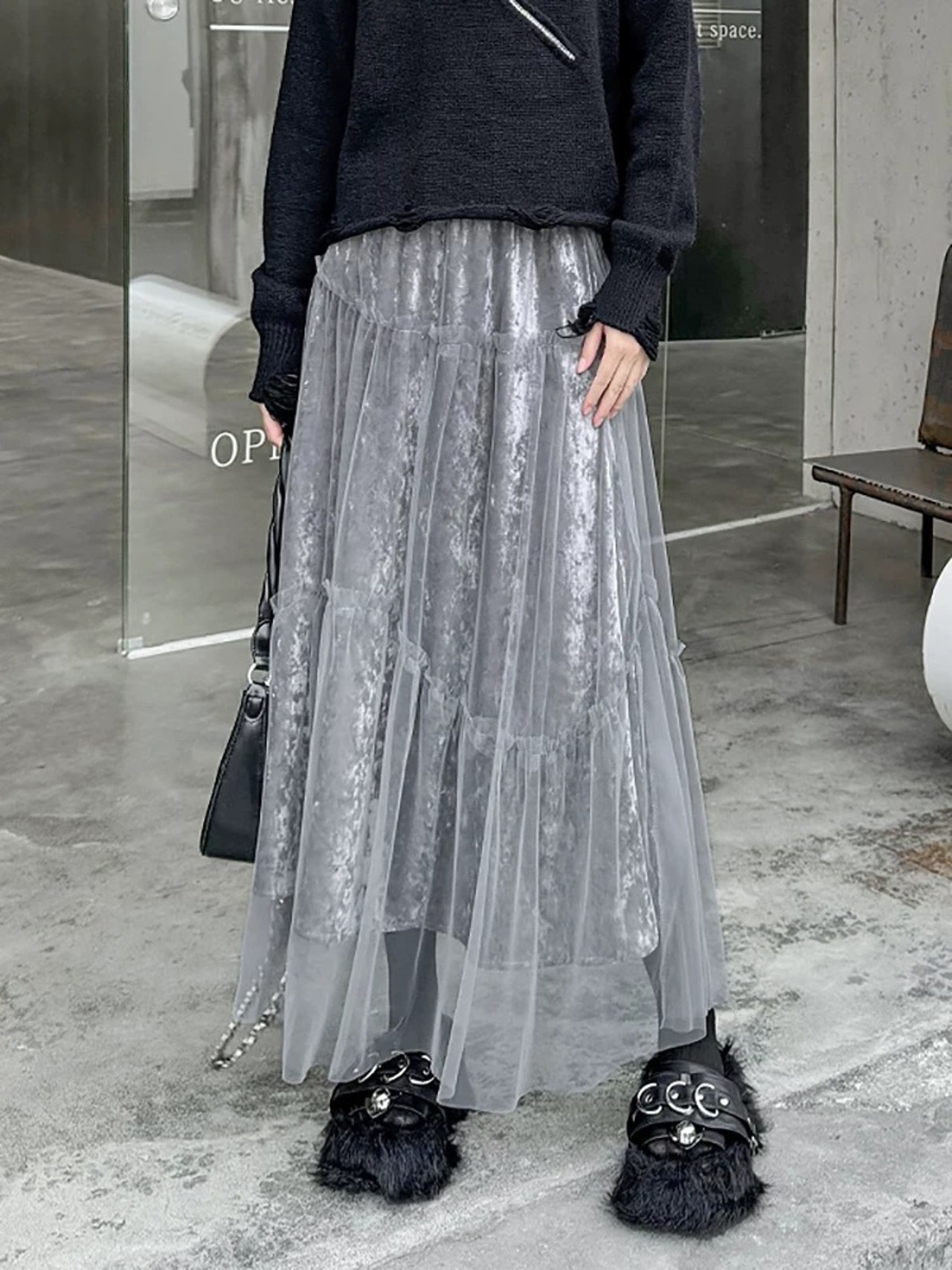 黒 グレー ボトムス スカート ゆったり カジュアル