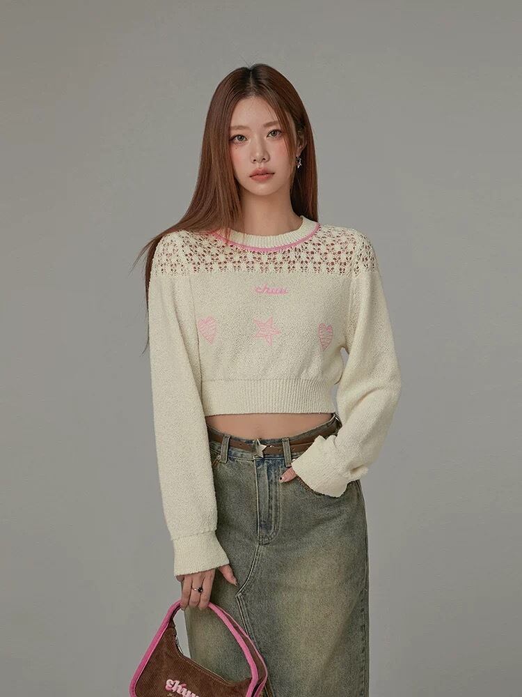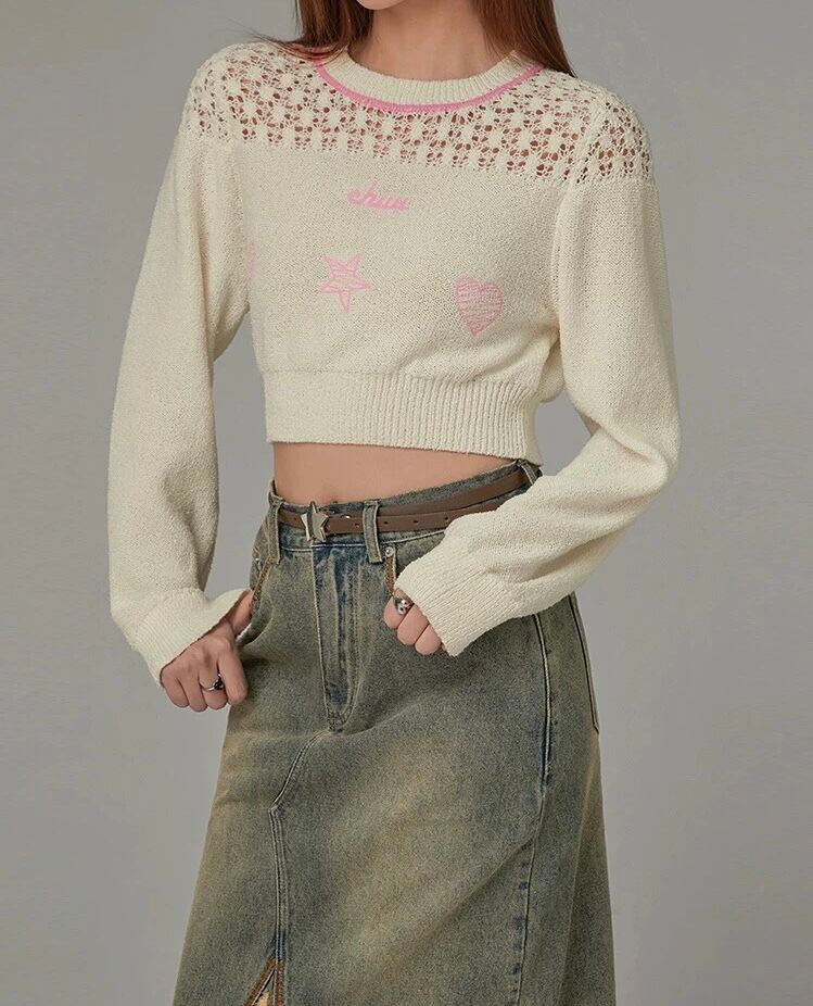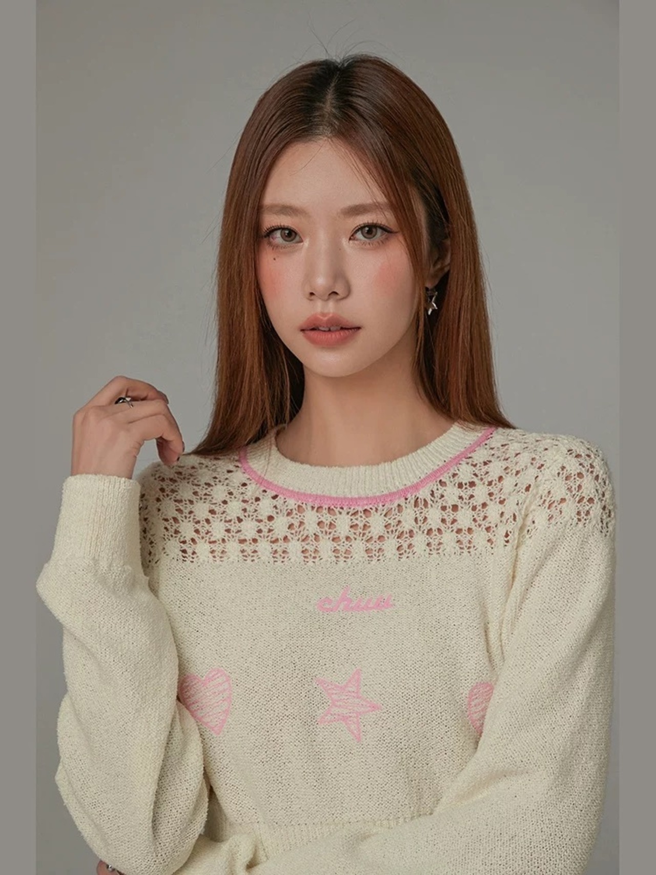 セーター ニット ハート カーディガン トップス カジュアル あみあみ