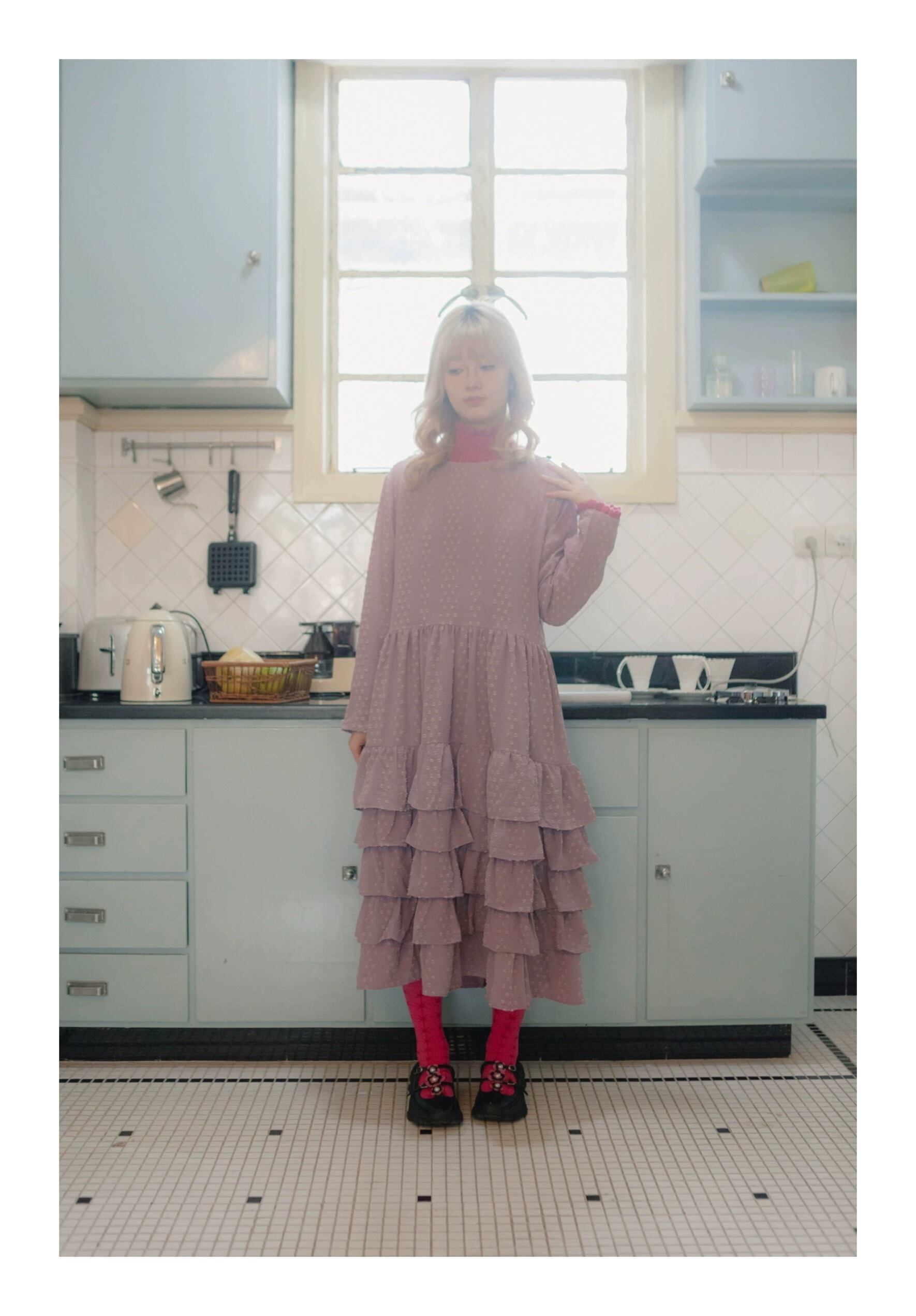 紫 ピンク 水玉 ドット スカート ワンピース ゆったり