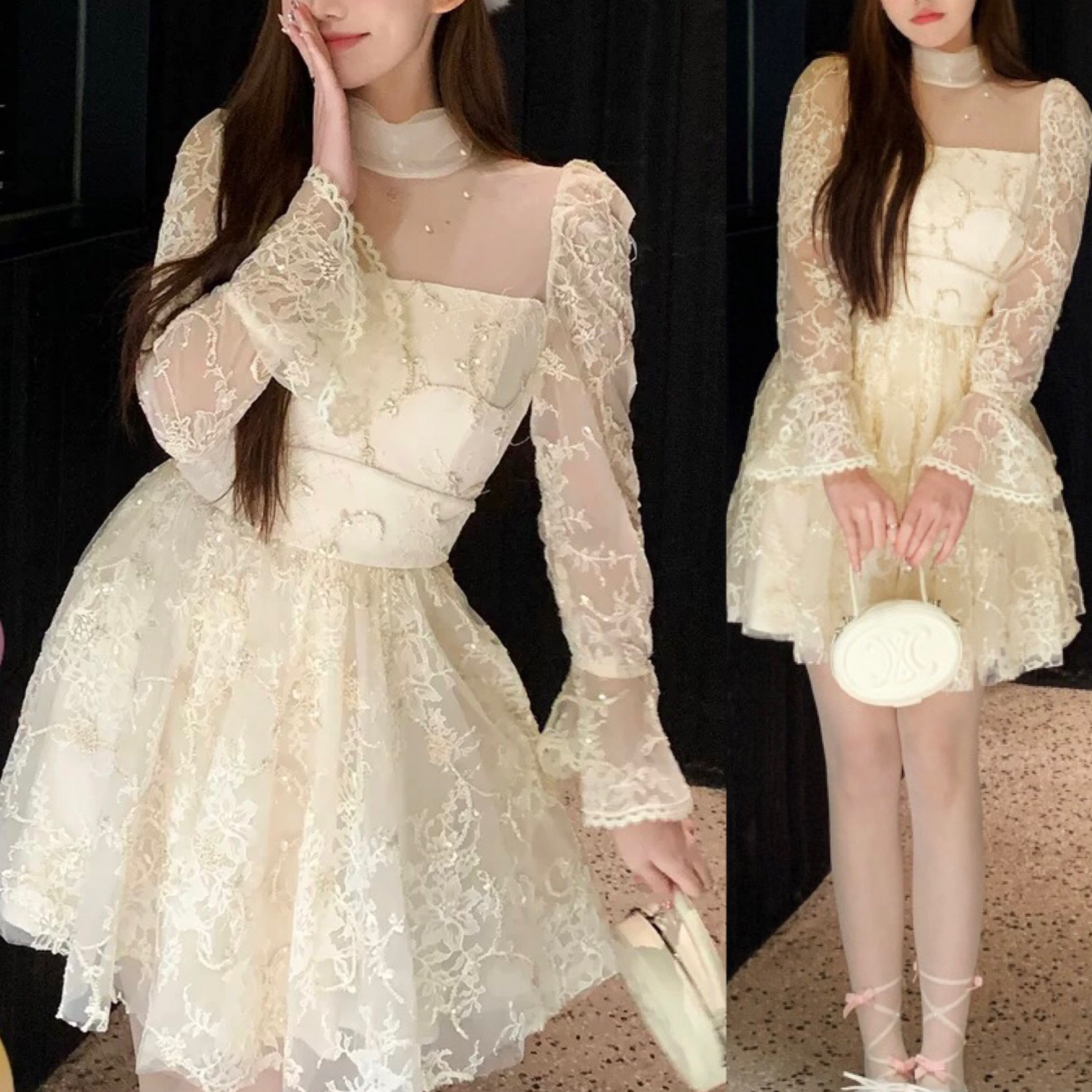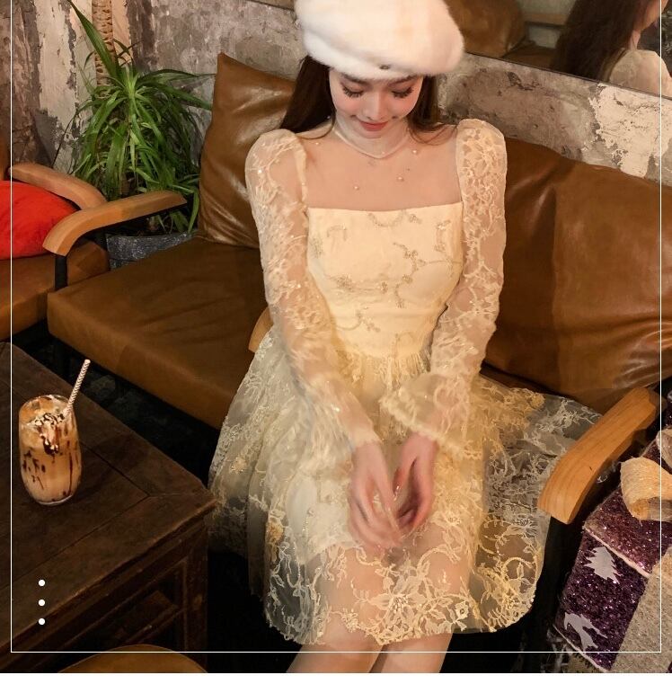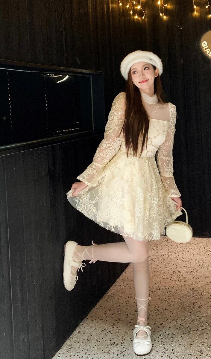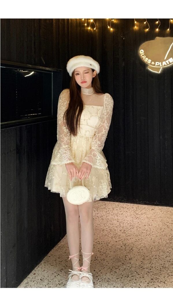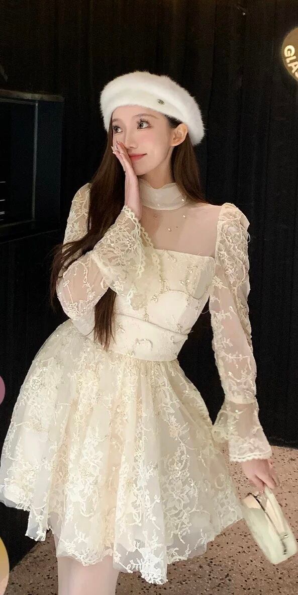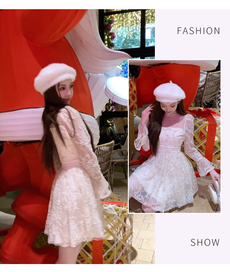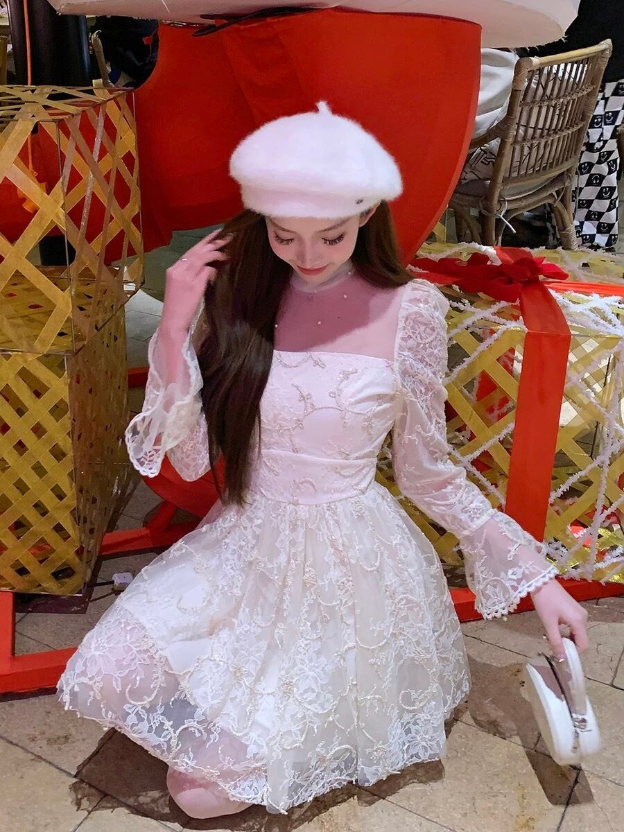 レース ワンピース 白 お嬢様 ガーリー ホワイト 花柄 フラワー