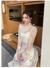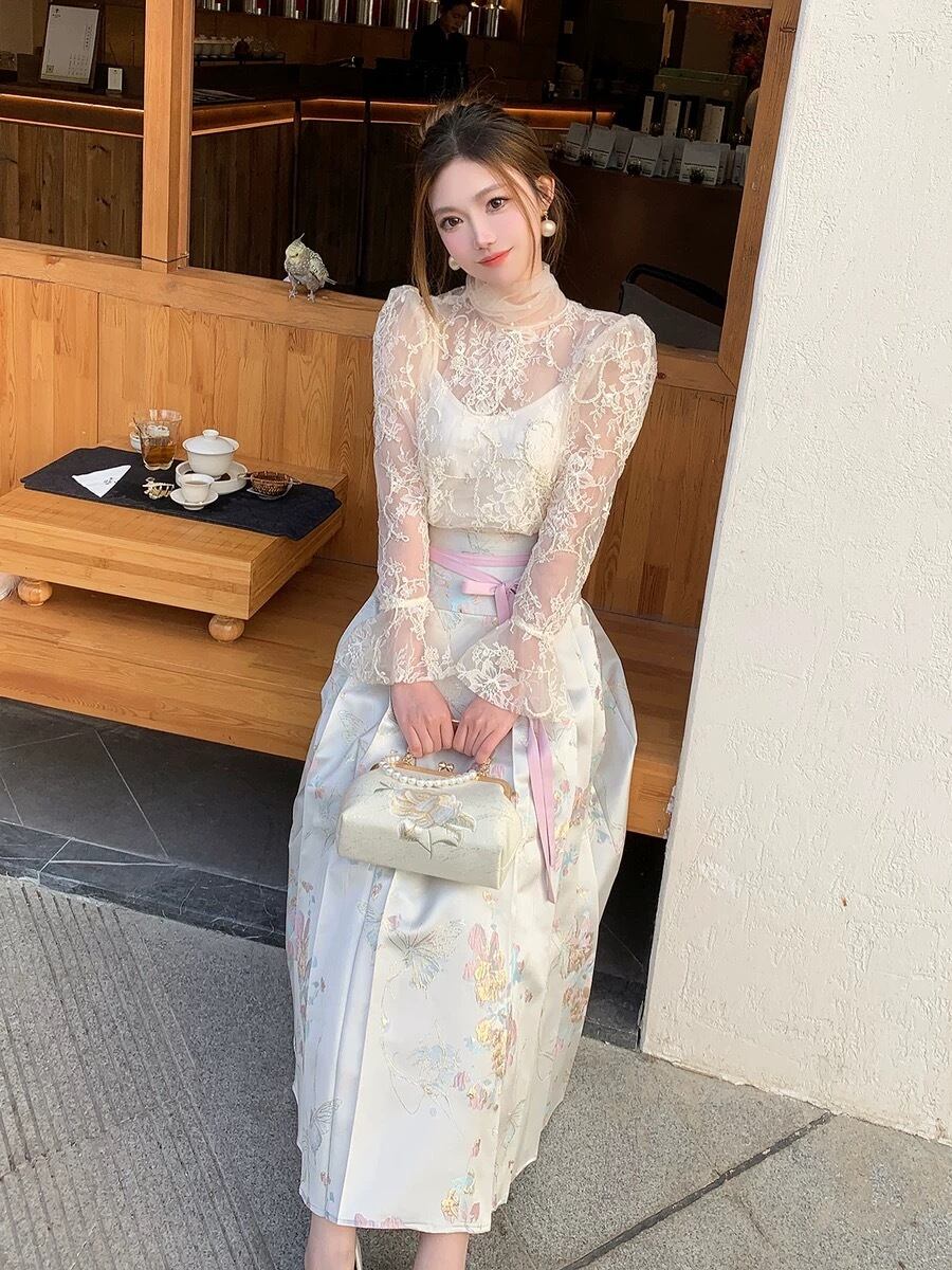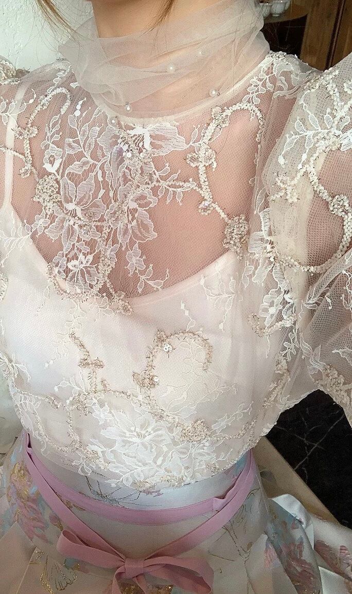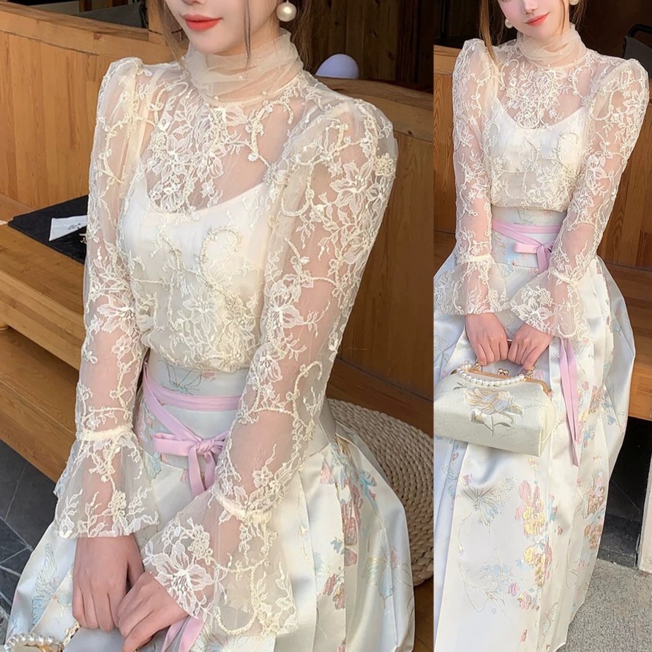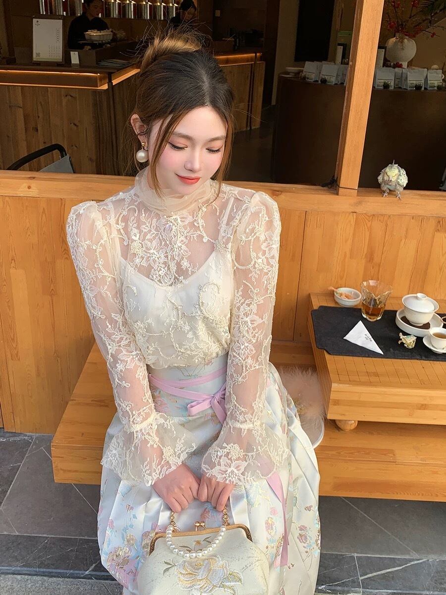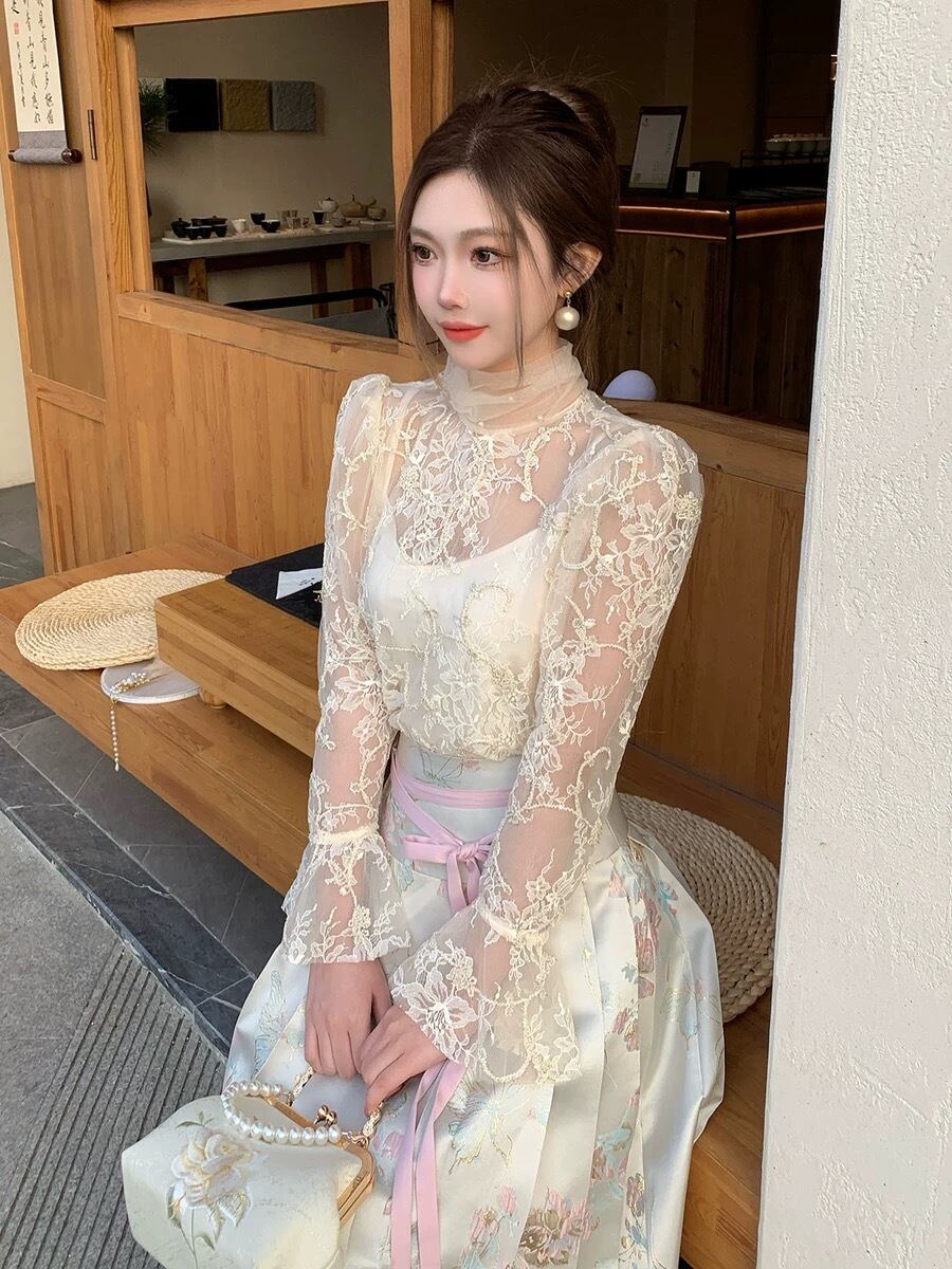 ブラウス 花柄 レース フラワー 刺繍 ベージュ トップス