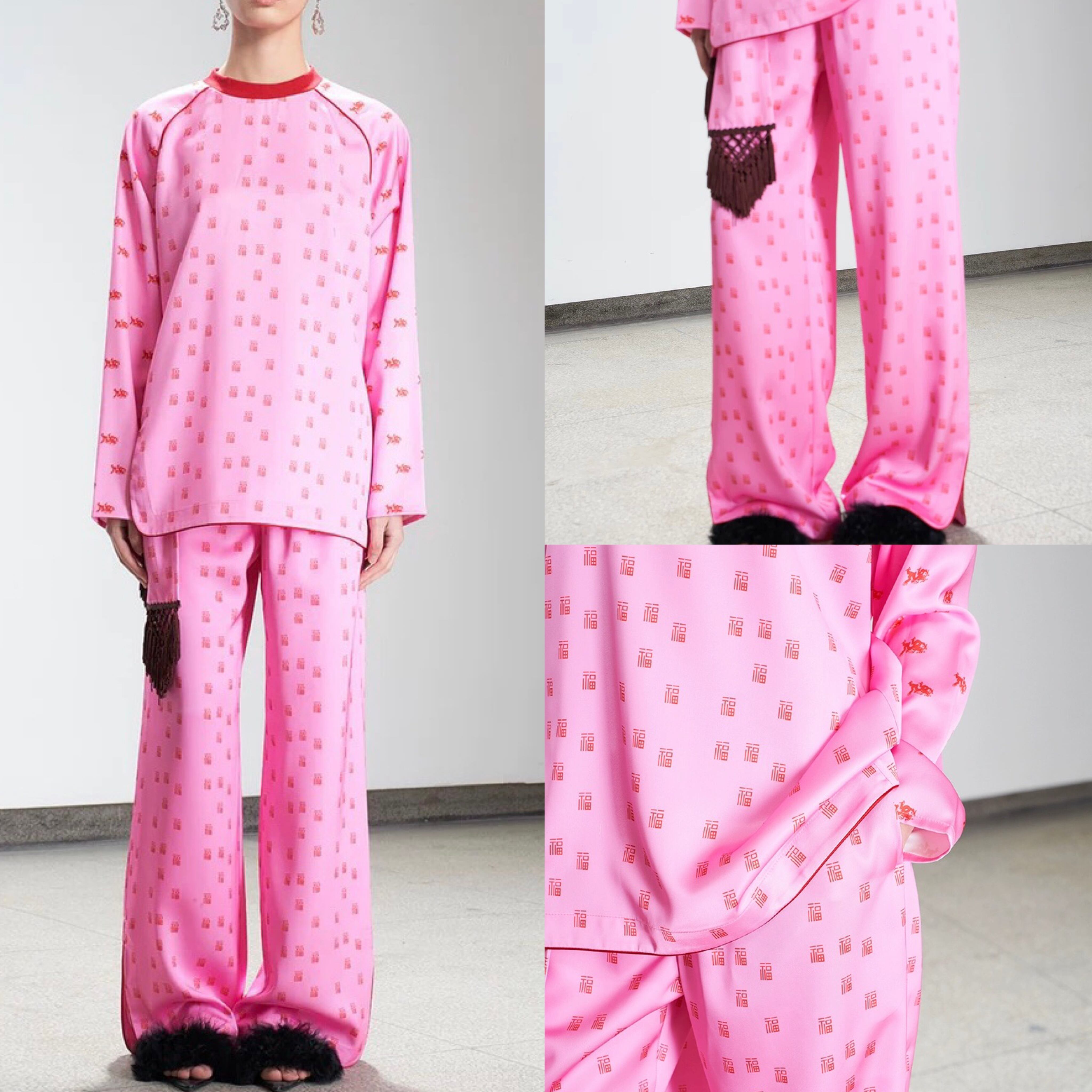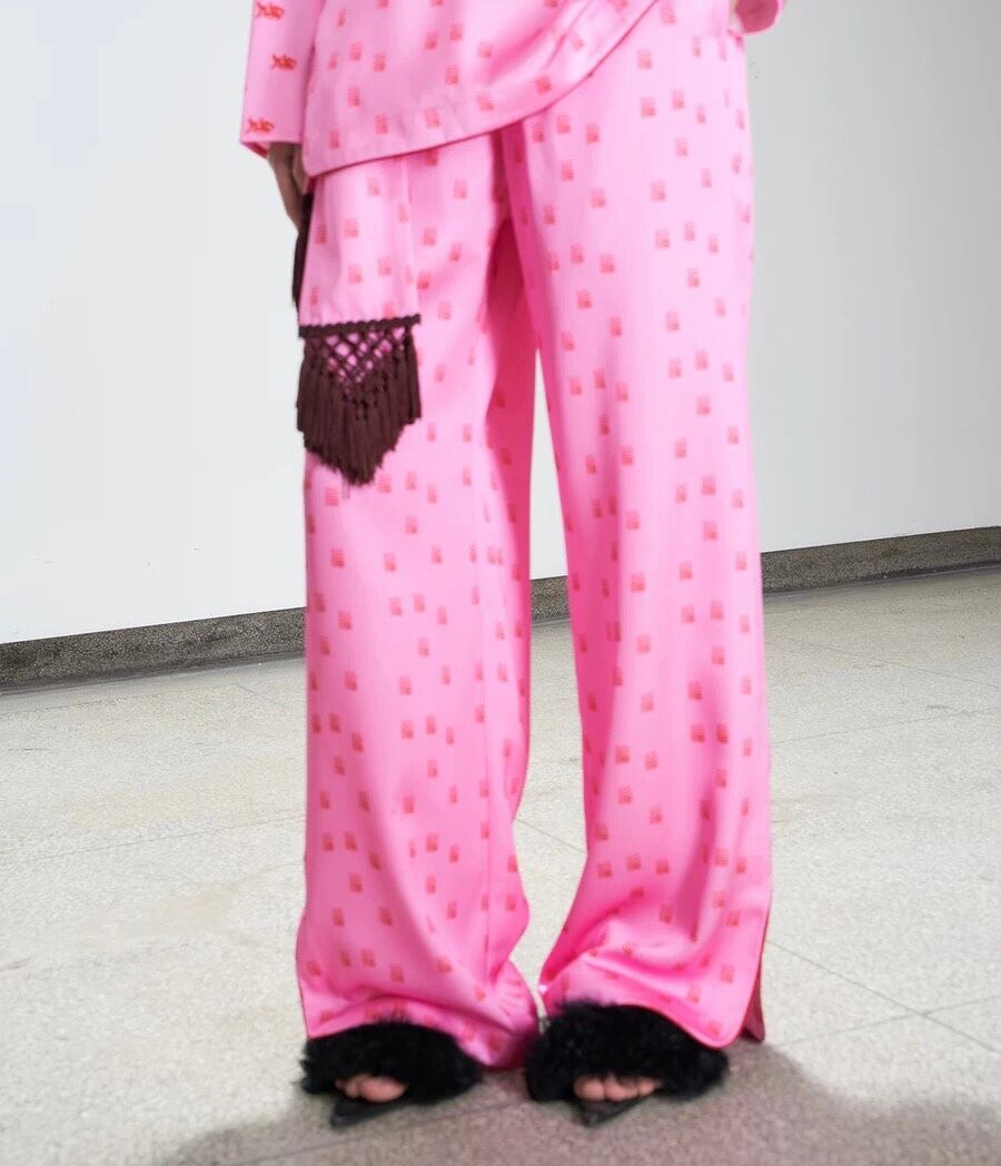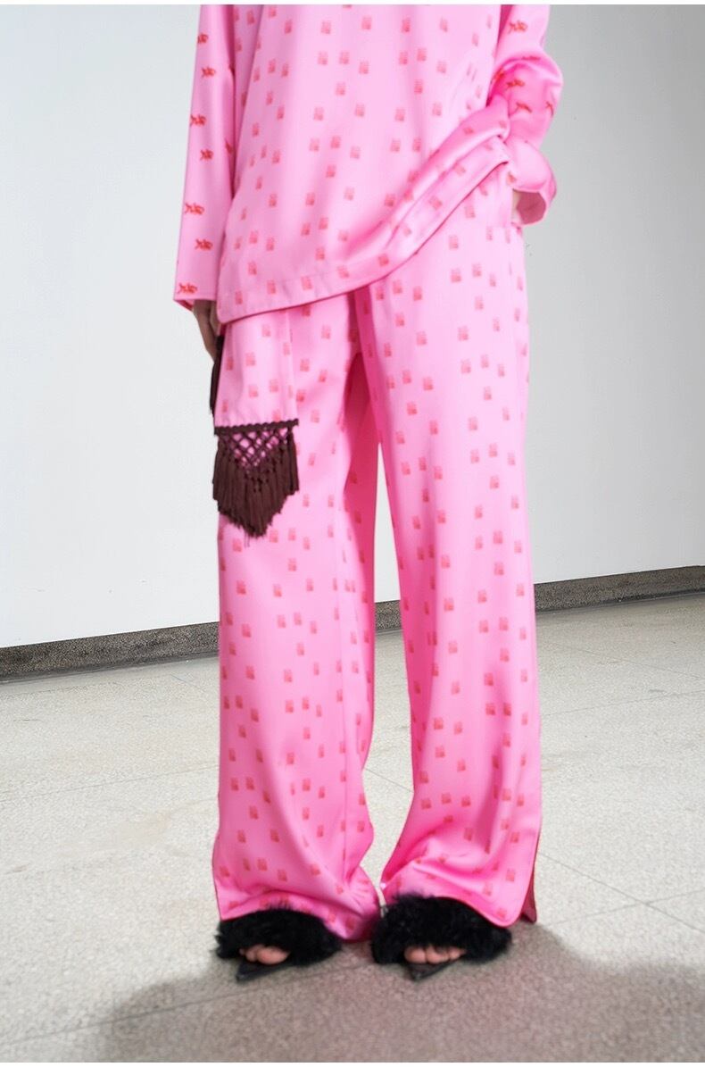 パンツ ボトムス ピンク カジュアル ズボン 福 ドット