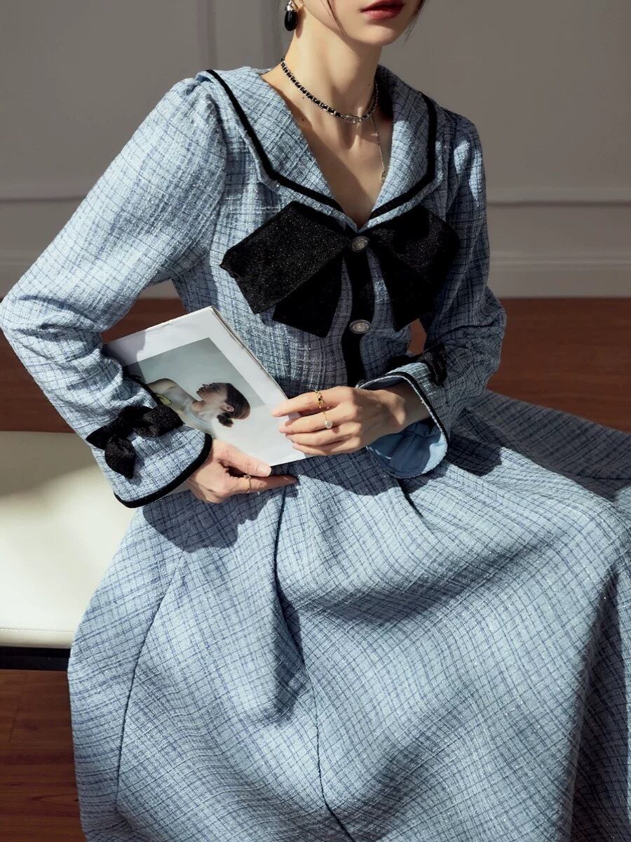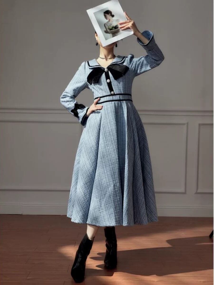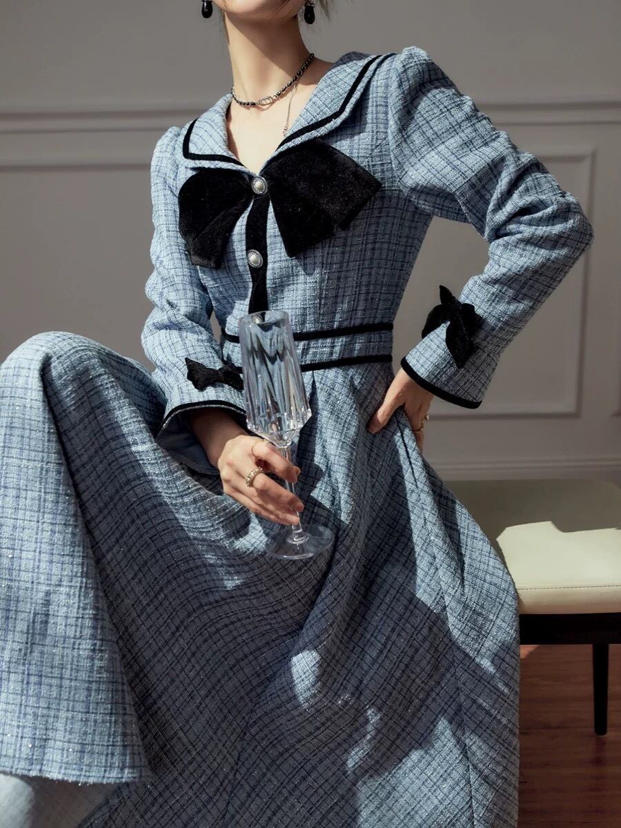 水色 ワンピース ガーリー リボン マキシ お嬢様