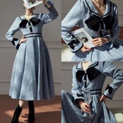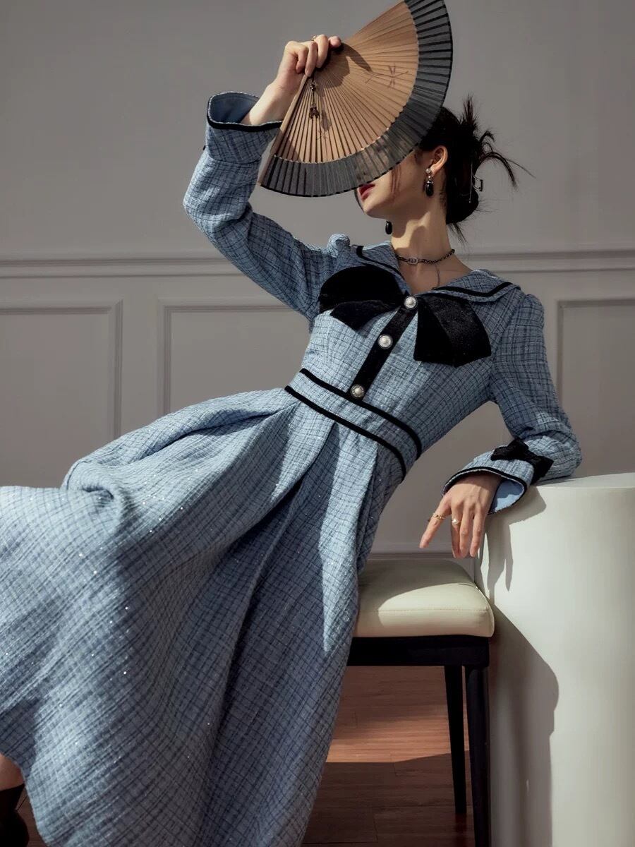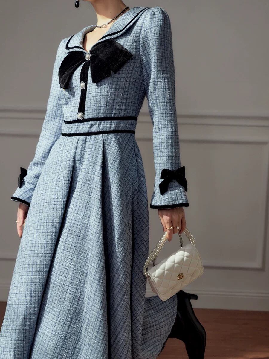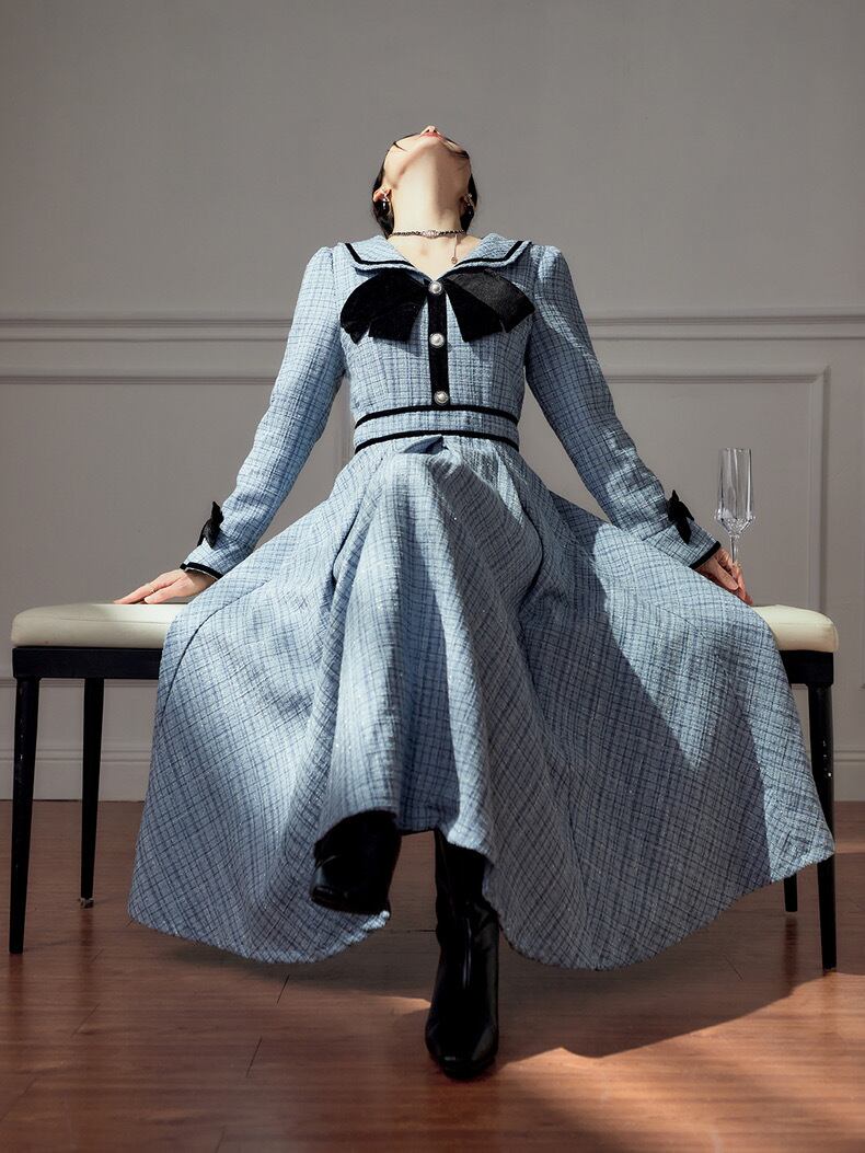 水色 ワンピース ガーリー リボン マキシ お嬢様