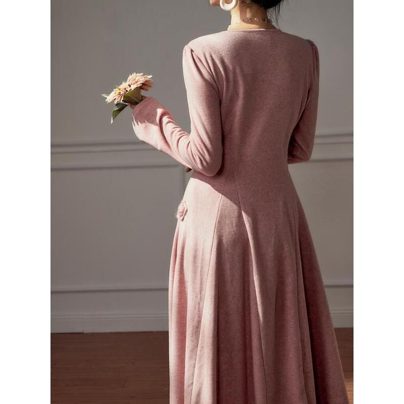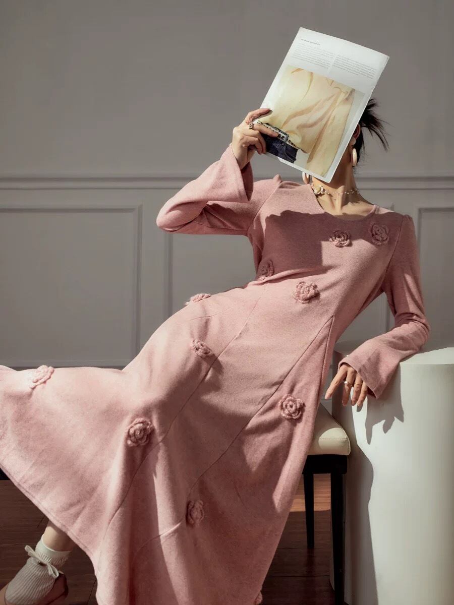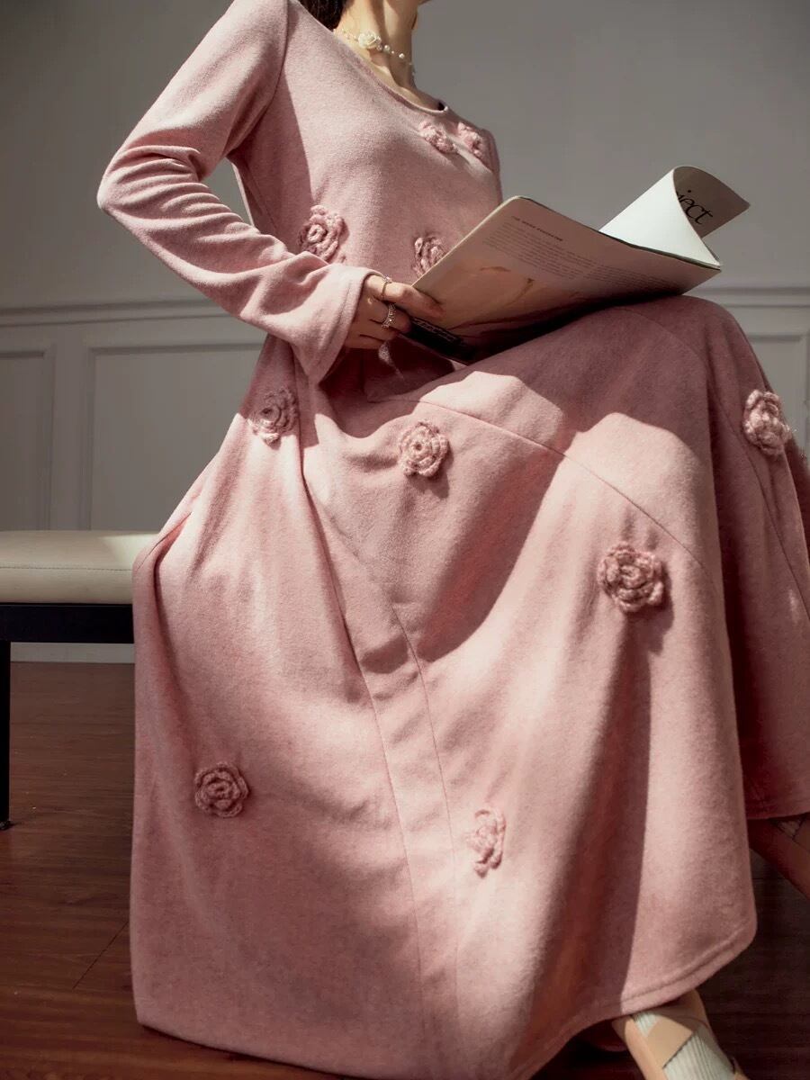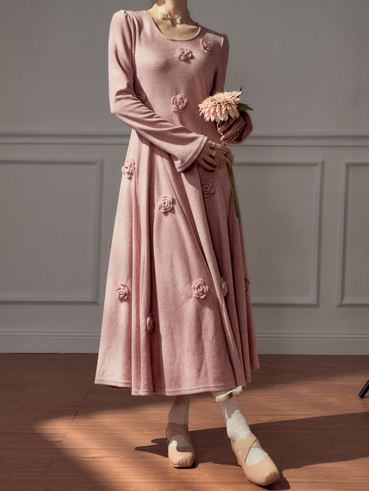 ワンピース ピンク マキシ カメリア デコレーション 薔薇 フラワー