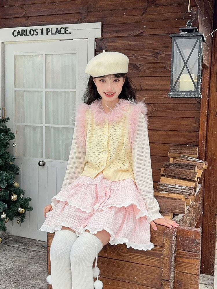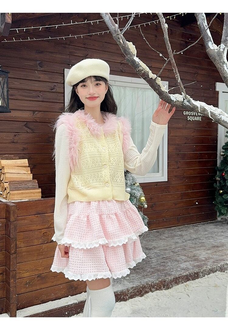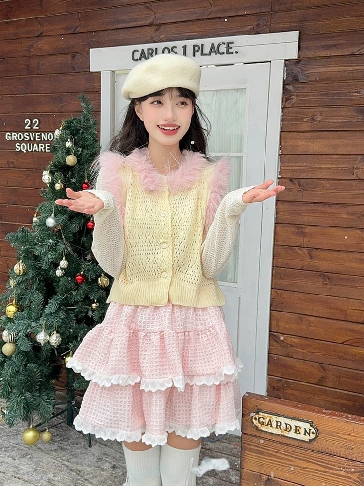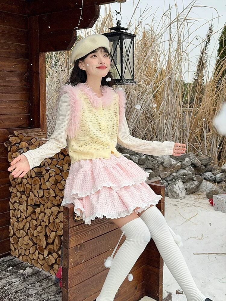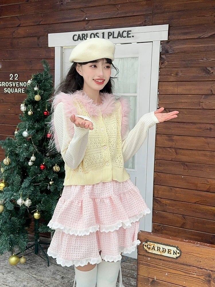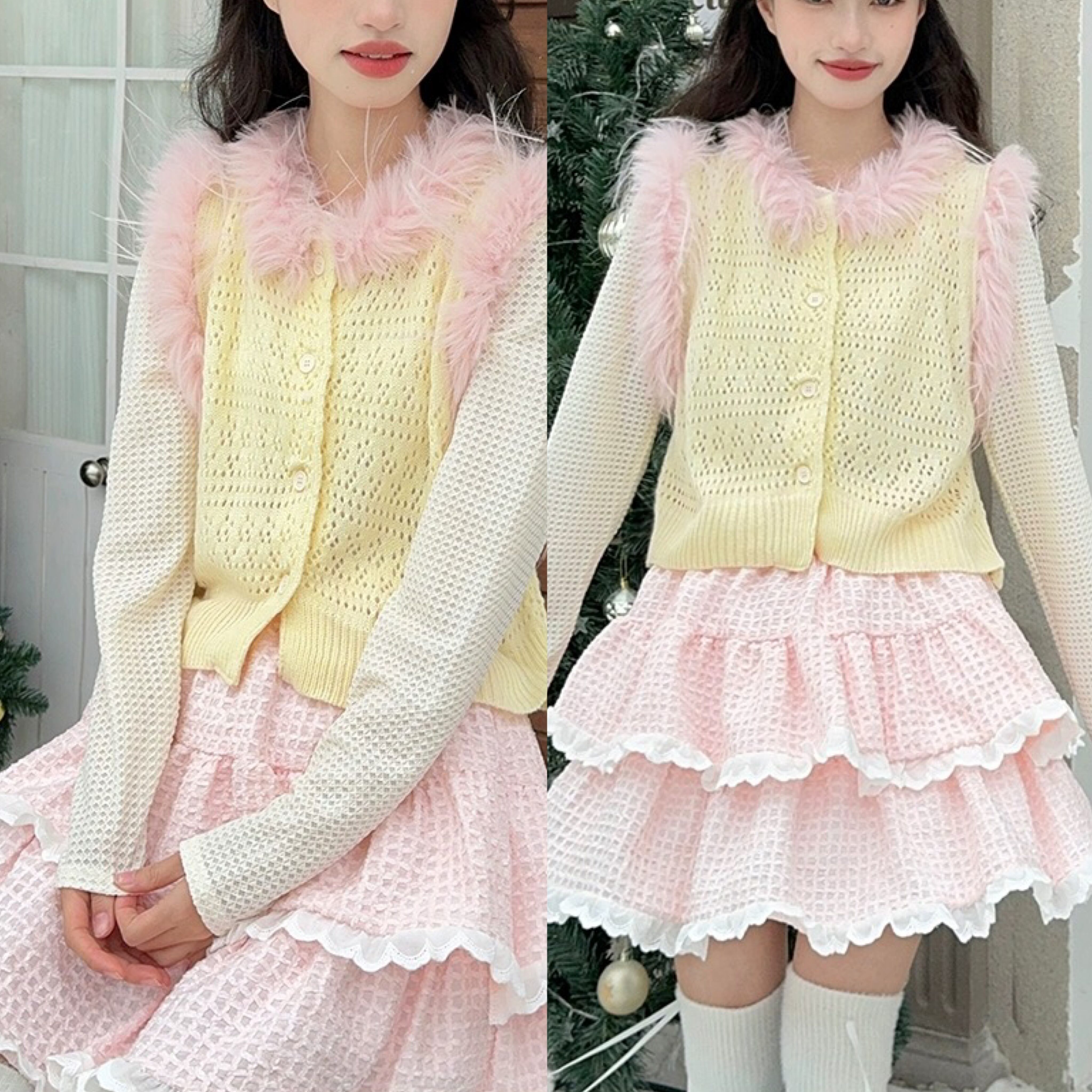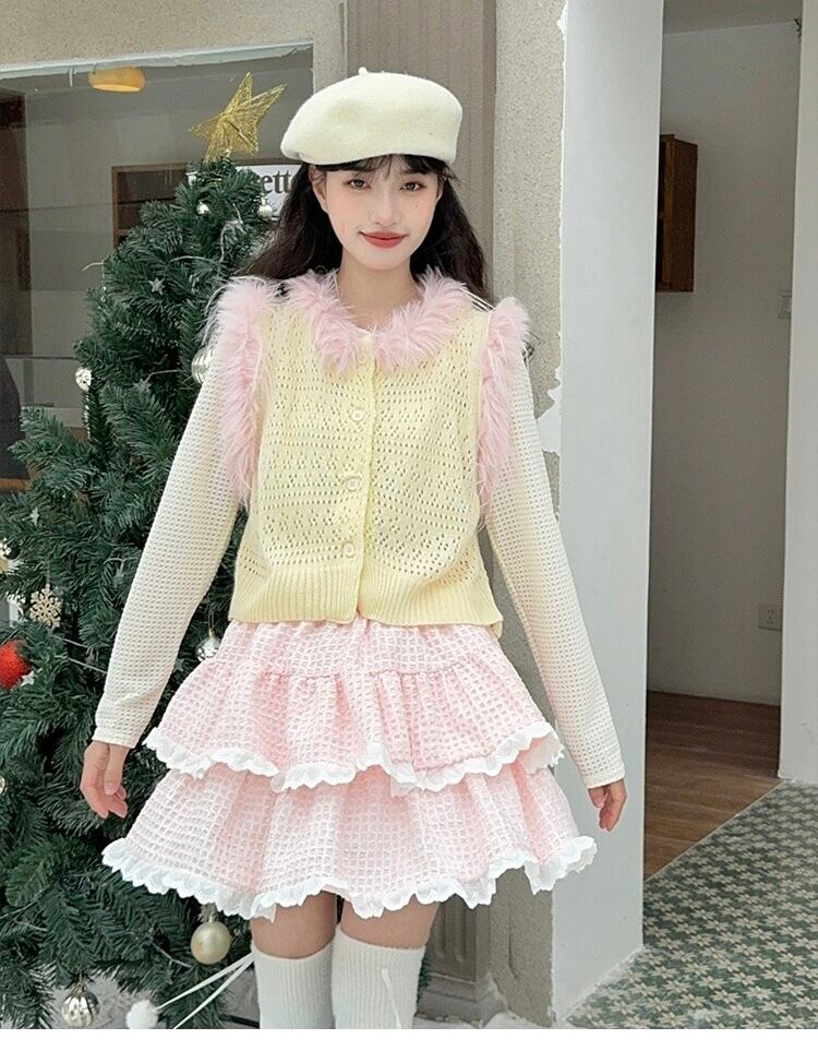トップス ブラウス カーディガン ピンク 黄色 ミニスカート
