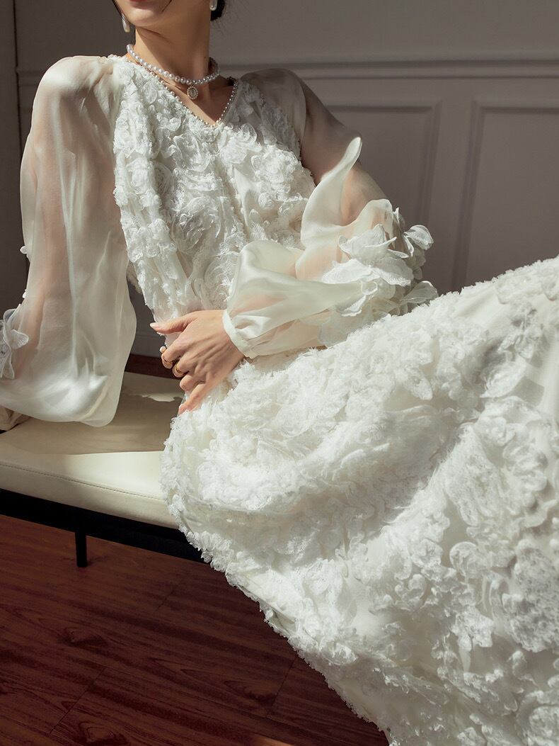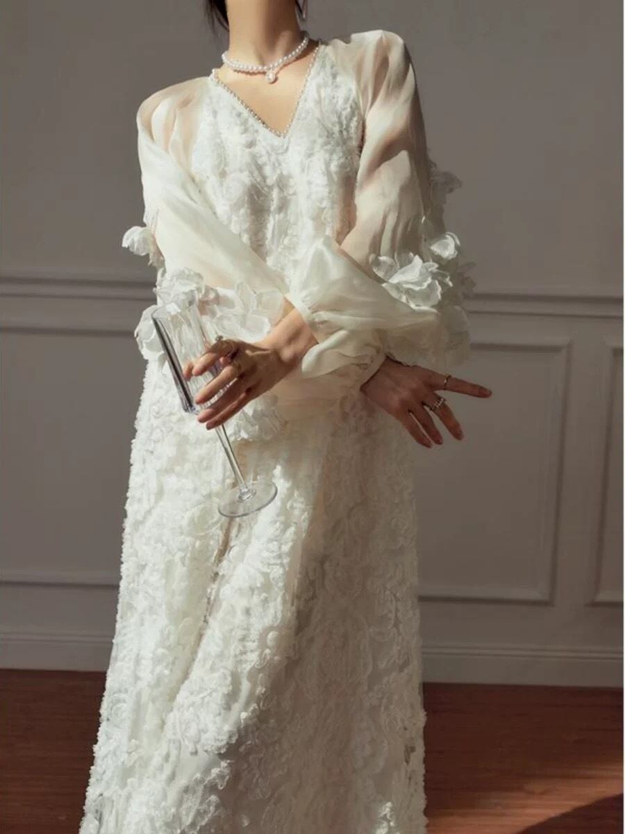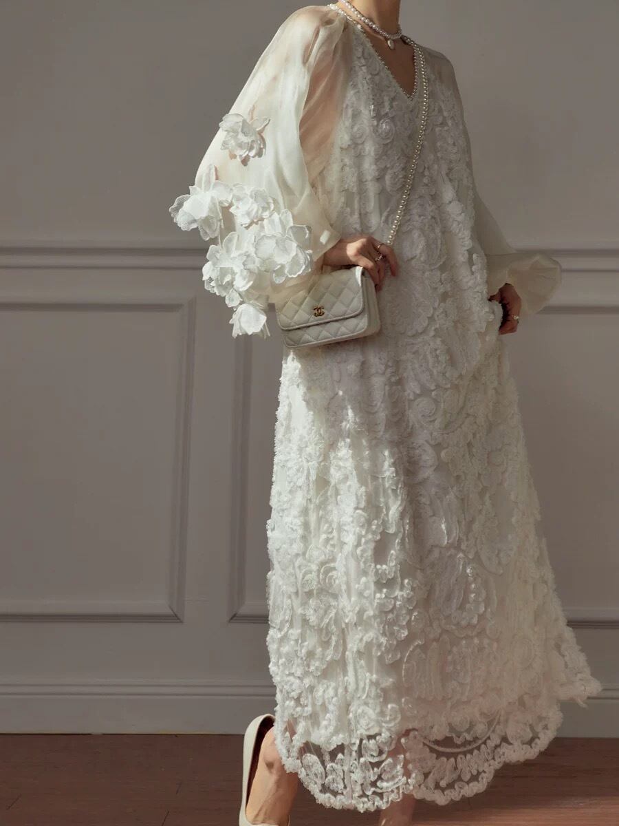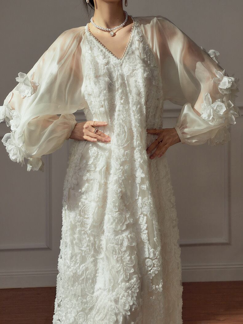 白 ホワイト ワンピース 花柄 フラワー ブラウス ドレス マキシ