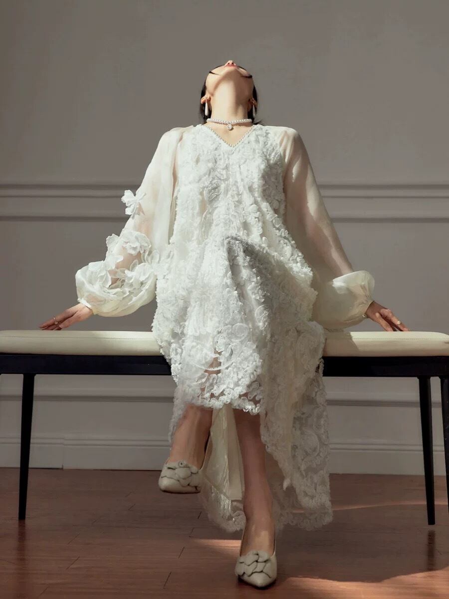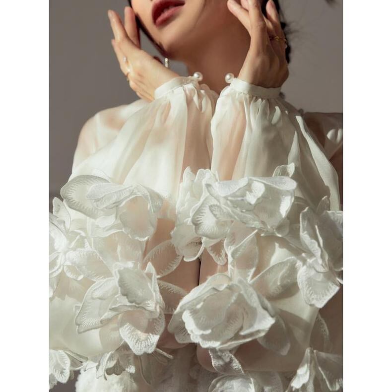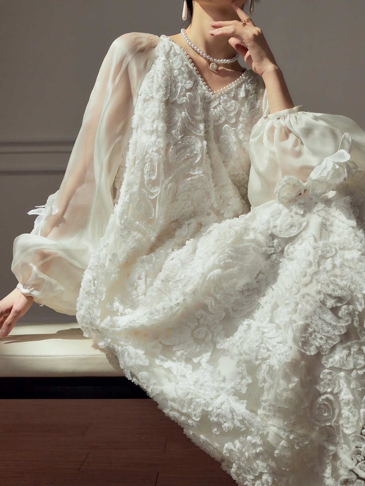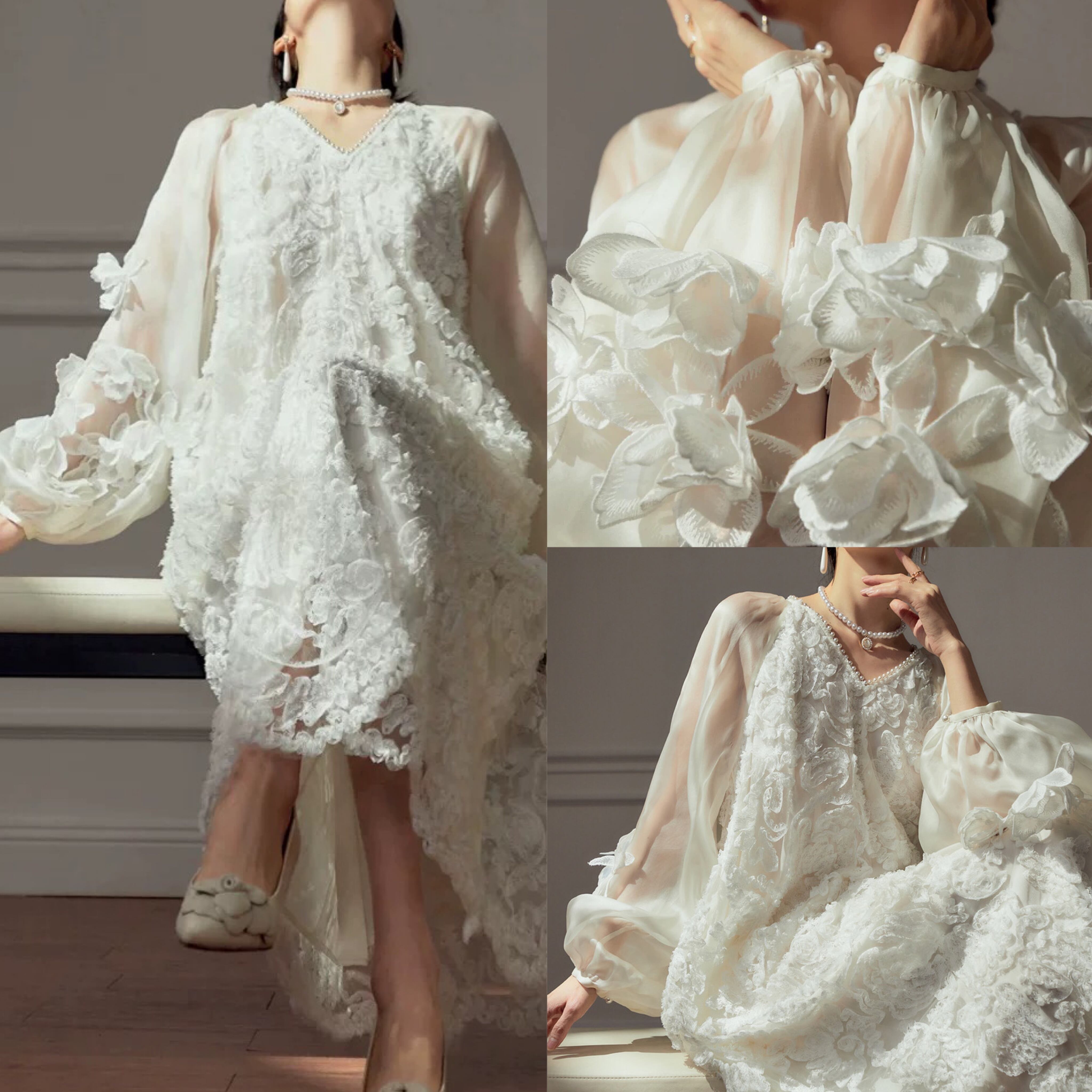 白 ホワイト ワンピース 花柄 フラワー ブラウス ドレス マキシ