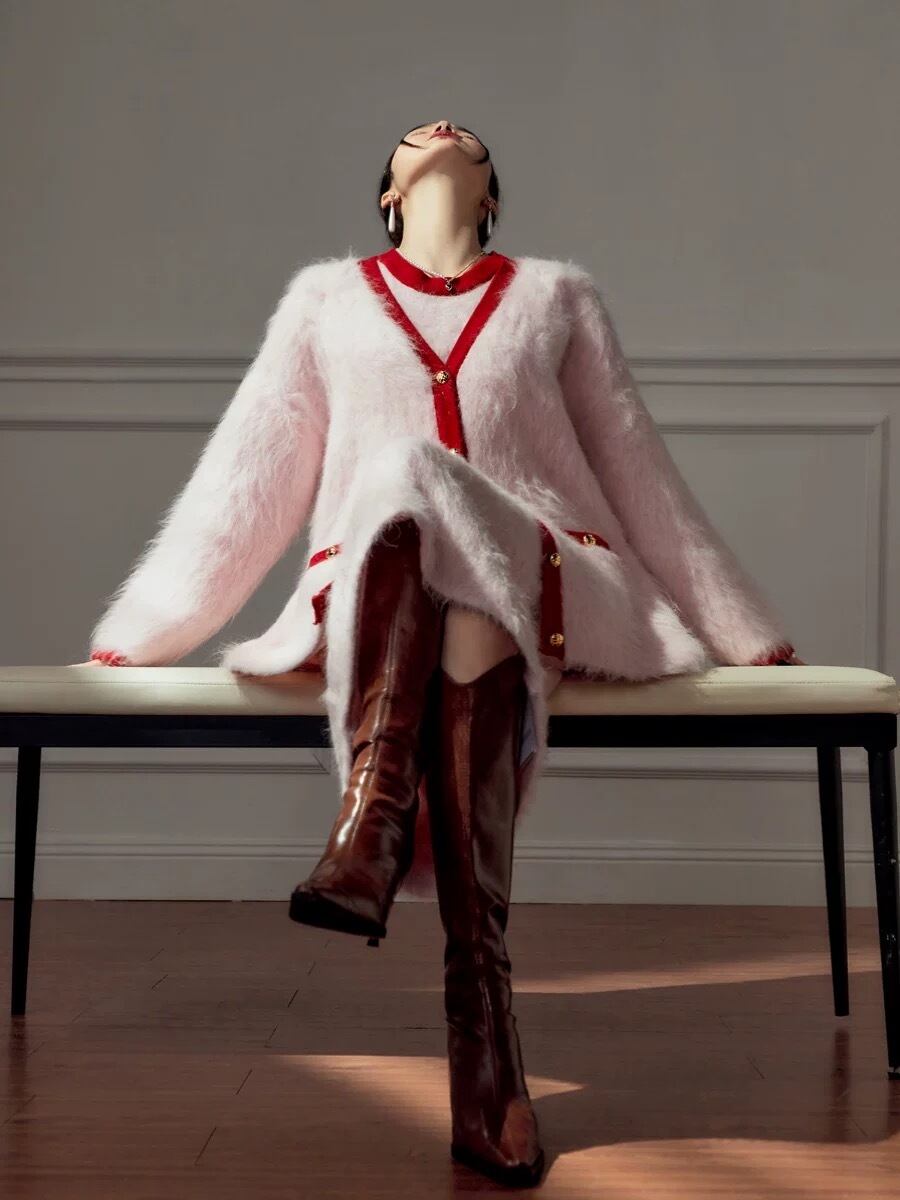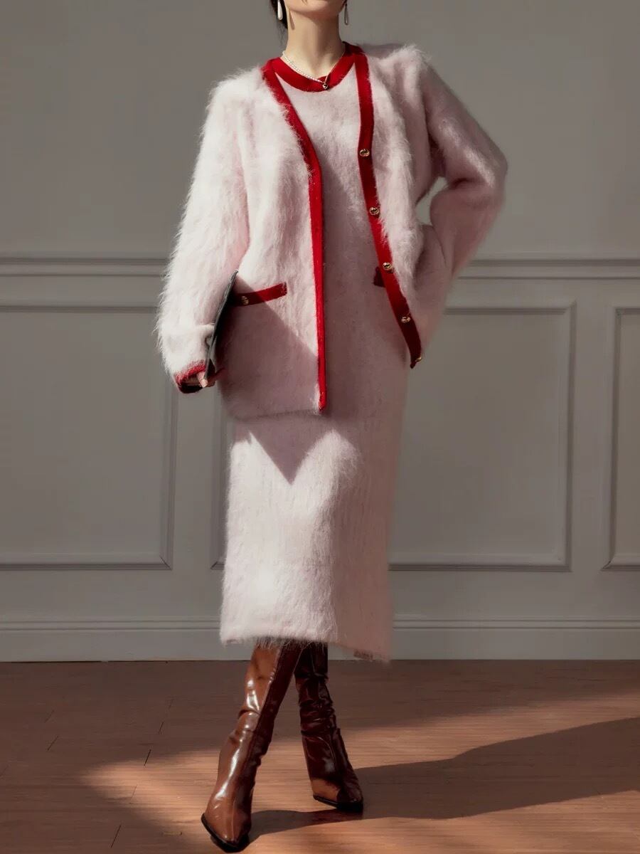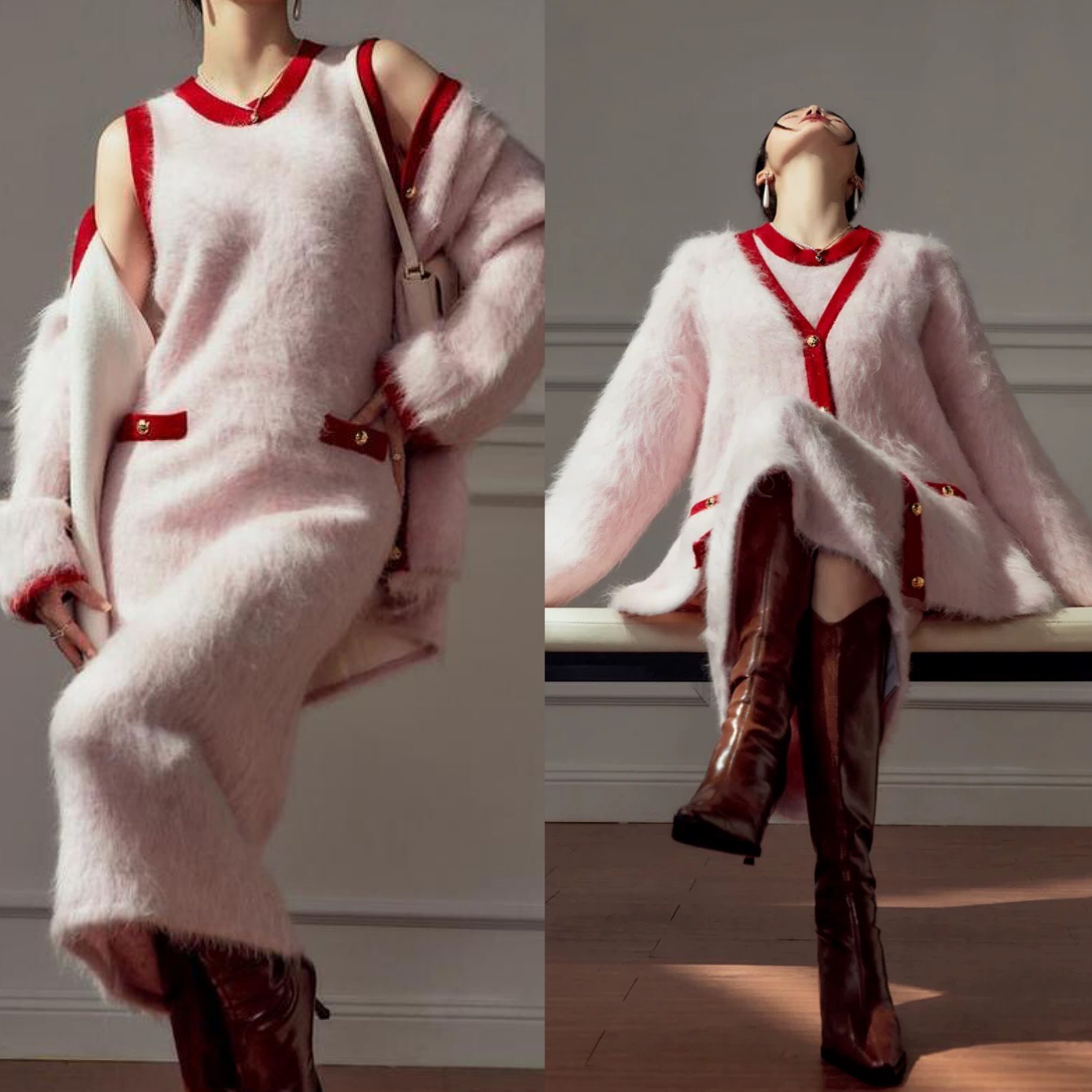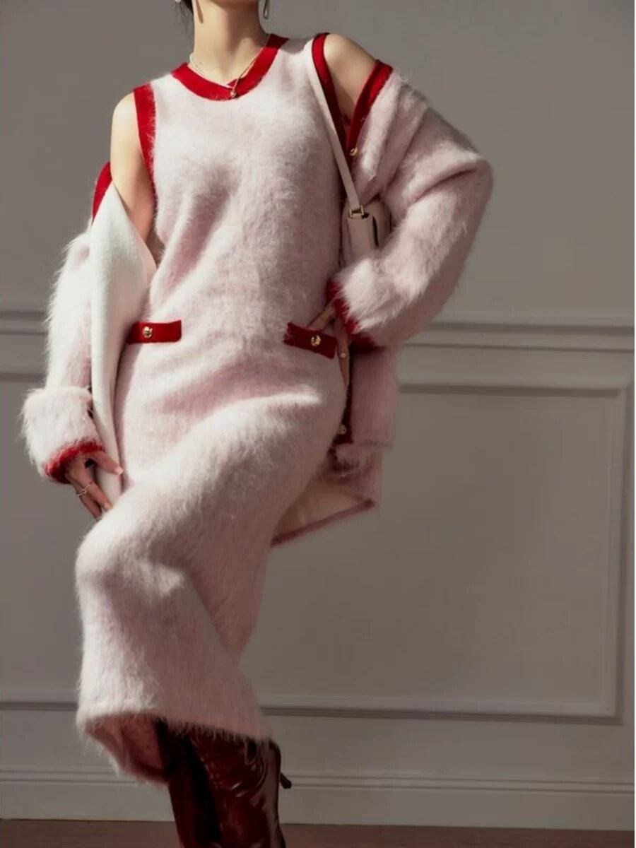 【ワンピース】ピンク 赤 ゆったり マキシ スカート セーター