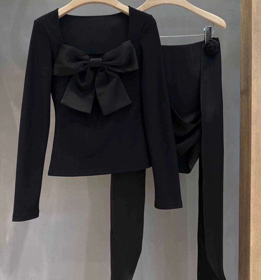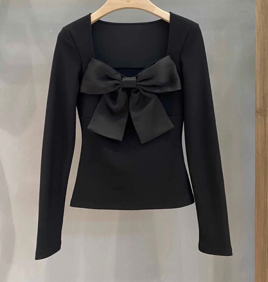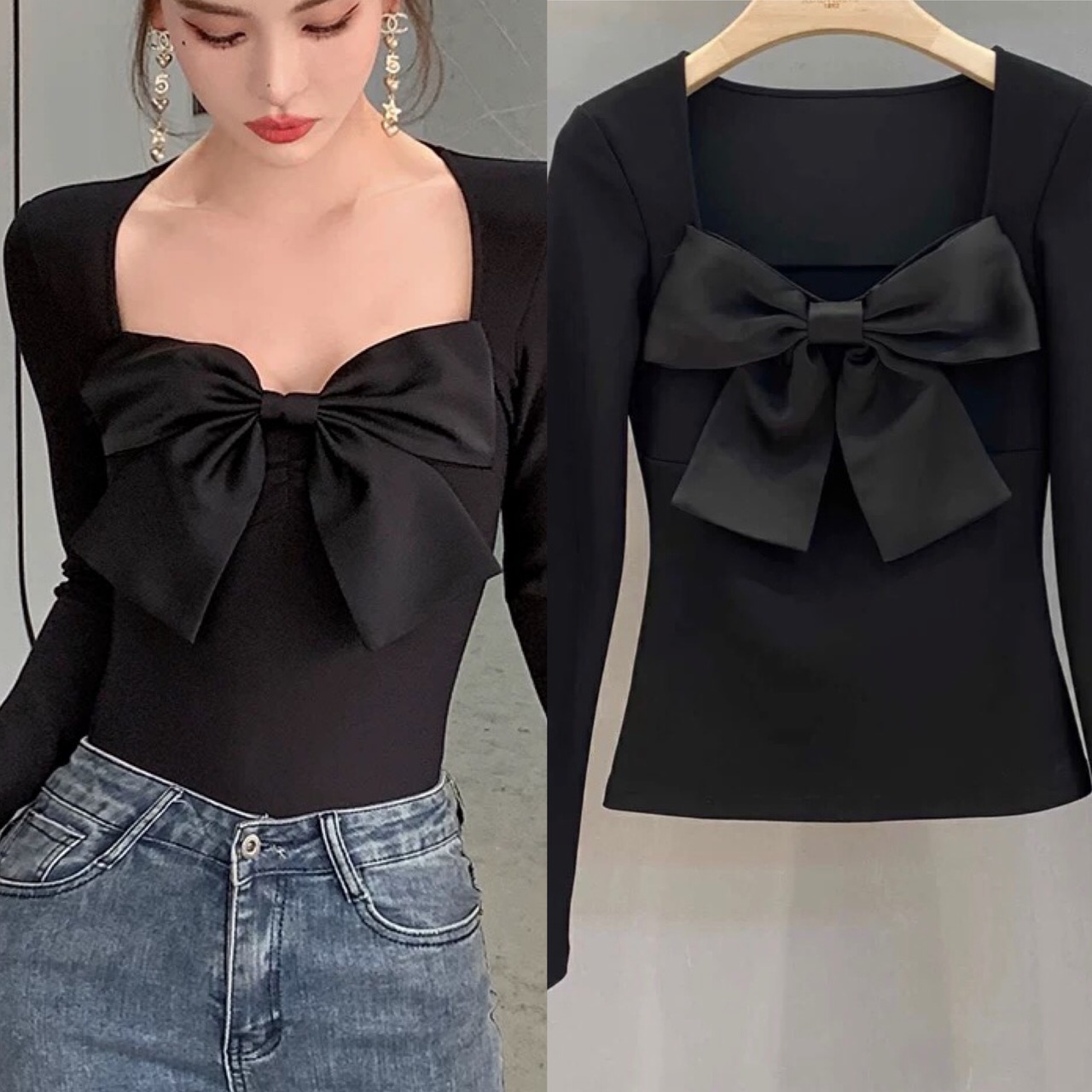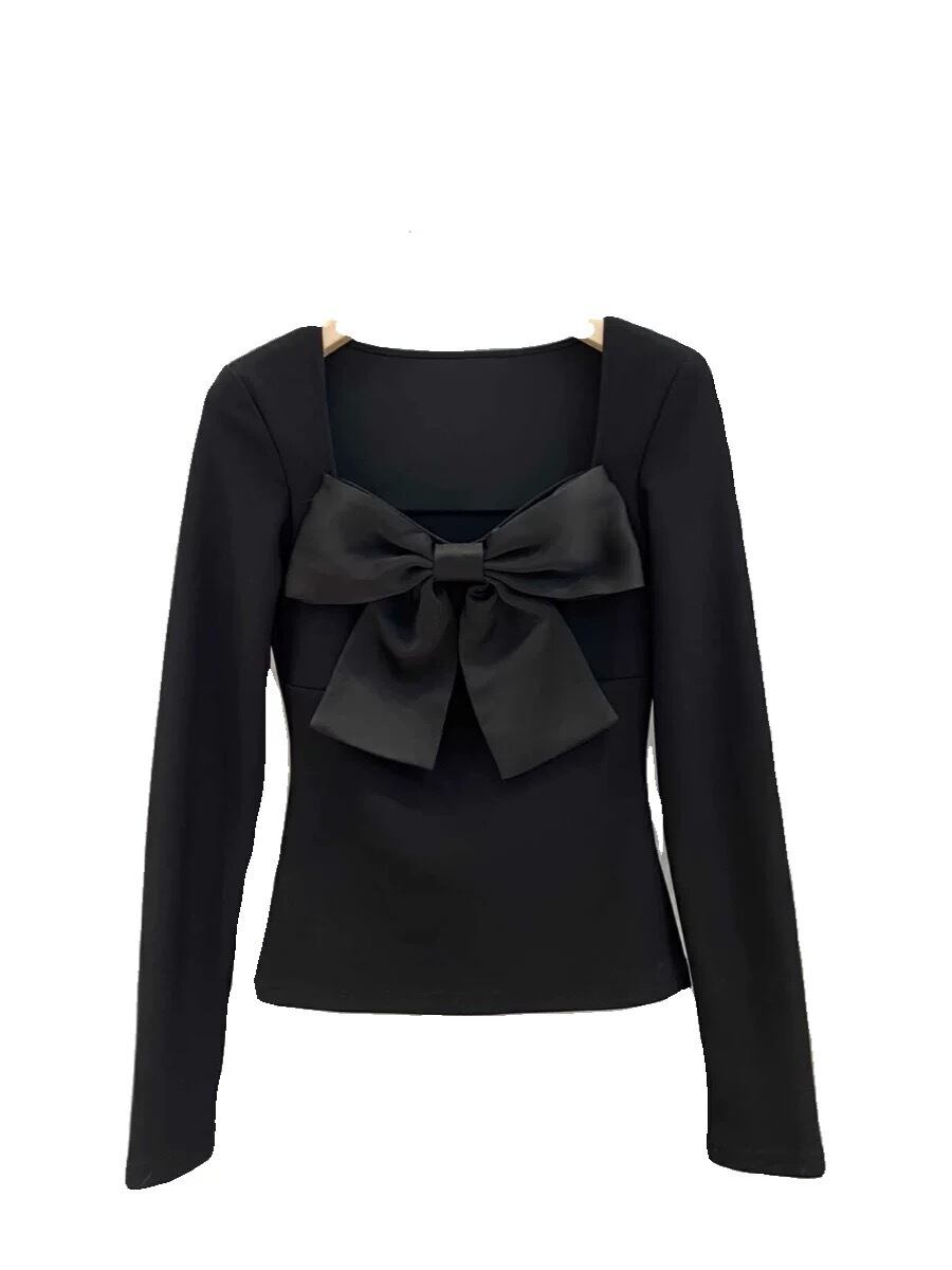 黒 リボン ブラウス トップス ガーリー カジュアル