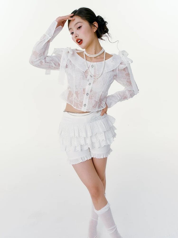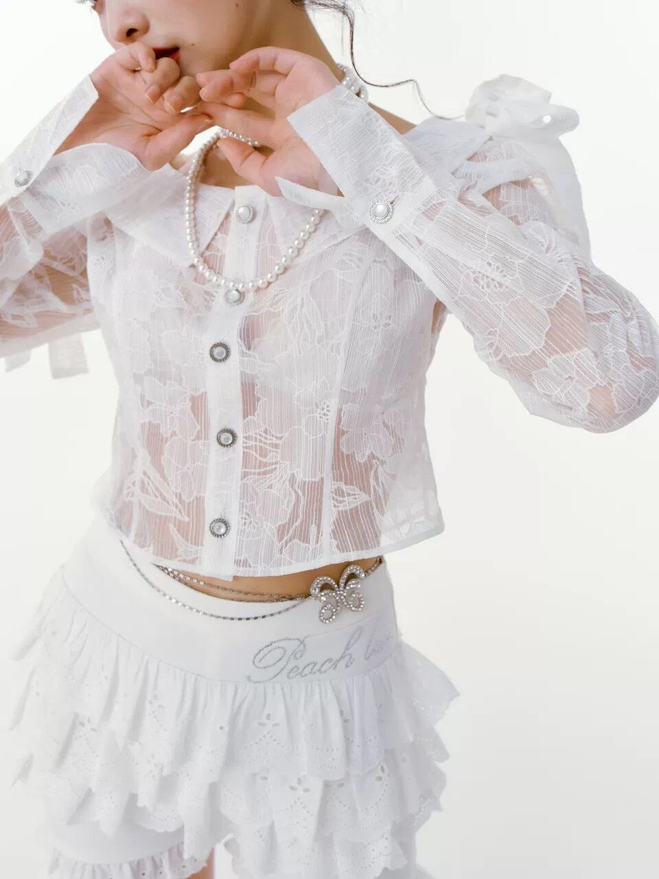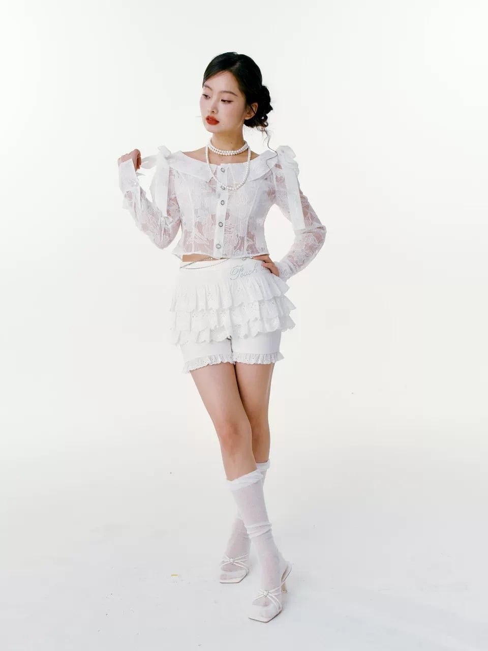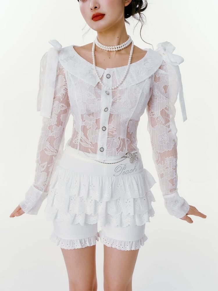 ブラウス 白 ホワイト リボン トップス 花柄 フラワー