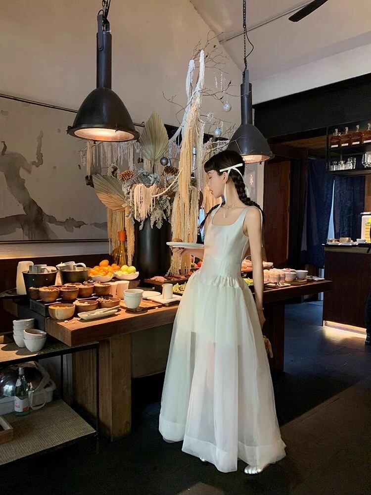 ワンピース ホワイト 白 マキシ エレガント スカート
