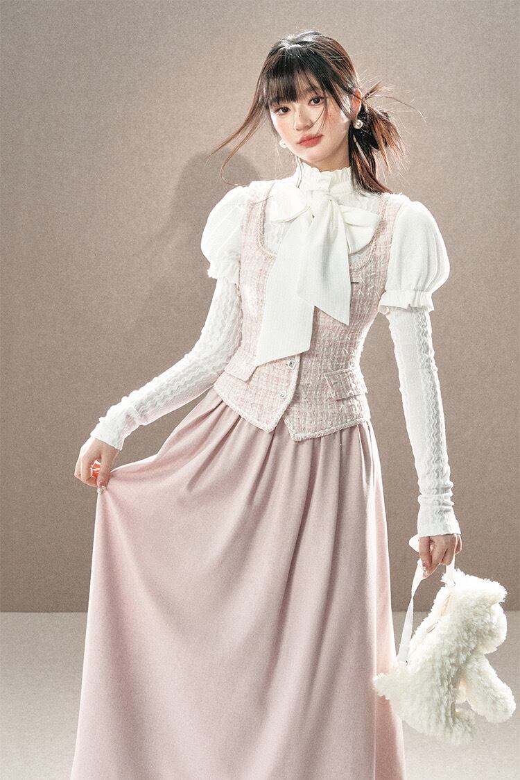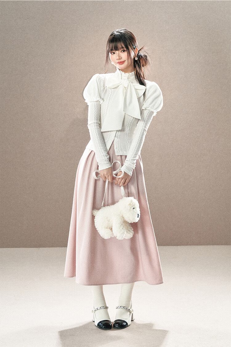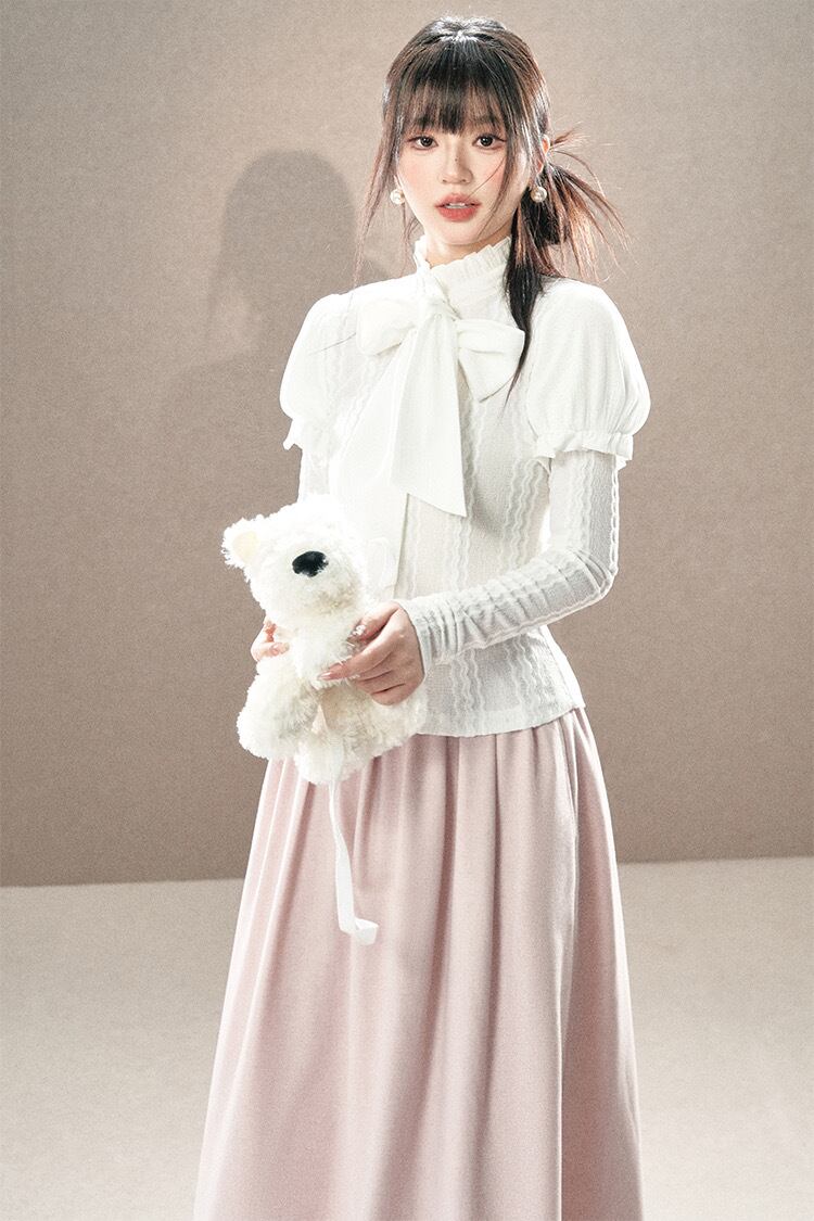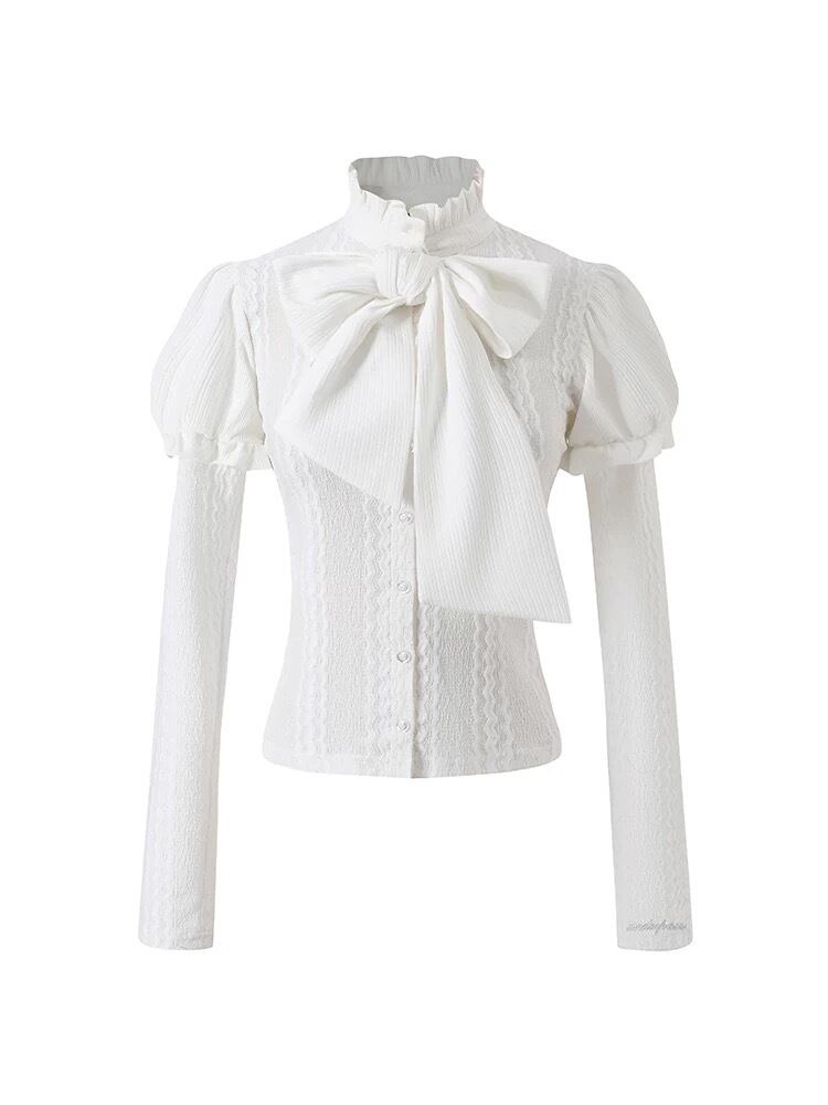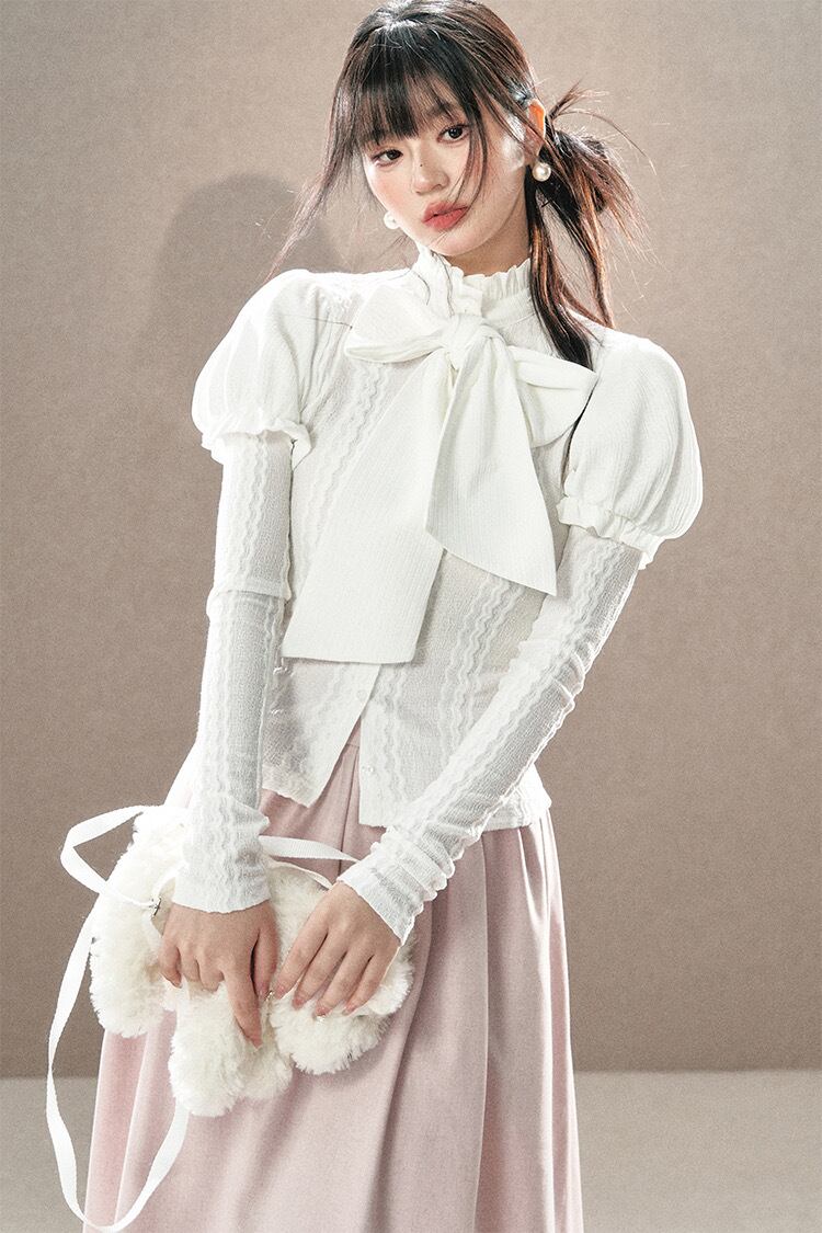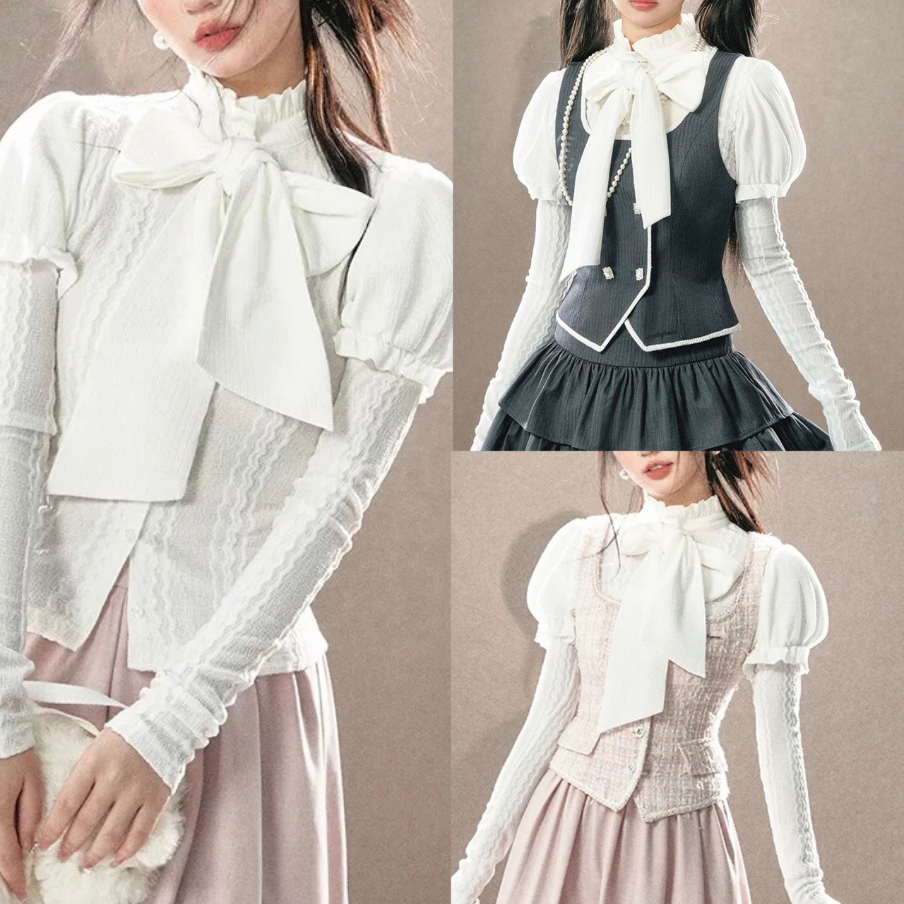 白 リボン ホワイト ガーリー お嬢様 ブラウス トップス カーディガン