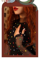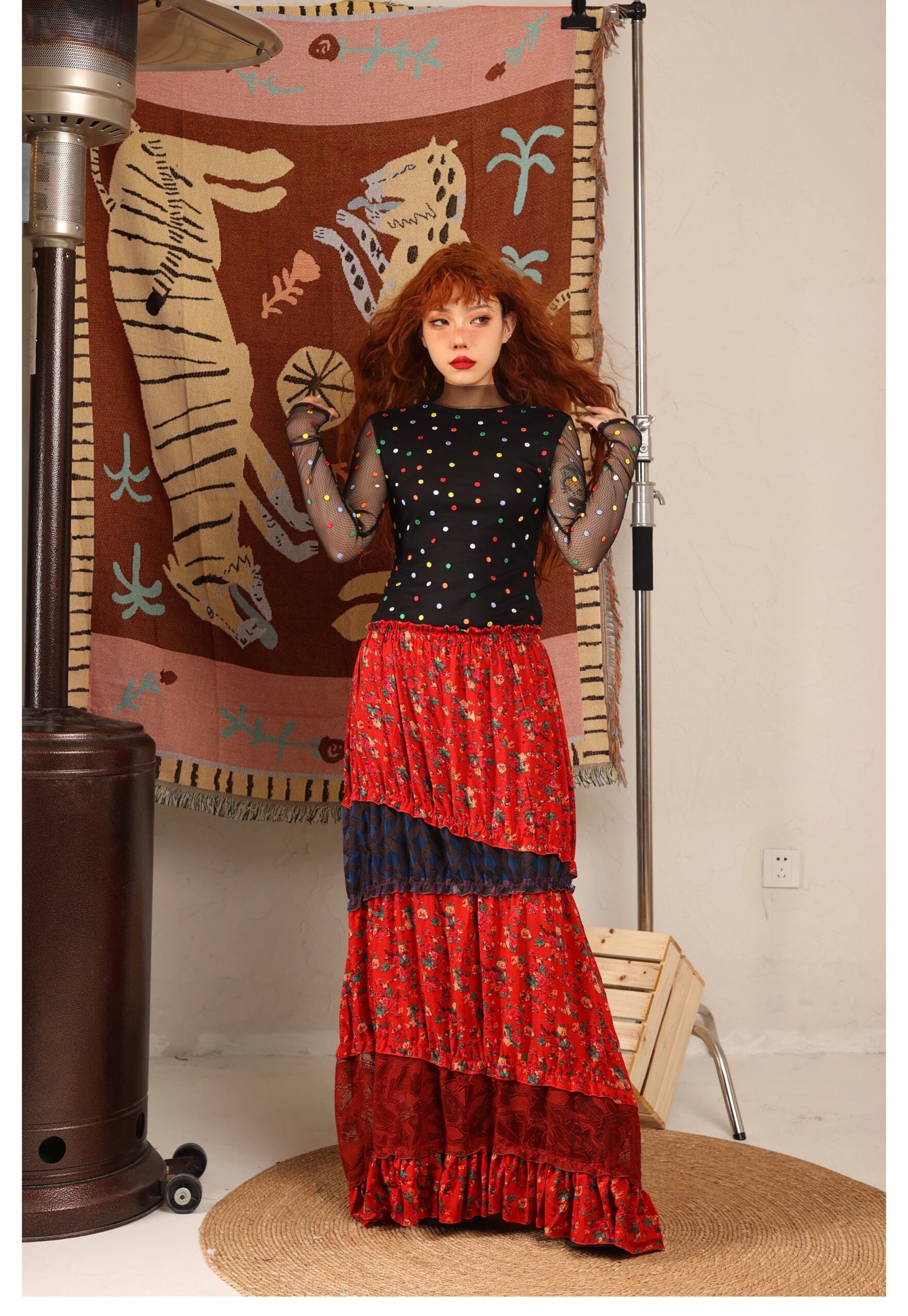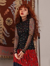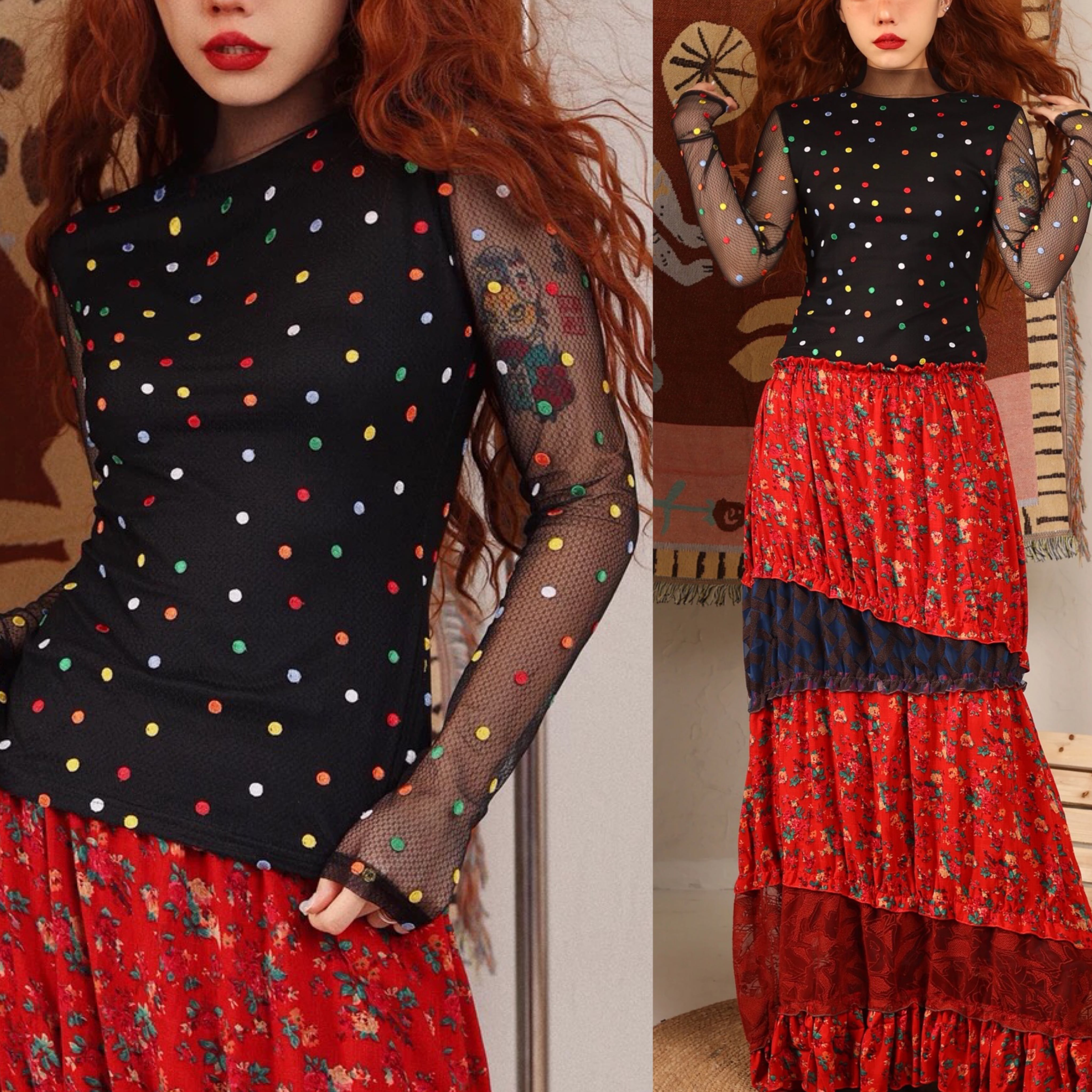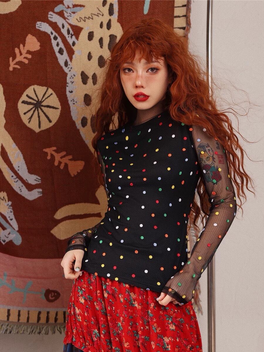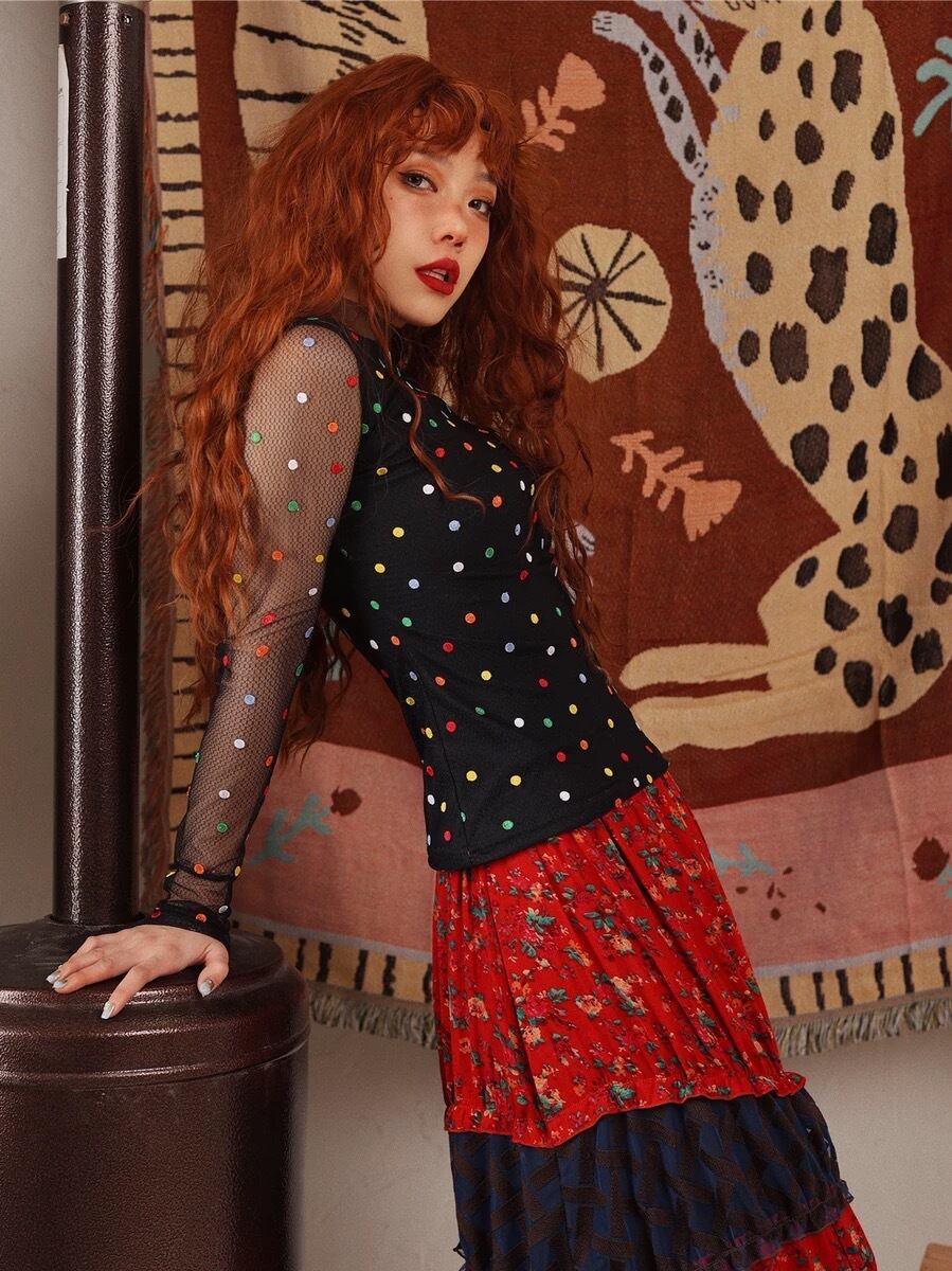 水玉 ドット ブラウス カラフル XL トップス シャツ 黒 シースルー