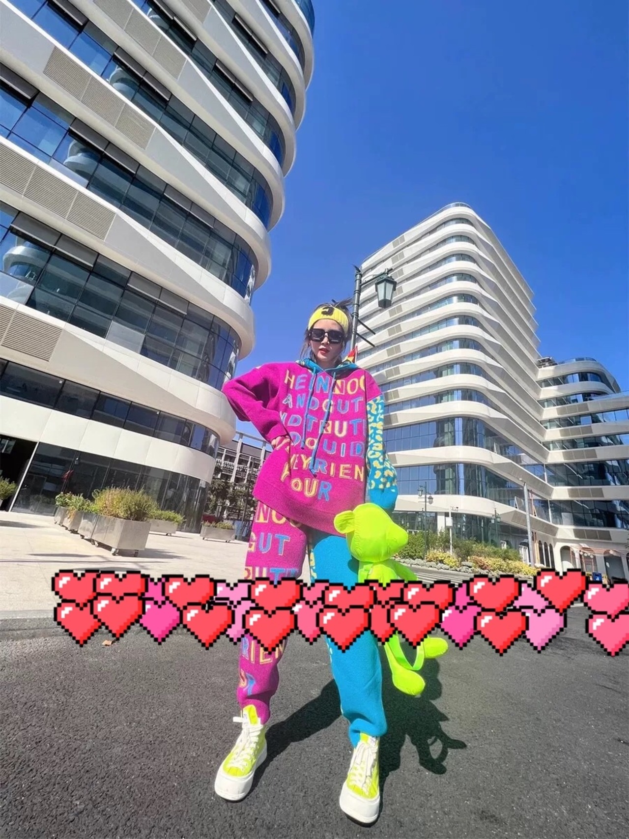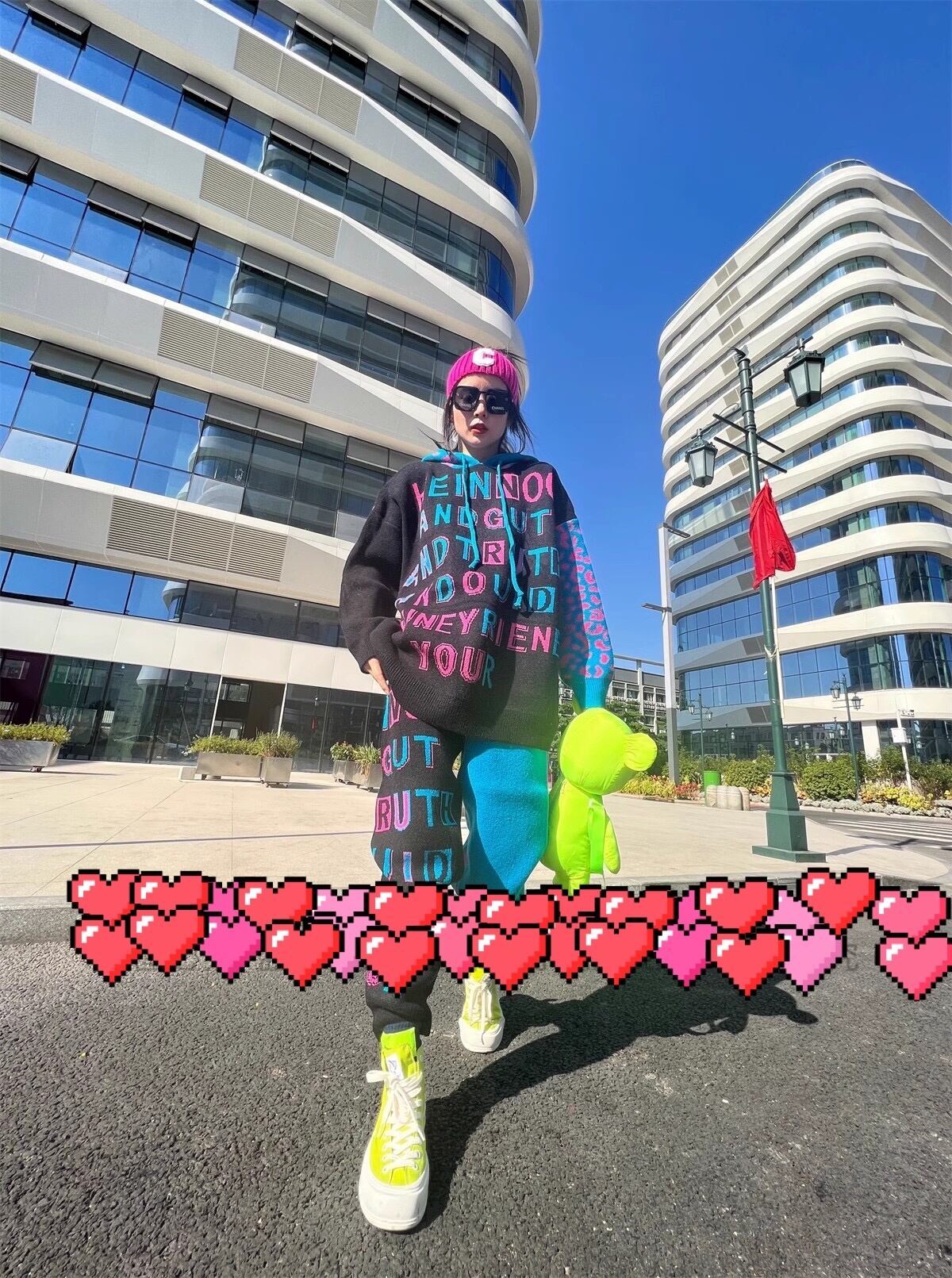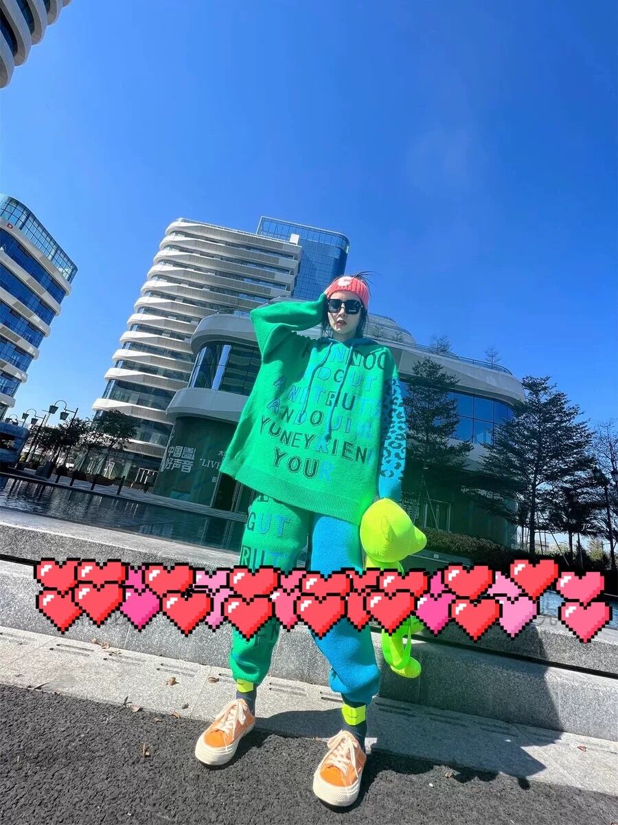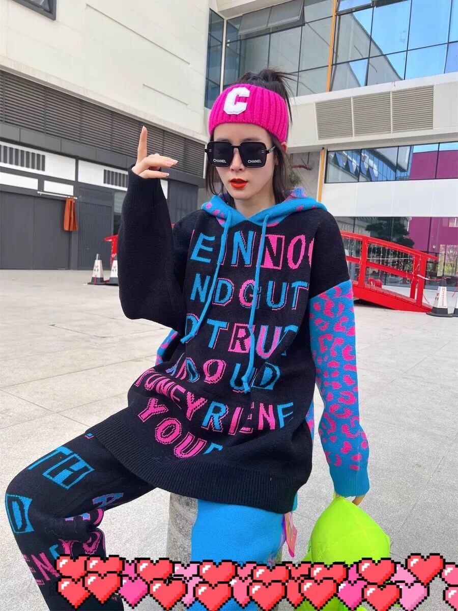 【セットアップ】ヒョウ柄 レオパード セーター トレーナー カジュアル パンツ 水色 緑 ピンク 紫 黒 パーカー スウェット