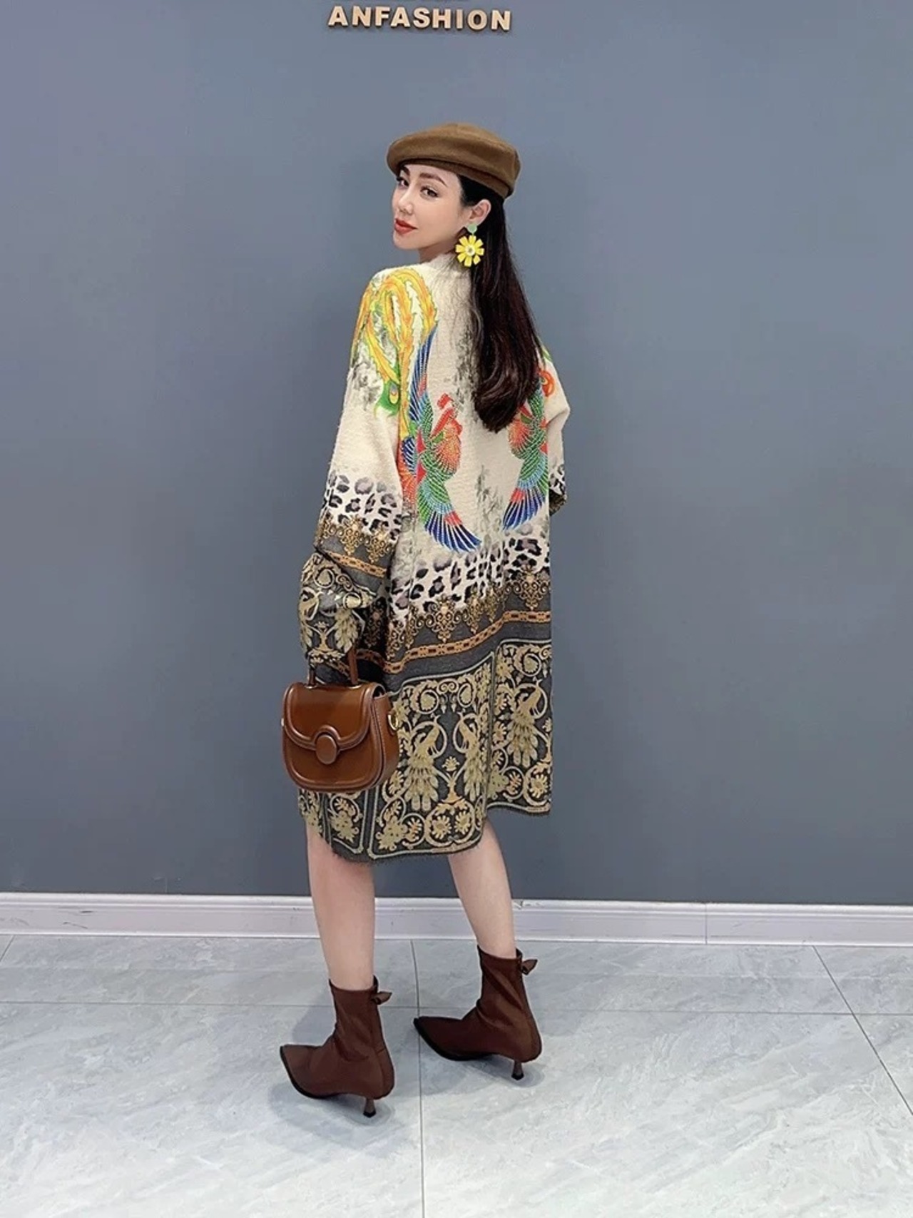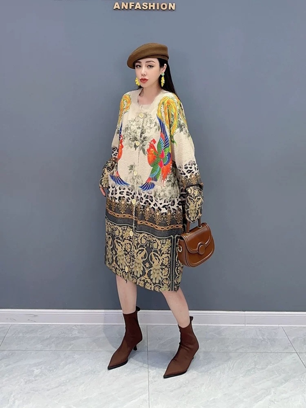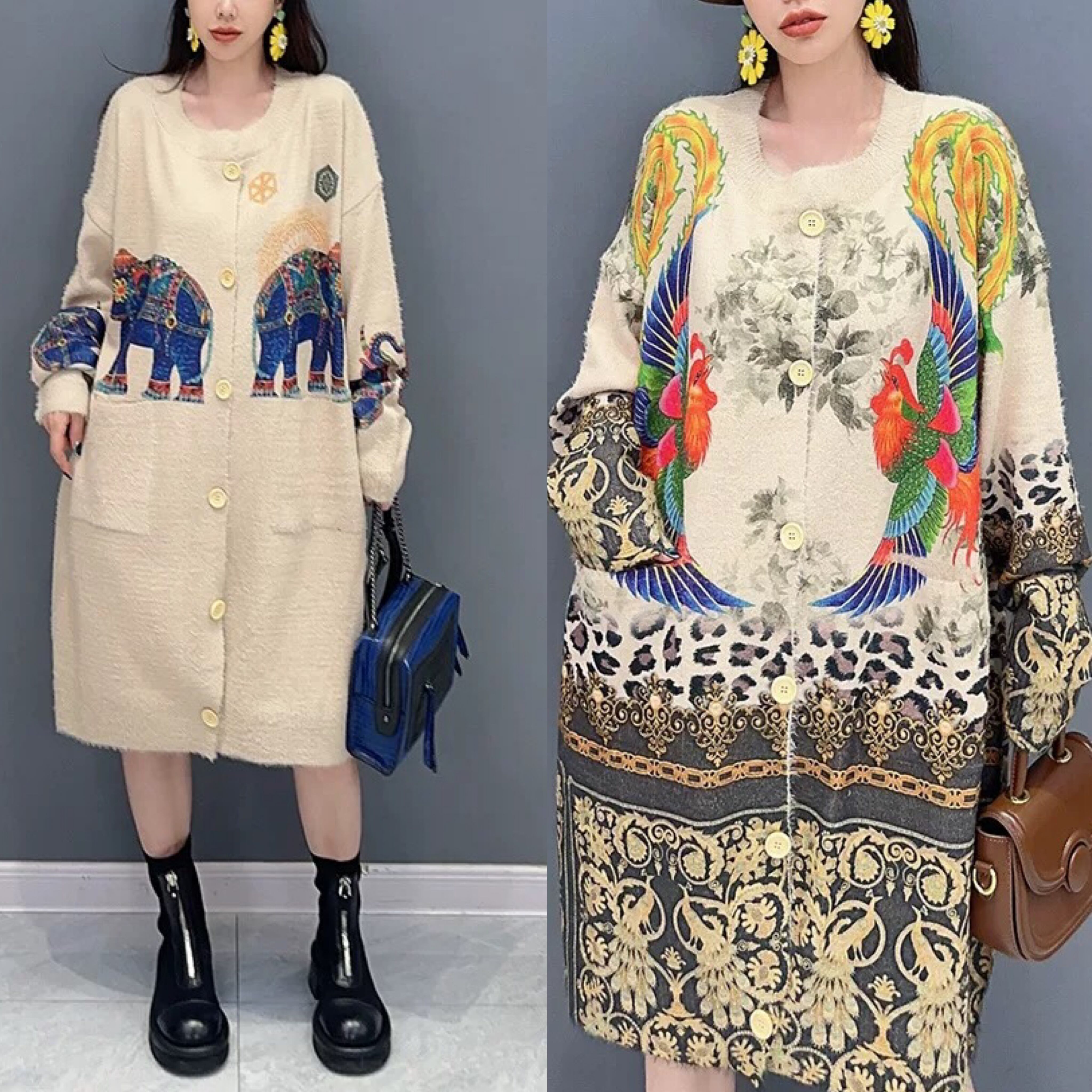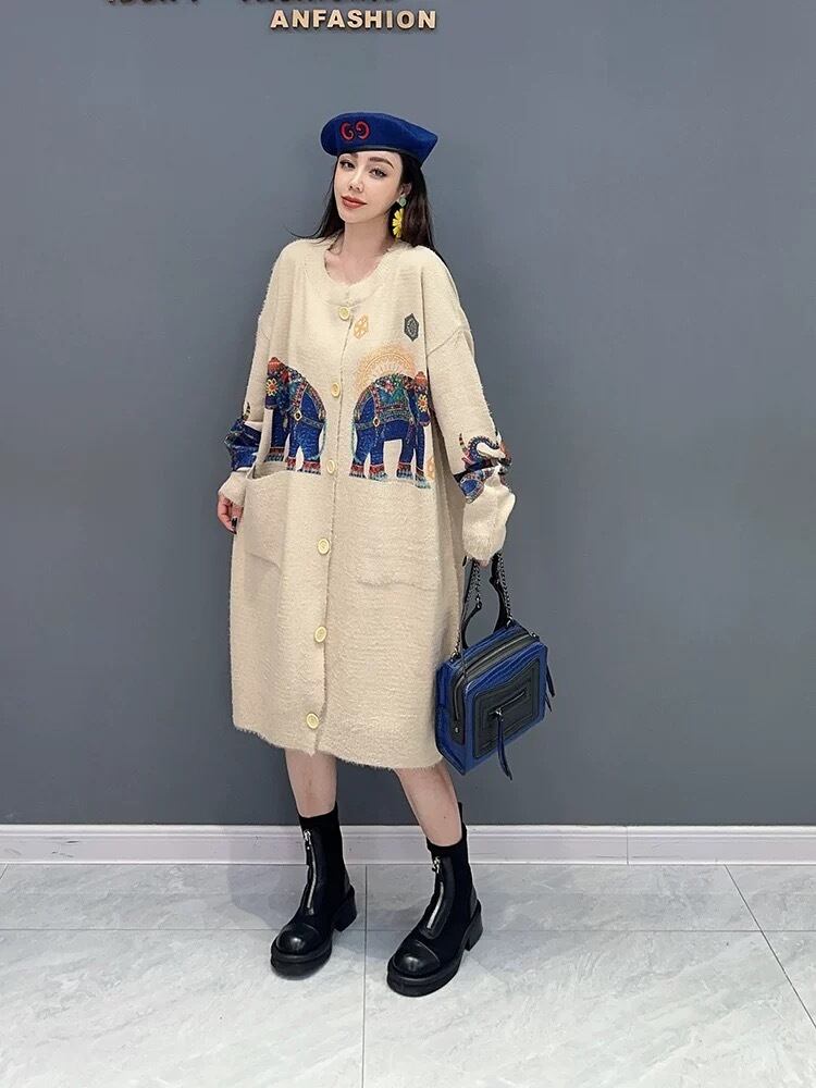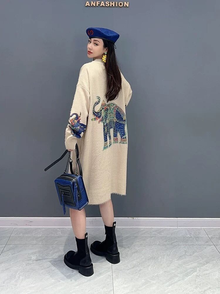 ワンピース カーディガン ゴージャス スカーフ ゴールド ニット アウター 黄色 ぞう アニマル セーター