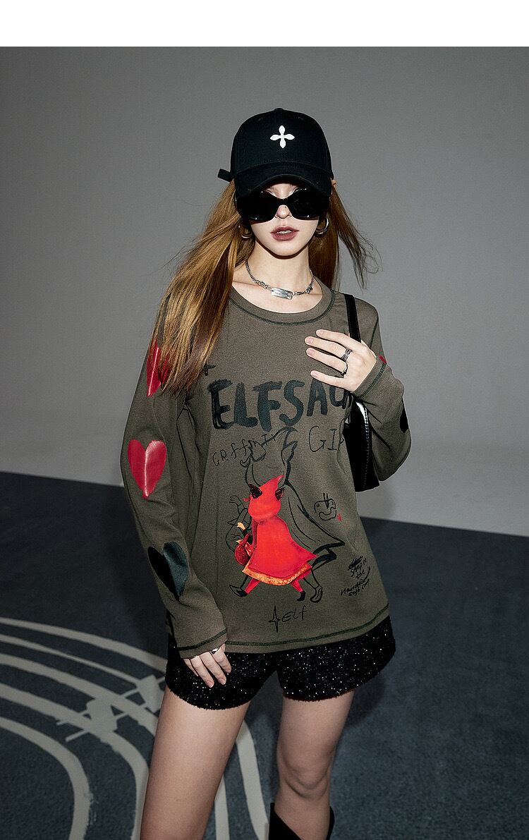 カジュアル グレー 赤 ハート トップス ブラウス スウェット パーカー Tシャツ
