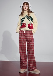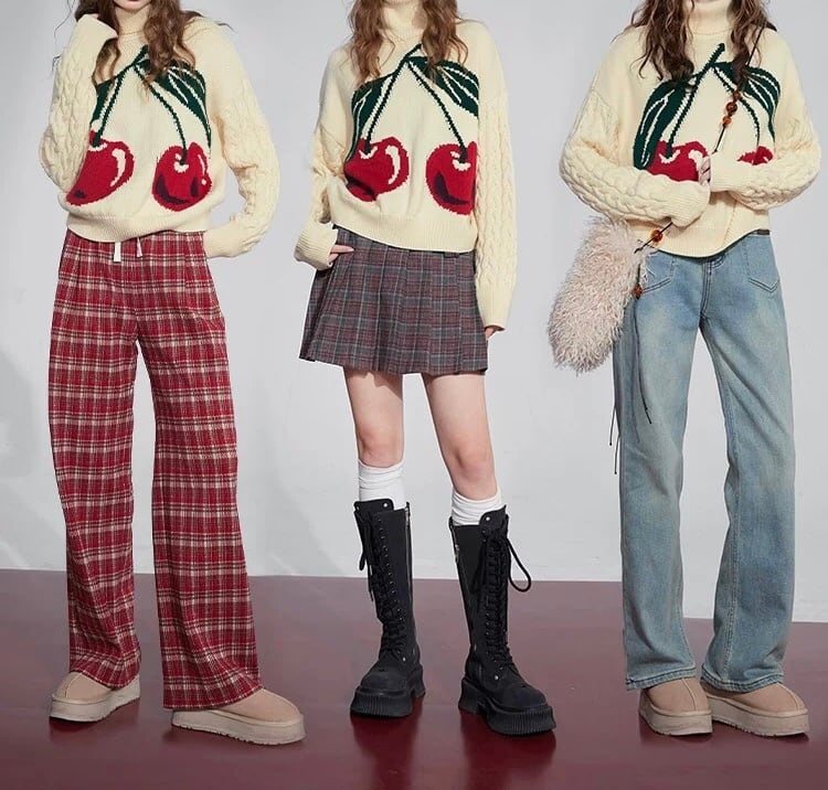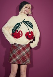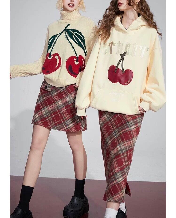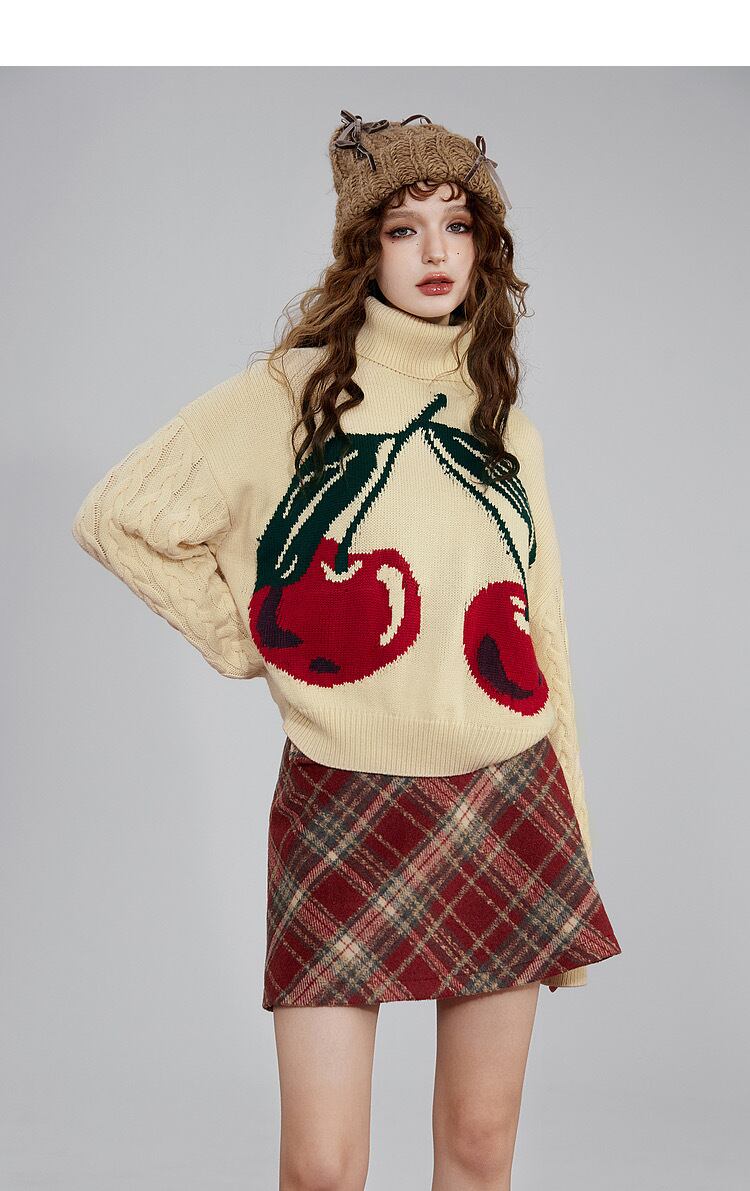 白 ハイネック セーター 赤 ハート さくらんぼ カジュアル スウェット ブラウス パーカー カーディガン