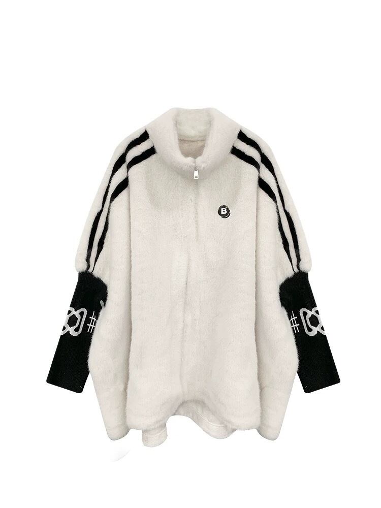 アウター ジャケット フリース ウール ハイネック 白 黒 ジャケット アウター コート カーディガン ストリート カジュアル
